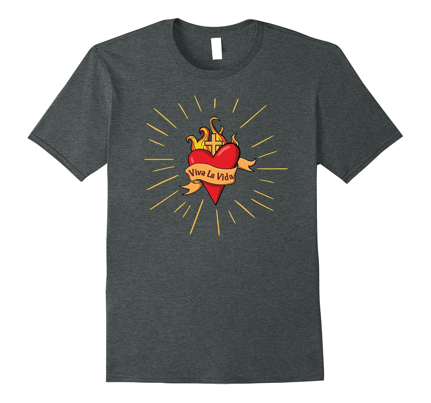 Solid colors: 100% Cotton; Heather Grey: 90% Cotton, 10% Polyester; All Other Heathers: 65% Cotton, 35% Polyester, Imported, Machine wash cold with like colors, dry low heat, Jimmo Designs original Sacred Heart Mexican Folk Art Ethnic Devotion Symbol T-Shirt featuring heart, cross, rays of Holy Fire and text banner. If you like Mexican culture, Spanish language, Christian heritage and colorful art, this tee is yours!, Artwork copyright James W. Allmon. Perfect gift for ethnographers, art historians, tattoo artists, bikers, priests, pastors, nuns, church goes, living artists, and everybody who loves life. Great for Thanksgiving or Christmas family and friends reunion. Lightweight, Classic fit, Double-needle sleeve and bottom hem