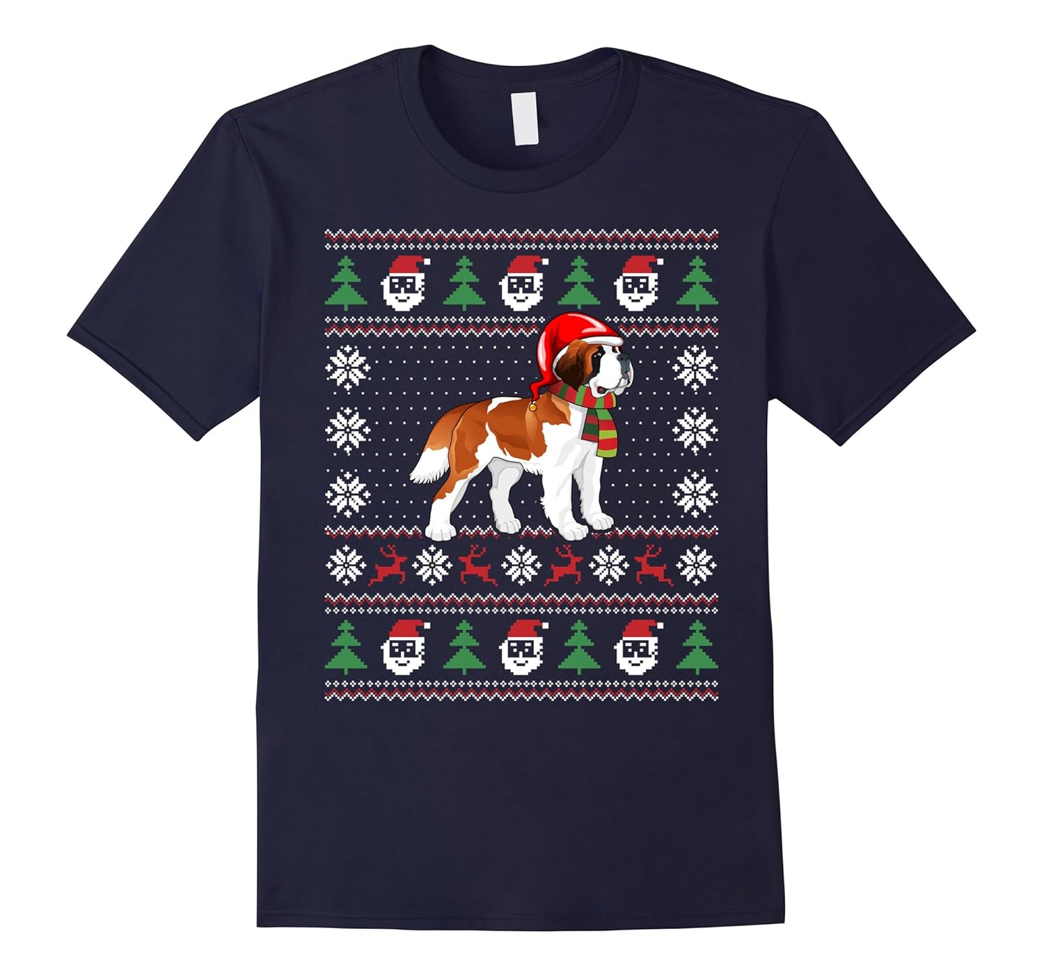 Solid colors: 100% Cotton; Heather Grey: 90% Cotton, 10% Polyester; All Other Heathers: 65% Cotton, 35% Polyester; Imported; Machine wash cold with like colors, dry low heat; This Saint Bernard dog with a santa hat is a great christmas gift for dog lovers specialy the Saint Bernard dog breed. The shirt has an ugly christmas pattern (xmas ugly sweater style) ready to the christmas season. Dog owner t shirt. Gifts for dog owners.; Dogs with Santa Hat Ugly SweaterT-Shirt, Christmas T-Shirts, Happy New Year T-Shirt.; Lightweight, Classic fit, Double-needle sleeve and bottom hem