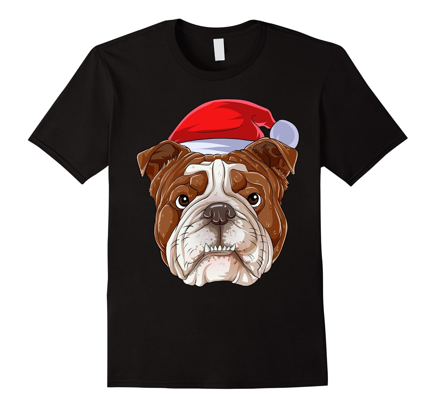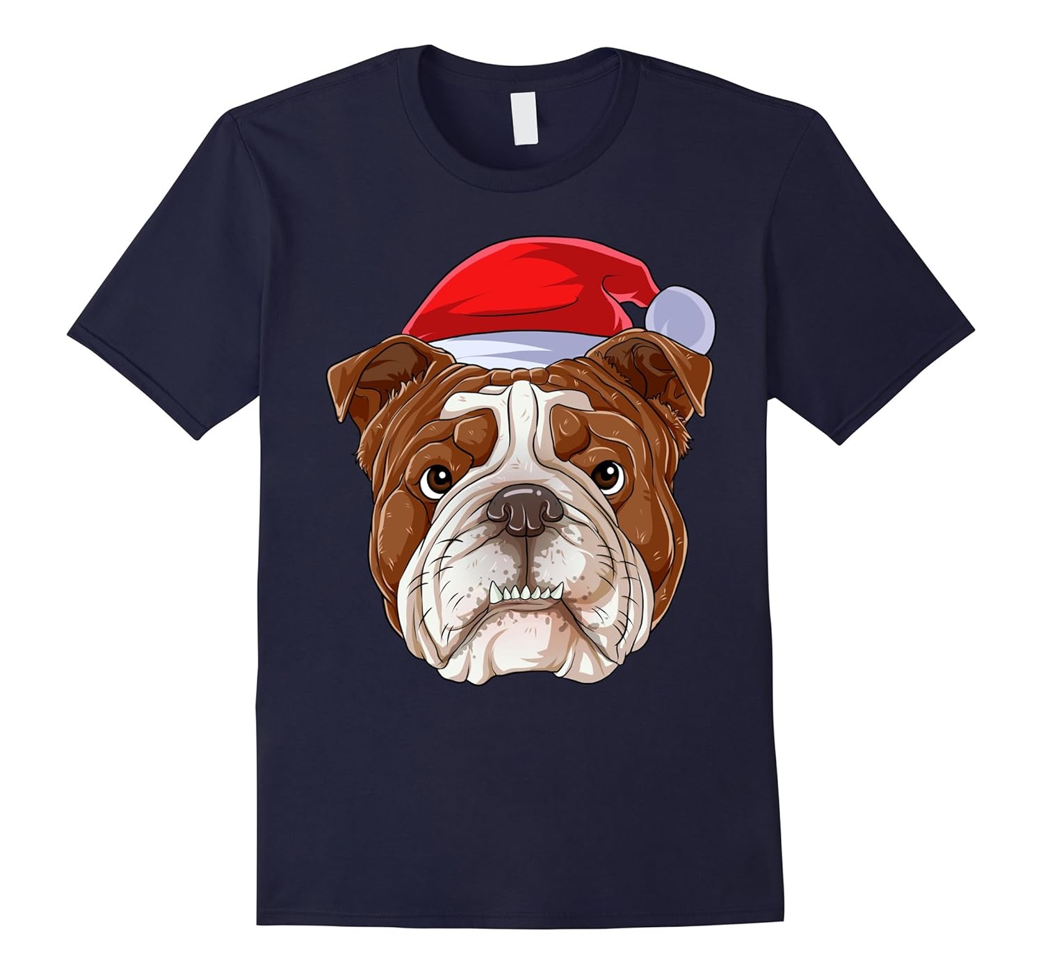 Santa English Bulldog Face T Shirt Funny Christmas Gifts-ANZ