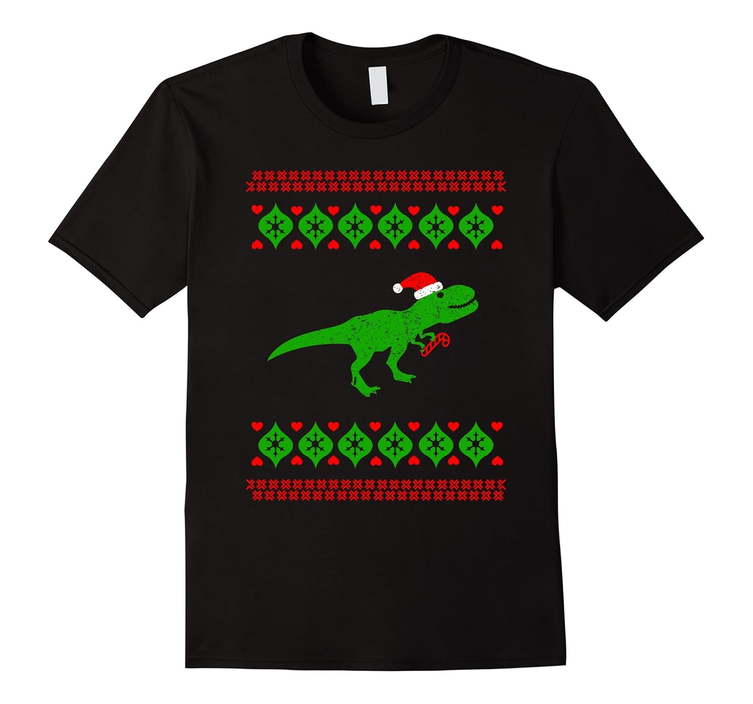 Santa Hat Dinosaur With Candy Cane Ugly Christmas T-Shirt-ANZ