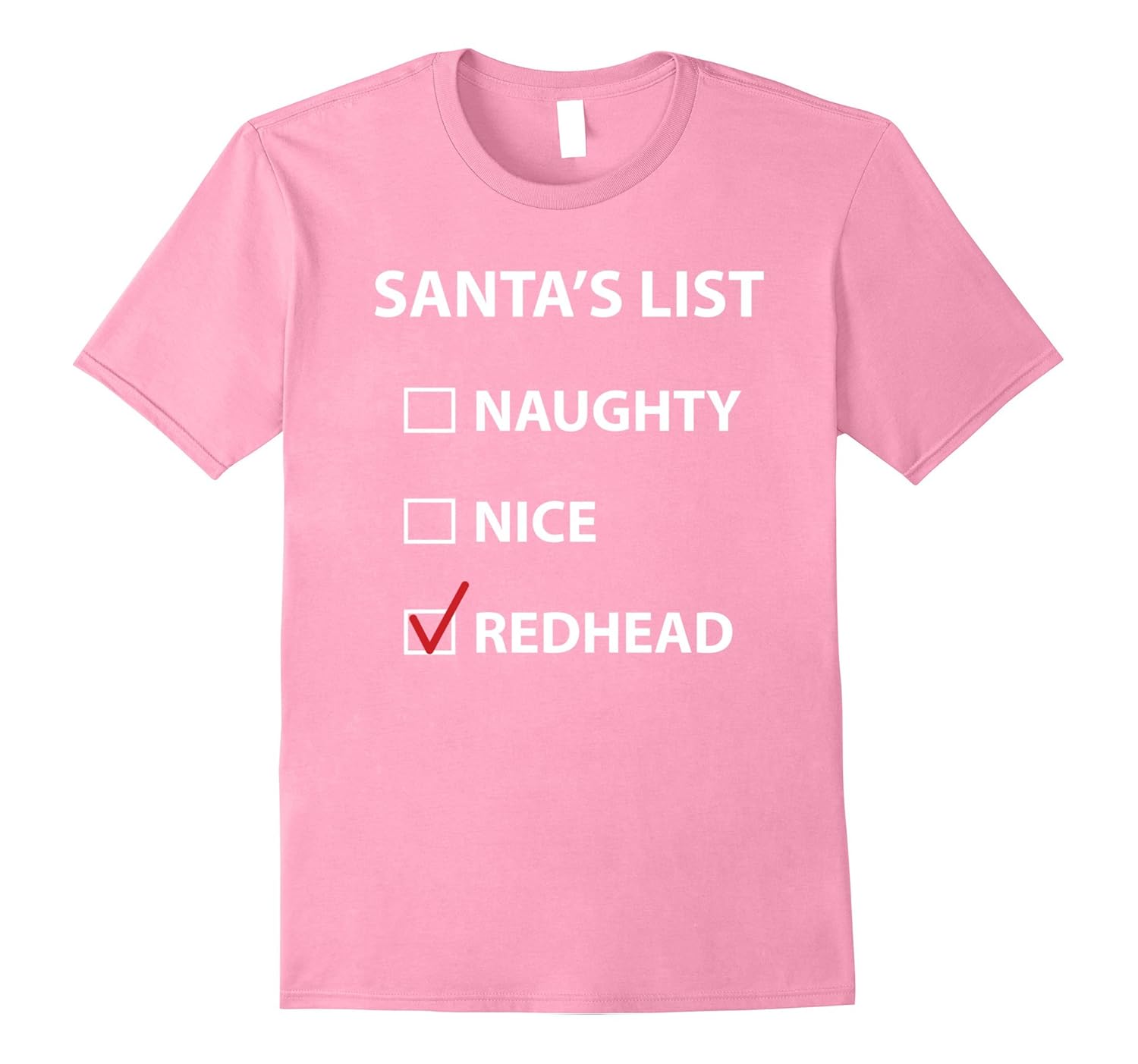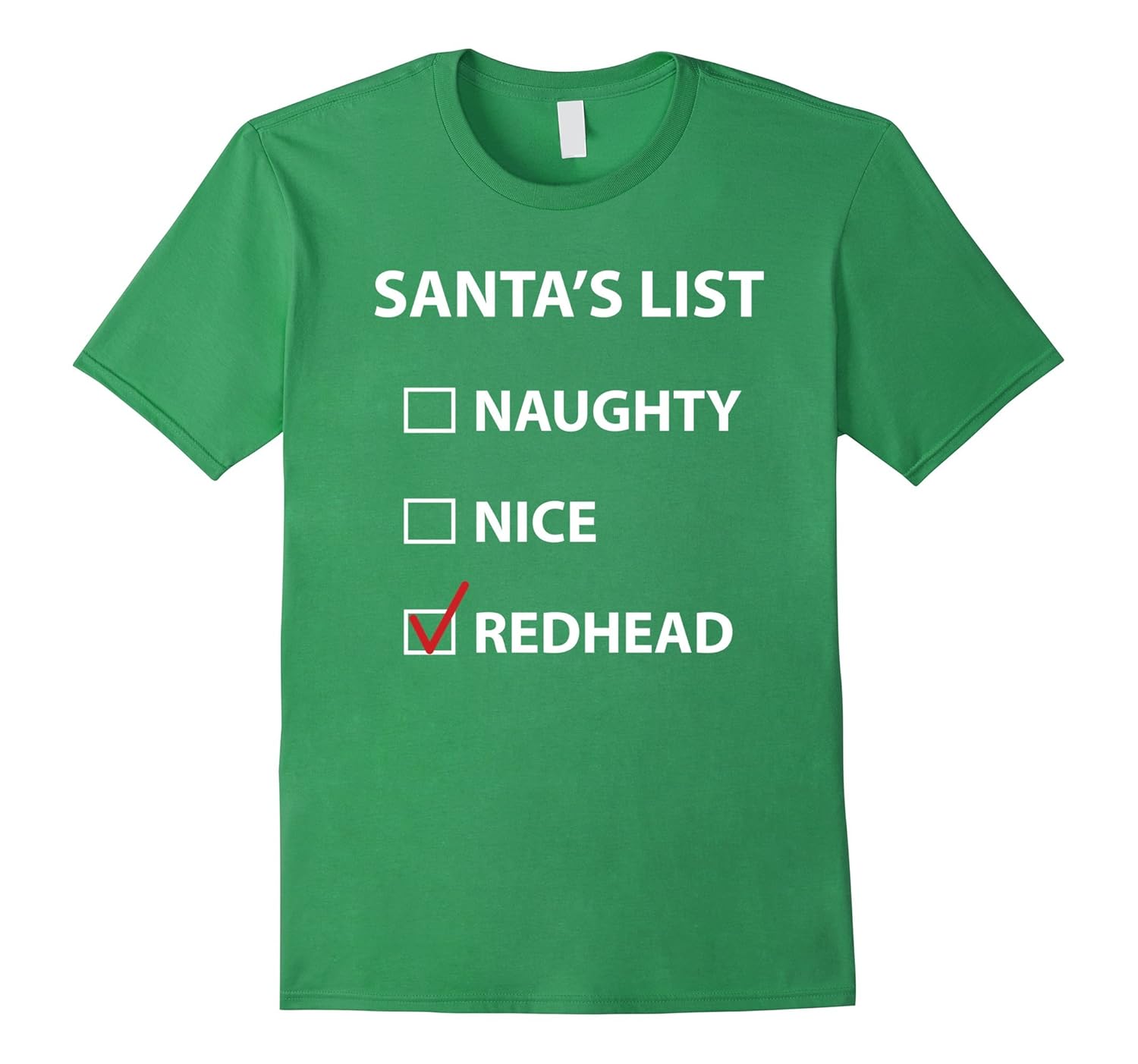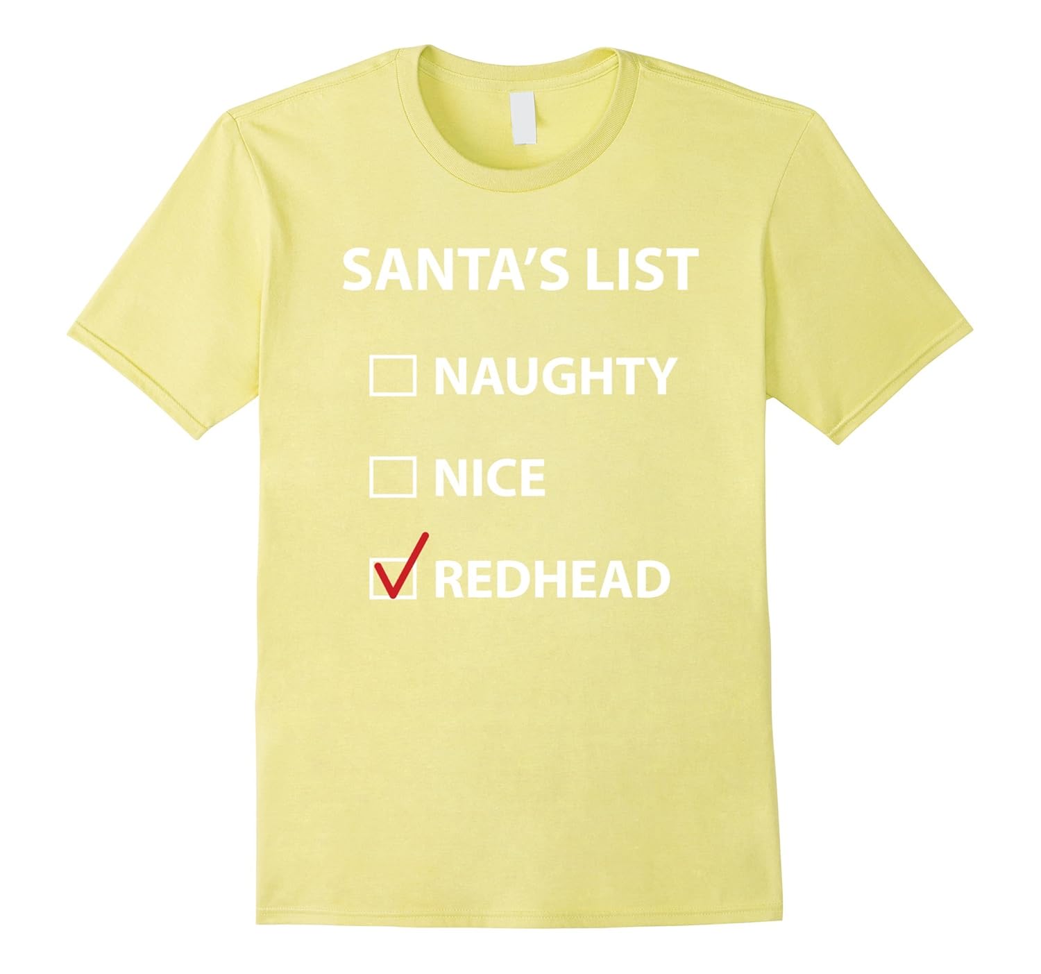 Solid colors: 100% Cotton; Heather Grey: 90% Cotton, 10% Polyester; All Other Heathers: 65% Cotton, 35% Polyester, Imported, Machine wash cold with like colors, dry low heat, Funny redhead-themed Christmas t-shirt, Lightweight, Classic fit, Double-needle sleeve and bottom hem