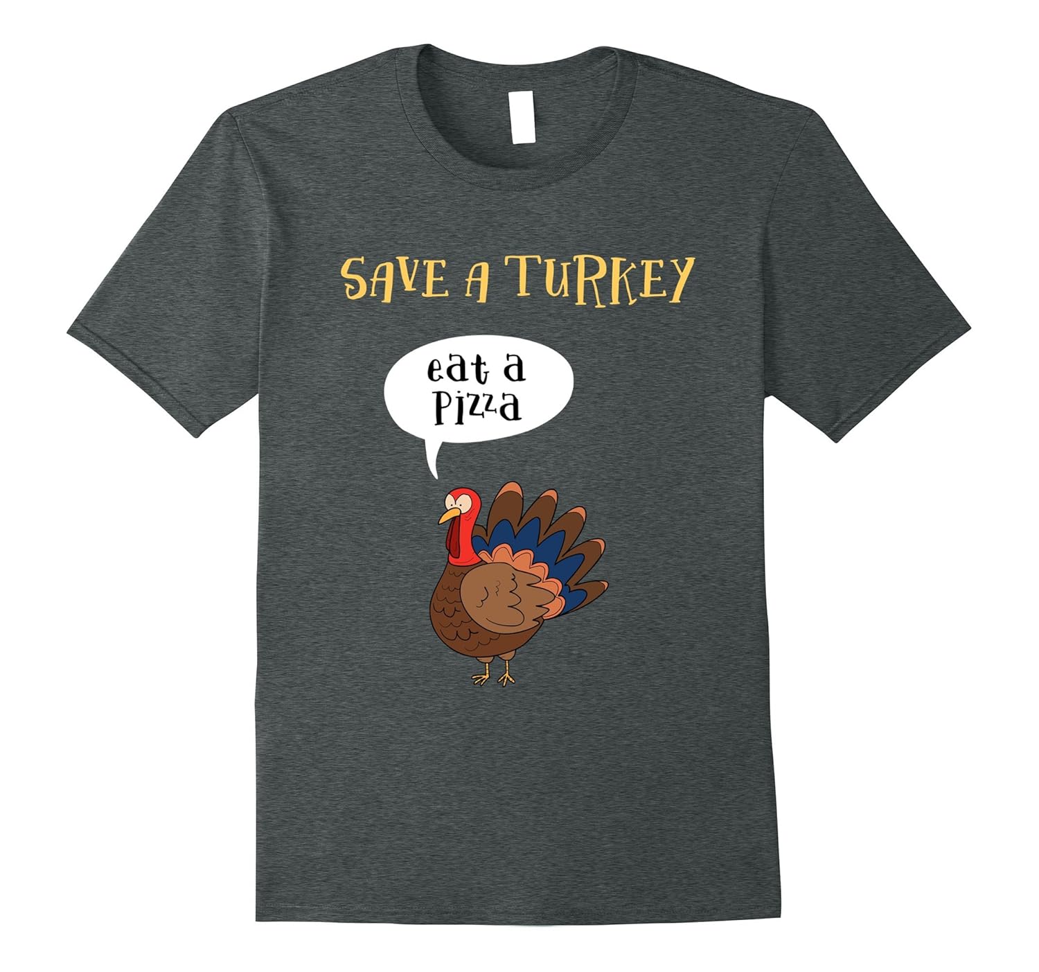 Solid colors: 100% Cotton; Heather Grey: 90% Cotton, 10% Polyester; All Other Heathers: 65% Cotton, 35% Polyester, Imported, Machine wash cold with like colors, dry low heat, save a turkey eat a pizza thanksgiving day fall season family holiday dinner party autumn, quote textual saying cool gift ideas joke funny humor sarcastic, Lightweight, Classic fit, Double-needle sleeve and bottom hem