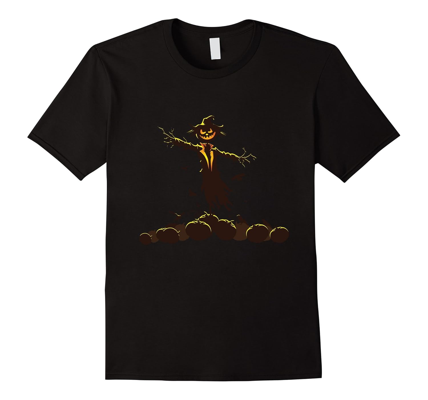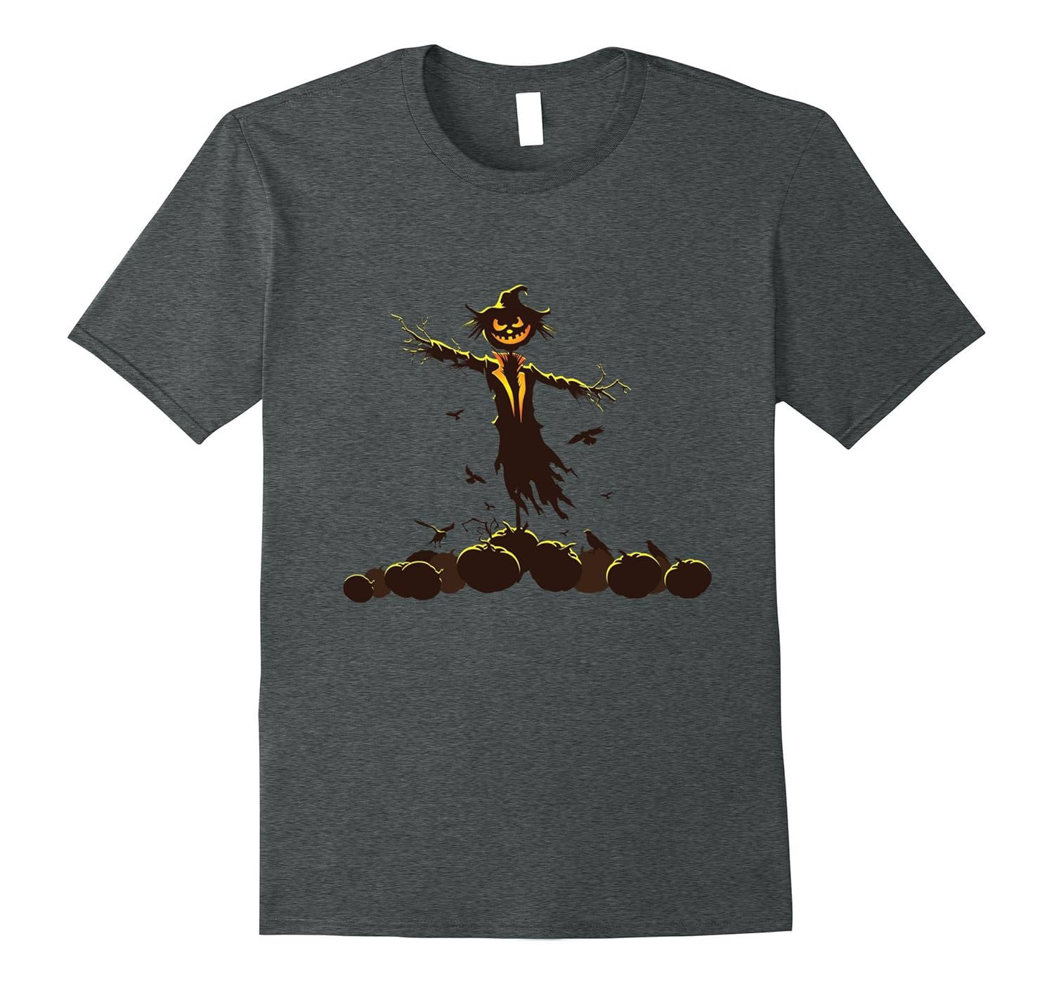 Solid colors: 100% Cotton; Heather Grey: 90% Cotton, 10% Polyester; All Other Heathers: 65% Cotton, 35% Polyester; Imported; Machine wash cold with like colors, dry low heat; Scarecrow Evil Nightmare T-shirt Halloween Costume has a frightening evil smile and a crew of pumpkin minions; Perfect scary gift tee for yourself and friends to wear for trick or treat, Halloween parties and all year round; Lightweight, Classic fit, Double-needle sleeve and bottom hem