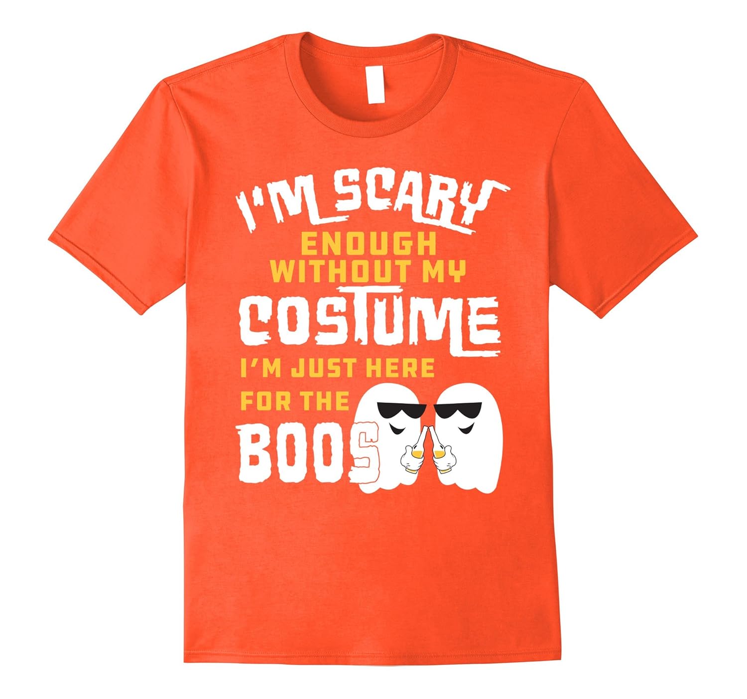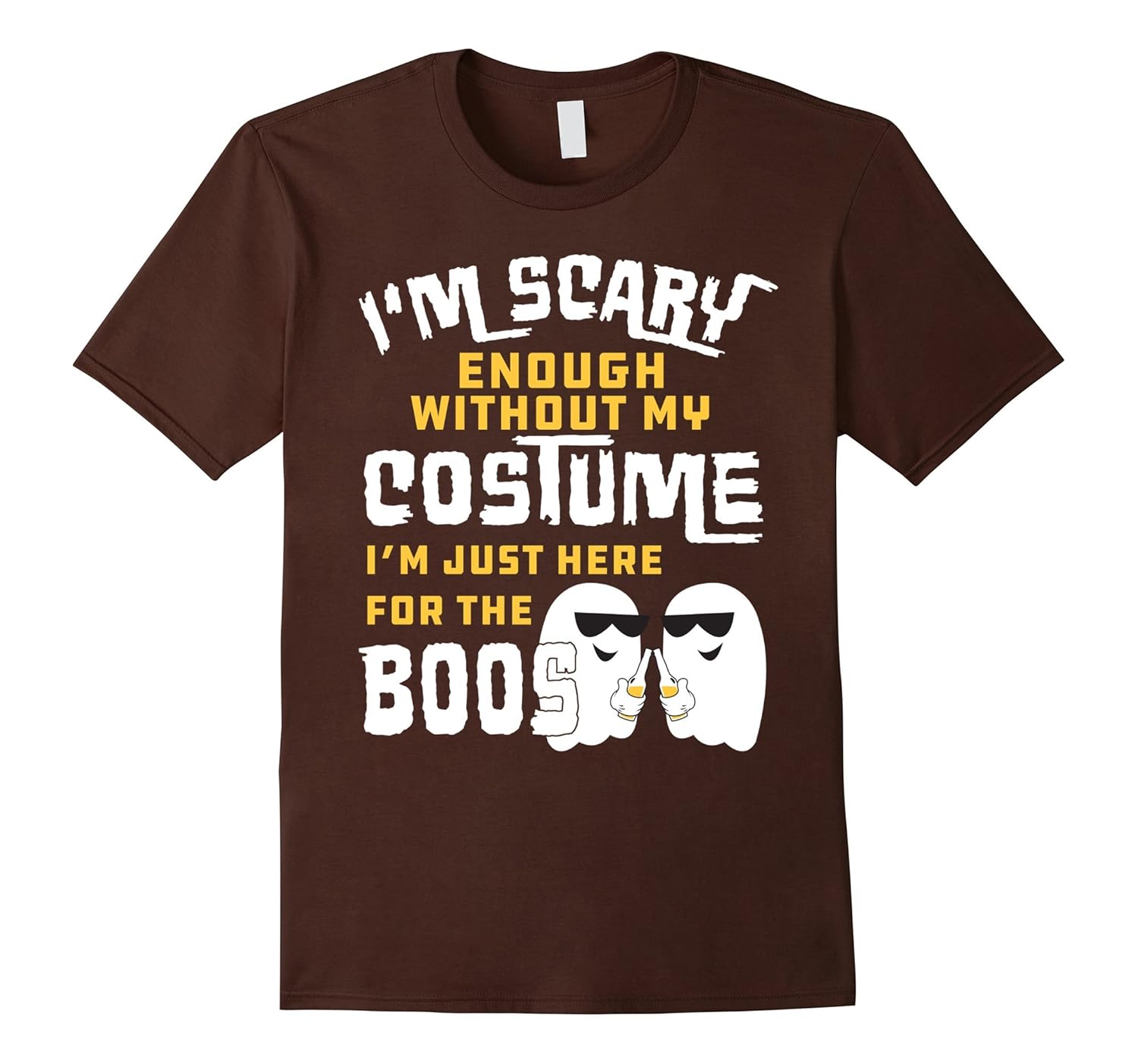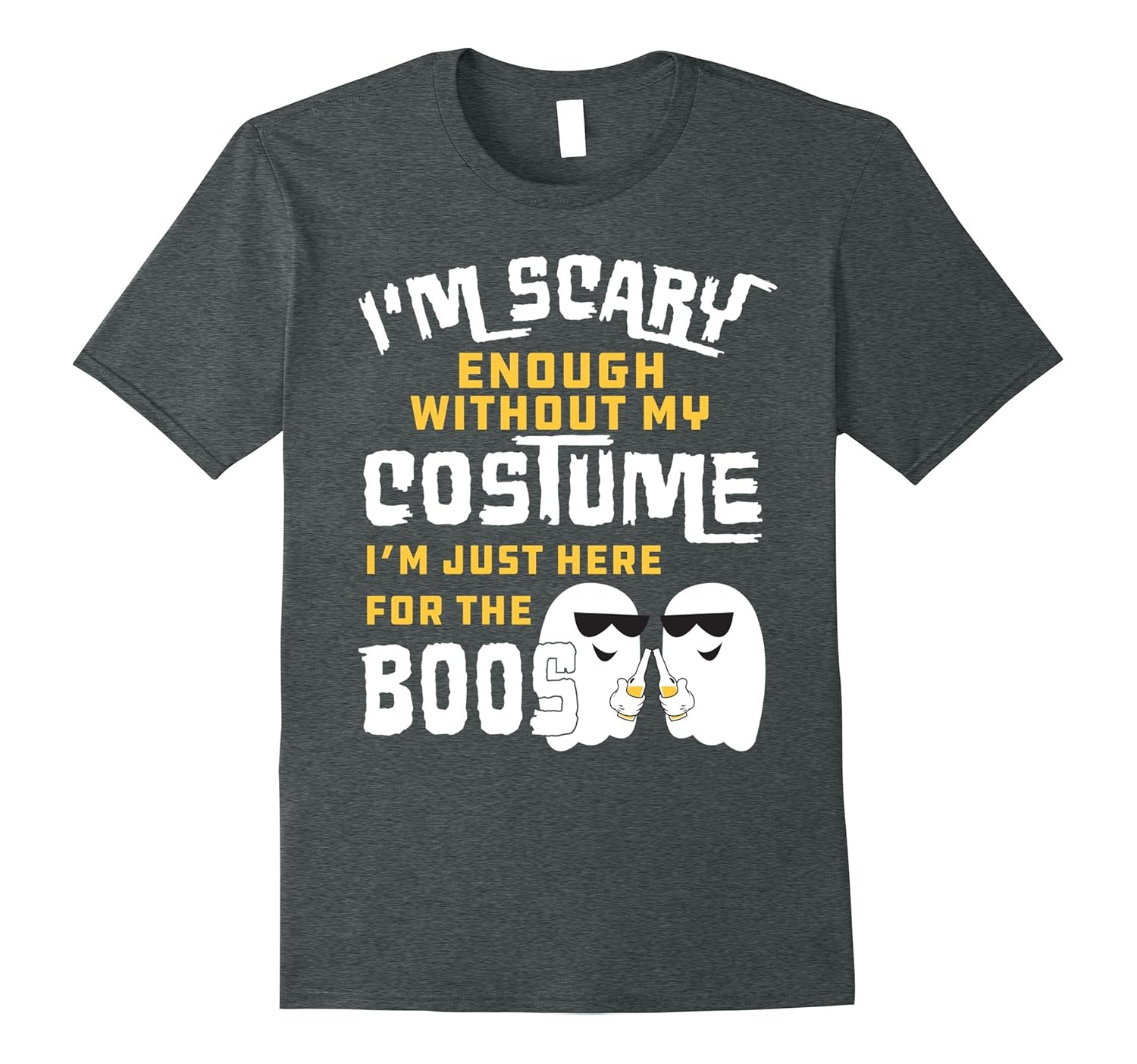 Solid colors: 100% Cotton; Heather Grey: 90% Cotton, 10% Polyester; All Other Heathers: 65% Cotton, 35% Polyester, Imported, Machine wash cold with like colors, dry low heat, I”m scary enough without my costume I”m Just Here For The Boos Shirt – funny beer tee to wear this Halloween!, Great ghost t shirt for Trick or Treat or pumpkin carving! Perfect gift idea for beer lovers on Halloween!, Lightweight, Classic fit, Double-needle sleeve and bottom hem