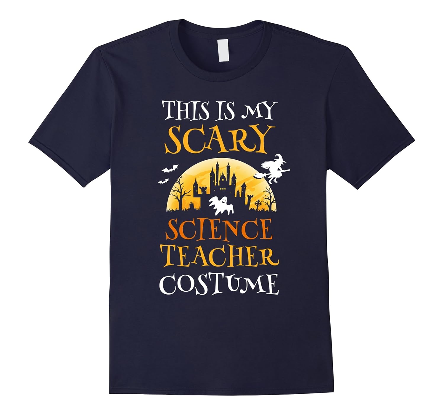 Solid colors: 100% Cotton; Heather Grey: 90% Cotton, 10% Polyester; All Other Heathers: 65% Cotton, 35% Polyester, Imported, Machine wash cold with like colors, dry low heat, This is my scary Science teacher costume t-shirt, Halloween Science Teacher Gift Idea, Lightweight, Classic fit, Double-needle sleeve and bottom hem
