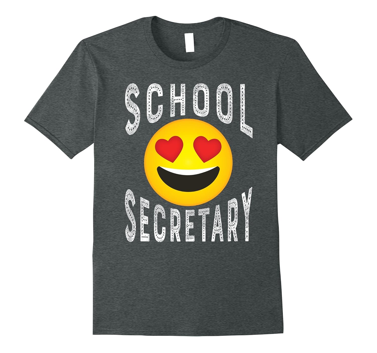 Solid colors: 100% Cotton; Heather Grey: 90% Cotton, 10% Polyester; All Other Heathers: 65% Cotton, 35% Polyester, Imported, Machine wash cold with like colors, dry low heat, Show how much you love your job with this heart yellow smiley face shirt. School secretaries work hard to run the school and help children day in and day out. This distressed, novelty school secretary t-shirt will emphasize how wonderful that is. This heart emoji school secretary t-shirt is fitted. For a looser fit please order a size larger than typical. This emoticon smiley face school secretary tee shirt is a perfect birthday or Christmas gift for any school secretary. Lightweight, Classic fit, Double-needle sleeve and bottom hem