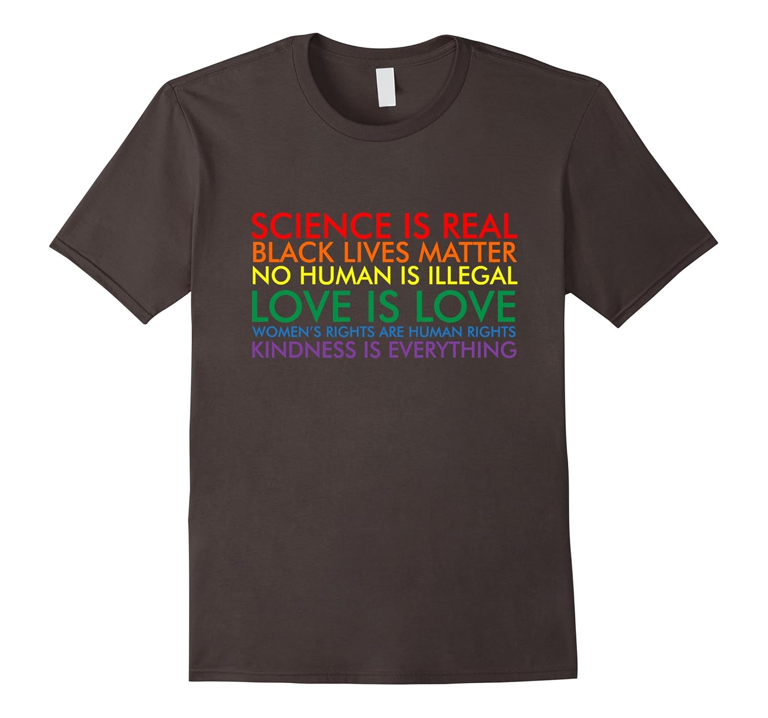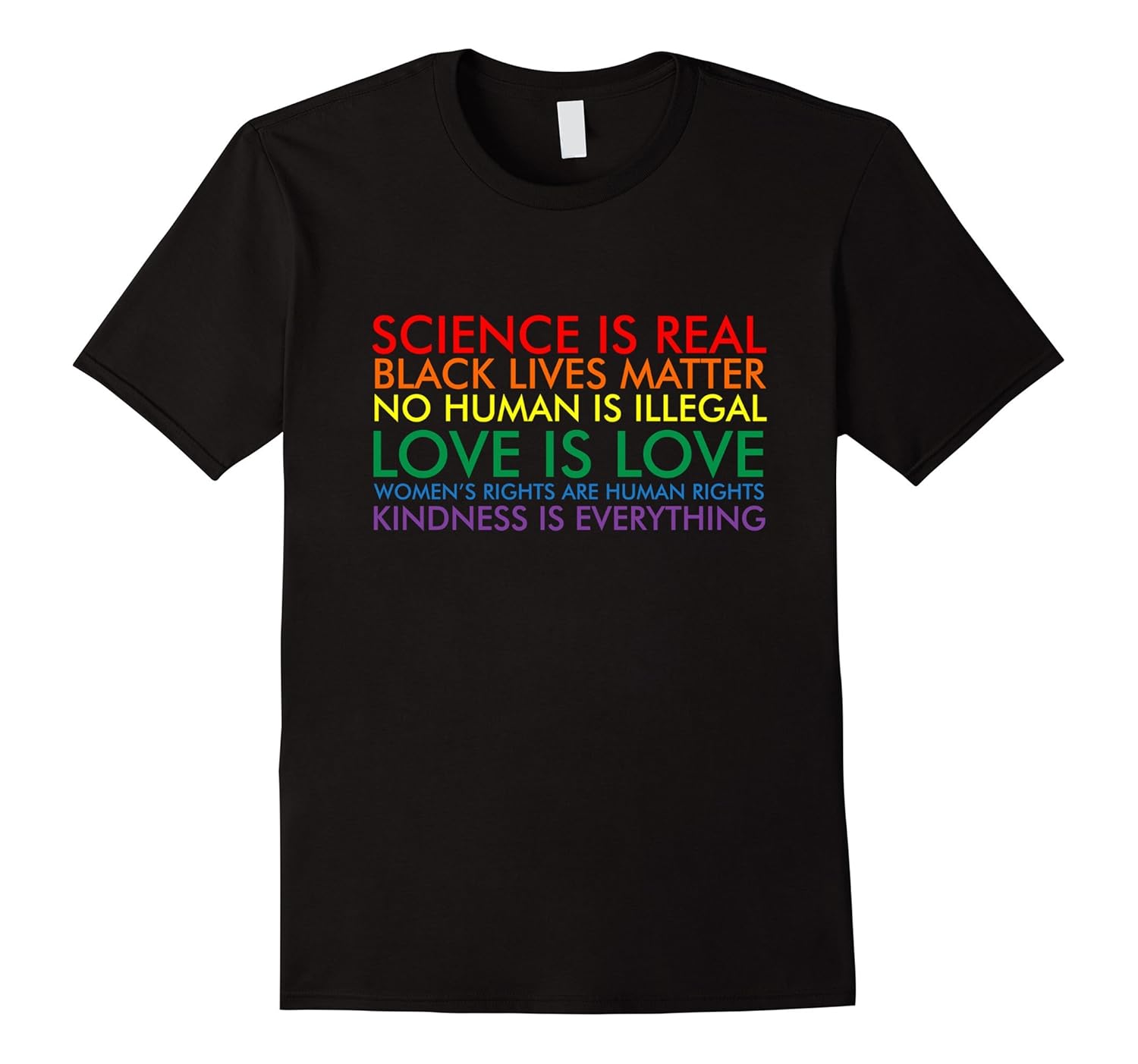 Solid colors: 100% Cotton; Heather Grey: 90% Cotton, 10% Polyester; All Other Heathers: 65% Cotton, 35% Polyester, Imported, Machine wash cold with like colors, dry low heat, Science Is Real , Black Lives Matter , No Human Is Illegal , Love Is Love, Women”s Rights are Human Rights , Kindness is Everything , Protest Shirt, Lightweight, Classic fit, Double-needle sleeve and bottom hem