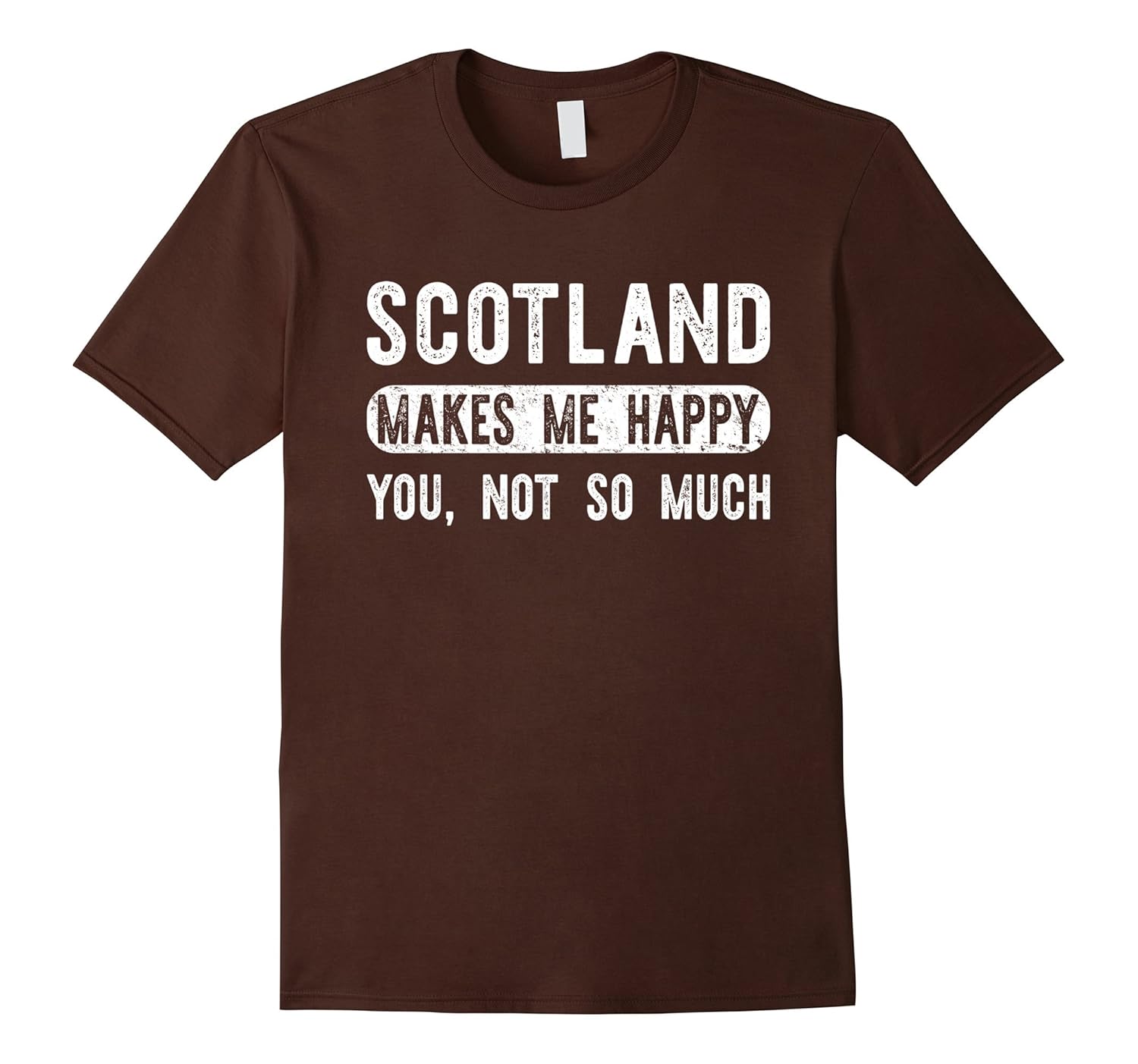 Solid colors: 100% Cotton; Heather Grey: 90% Cotton, 10% Polyester; All Other Heathers: 65% Cotton, 35% Polyester, Imported, Machine wash cold with like colors, dry low heat, Scotland Makes Me Happy You Not So Much – Funny Travel T-shirt, Great gift for anyone that likes to travel or is Scottish, Lightweight, Classic fit, Double-needle sleeve and bottom hem