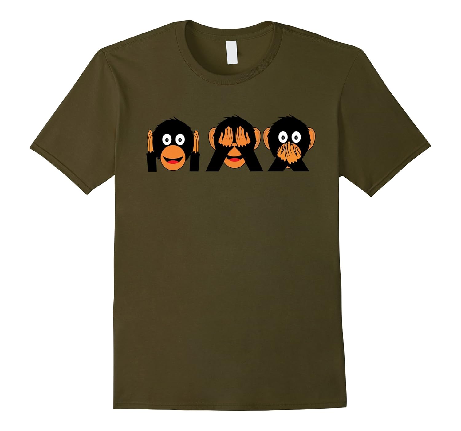 Solid colors: 100% Cotton; Heather Grey: 90% Cotton, 10% Polyester; All Other Heathers: 65% Cotton, 35% Polyester; Imported; Machine wash cold with like colors, dry low heat; This funny monkey t-shirt features three wise monkeys which See No Evil, Speak No Evil, Hear No Evil, are called Mizaru, Kikazaru Andamp; Iwazaru Andamp; are Japanese macaques which are a common monkey species from Japan. For a loose fit, please order a size up.; If you are a cheeky monkey, love chimps, chimpanzees or orangutans, love monkeys, love apes, love animals Andamp; zoo animals then youll love this cute monkey shirt. Gift this comfy monkey tee shirt to monkey lovers, emoji lovers, chimp emoji fans or family.; Lightweight, Classic fit, Double-needle sleeve and bottom hem