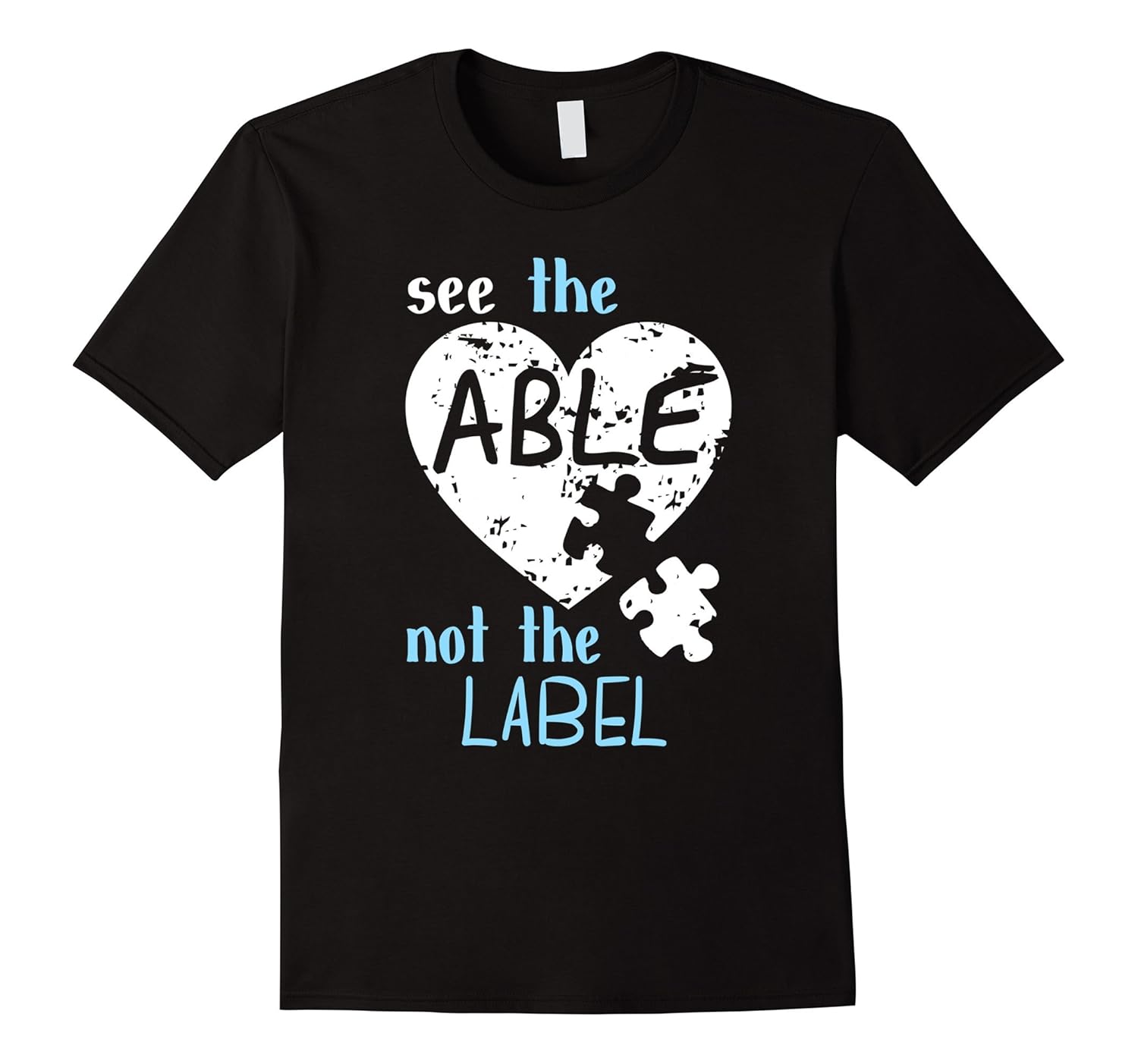 Solid colors: 100% Cotton; Heather Grey: 90% Cotton, 10% Polyester; All Other Heathers: 65% Cotton, 35% Polyester; Imported; Machine wash cold with like colors, dry low heat; Really cute autism awareness month t shirt with quote: see the able not the label with puzzle pieces matching up. An awesome autism awareness month product for autistic and aspergers dads, moms, teachers and families to be supportive. Also this autism shirt is one of the best shirts for special Education teacher who has students with Autism in a classroom.; Blue typography graphic tee shirt for men, ladies, and kids. Adorable autism awareness 2017 shirt. Click on the brand name to see other shirts we made for you: Unique Autism Awareness Shirts 2017 Runs small so size up.; Lightweight, Classic fit, Double-needle sleeve and bottom hem