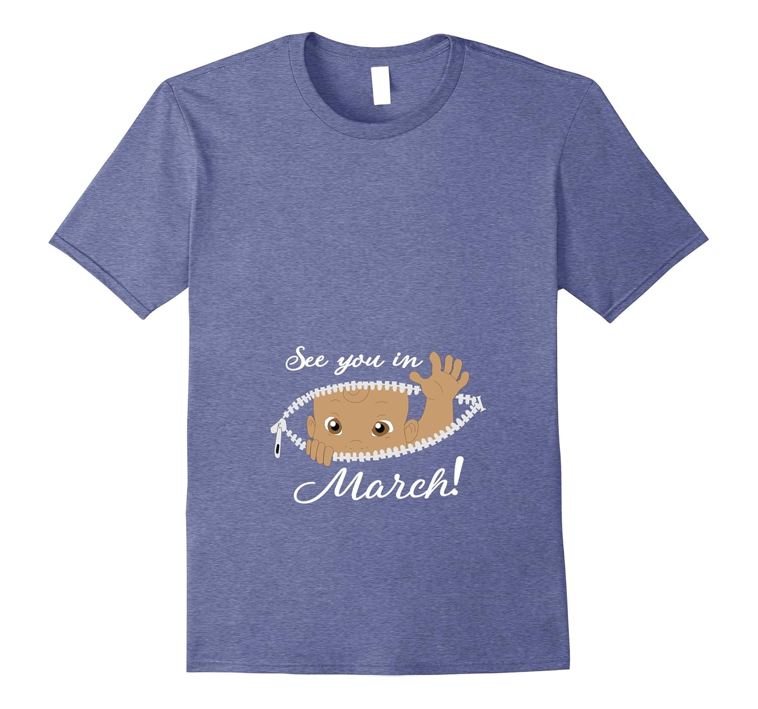 Solid colors: 100% Cotton; Heather Grey: 90% Cotton, 10% Polyester; All Other Heathers: 65% Cotton, 35% Polyester, Imported, Machine wash cold with like colors, dry low heat, Perfect for mom”s expecting a baby in March, Funny mother-to-be tshirt for your baby bump, Lightweight, Classic fit, Double-needle sleeve and bottom hem