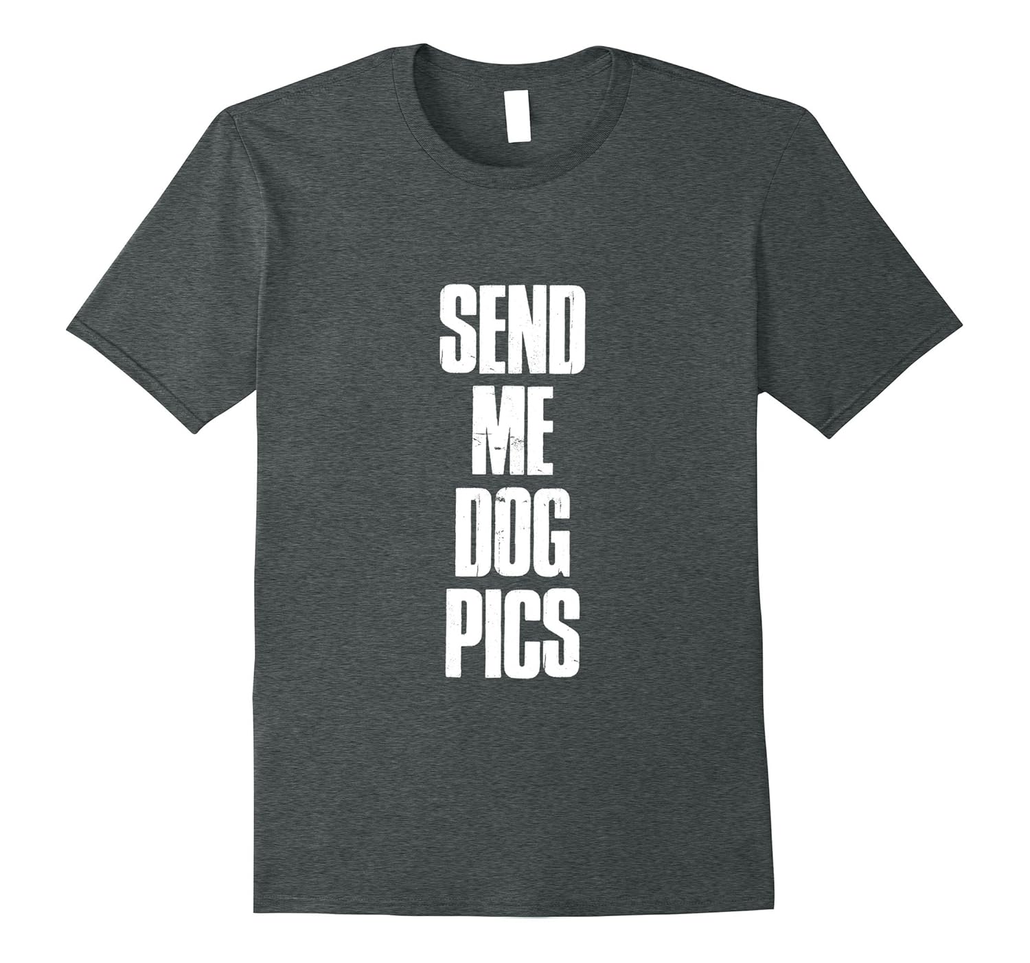 Solid colors: 100% Cotton; Heather Grey: 90% Cotton, 10% Polyester; All Other Heathers: 65% Cotton, 35% Polyester; Imported; Machine wash cold with like colors, dry low heat; Hilarious Tee with print Send me dog pics T-Shirts. For a more loose fit, please order a size up.; Humor Saying Tee with print. Complete your collection of accessories with funny quotes for him / her (bandana, flag, bracelet, hat, raglan, tank top, earrings, headband, pants, socks, beer coffee mug, cup, flask, onesie, sticker) with this TShirt; Lightweight, Classic fit, Double-needle sleeve and bottom hem