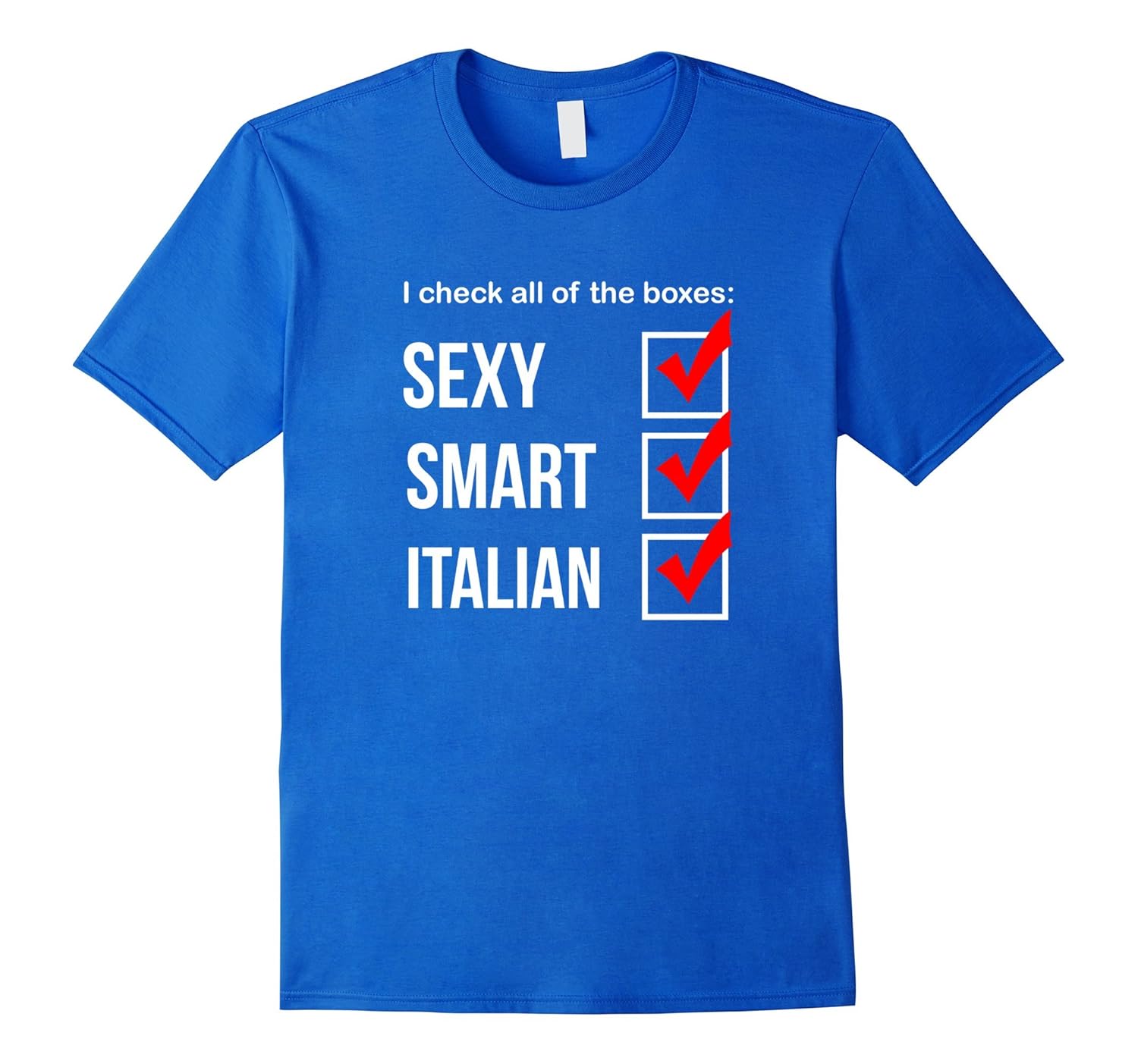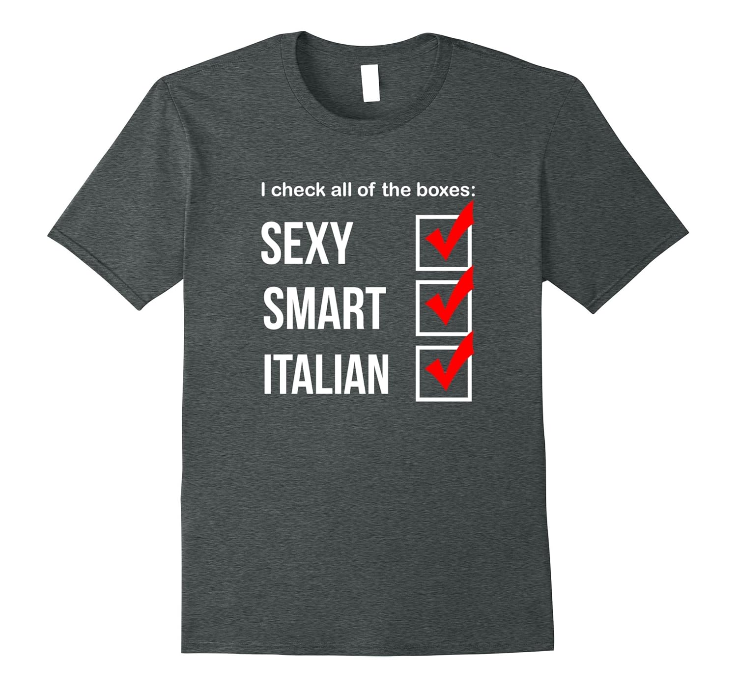 Solid colors: 100% Cotton; Heather Grey: 90% Cotton, 10% Polyester; All Other Heathers: 65% Cotton, 35% Polyester, Imported, Machine wash cold with like colors, dry low heat, I check all of the boxes sexy smart italian t-shirt. Are you a smart, sexy, italian, woman or man. Then this funny proud Italy native shirt is just for you. Great gift for Birthday, Valentine”s Day, Mother”s Day, Anniversary, Christmas. Proud italian christmas gift shirt. Lightweight, Classic fit, Double-needle sleeve and bottom hem