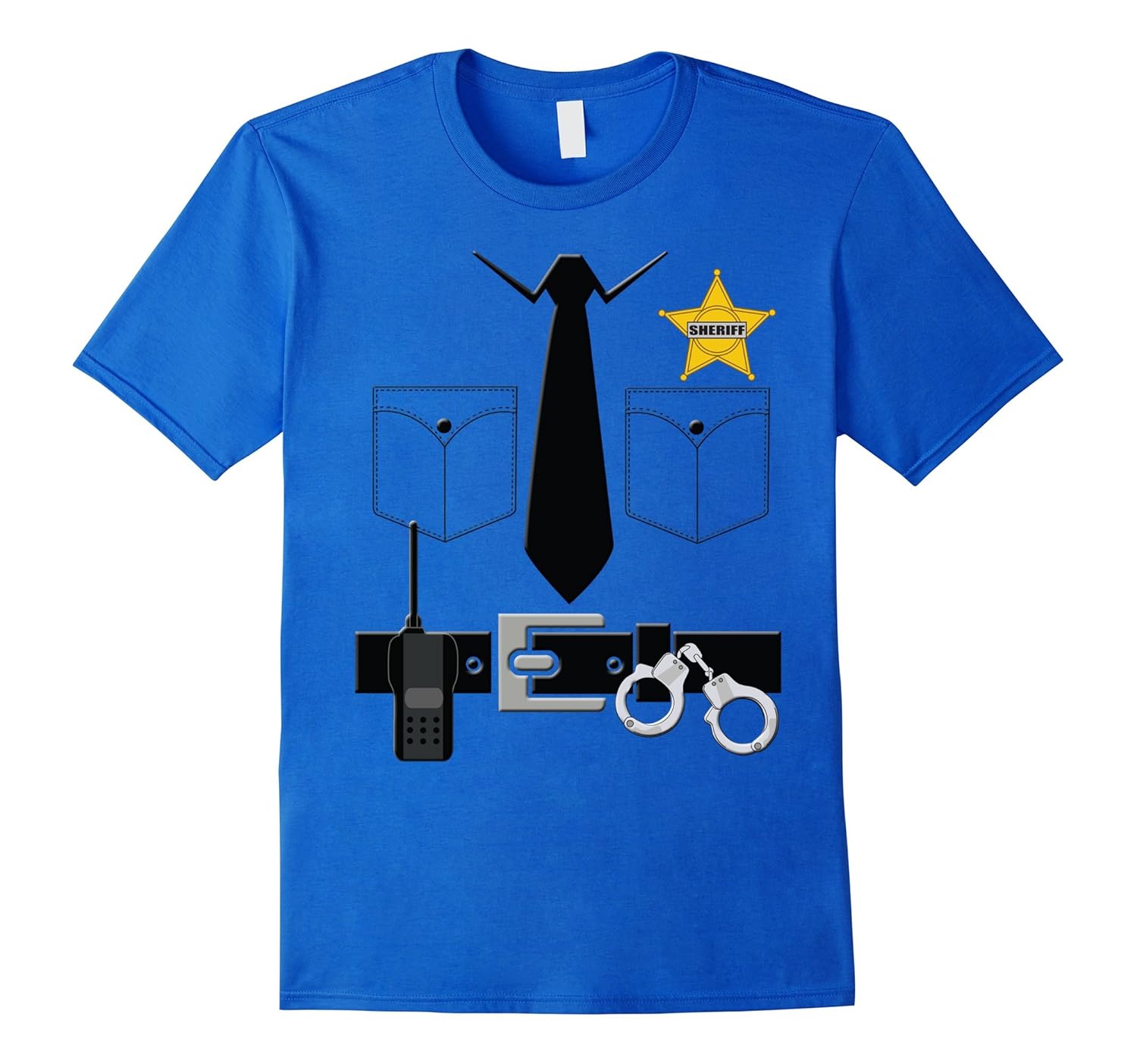 Solid colors: 100% Cotton; Heather Grey: 90% Cotton, 10% Polyester; All Other Heathers: 65% Cotton, 35% Polyester, Imported, Machine wash cold with like colors, dry low heat, An awesome Sheriff Halloween Costume T-Shirt shirt for Halloween and Costume Parties! An cool and creative Halloween Costume Idea! This Sheriff Halloween Costume T-Shirt is available in Men”s Women”s and Kids sizes!, This cool t-shirt features a Sheriff Halloween Costume T-Shirt graphic with handcuffs, radio, badge, pockets, belt and buckle. A perfect gift for kids, yourself, friends and family. Wear this great Sheriff Halloween Costume T-Shirt for a Halloween Party!, Lightweight, Classic fit, Double-needle sleeve and bottom hem