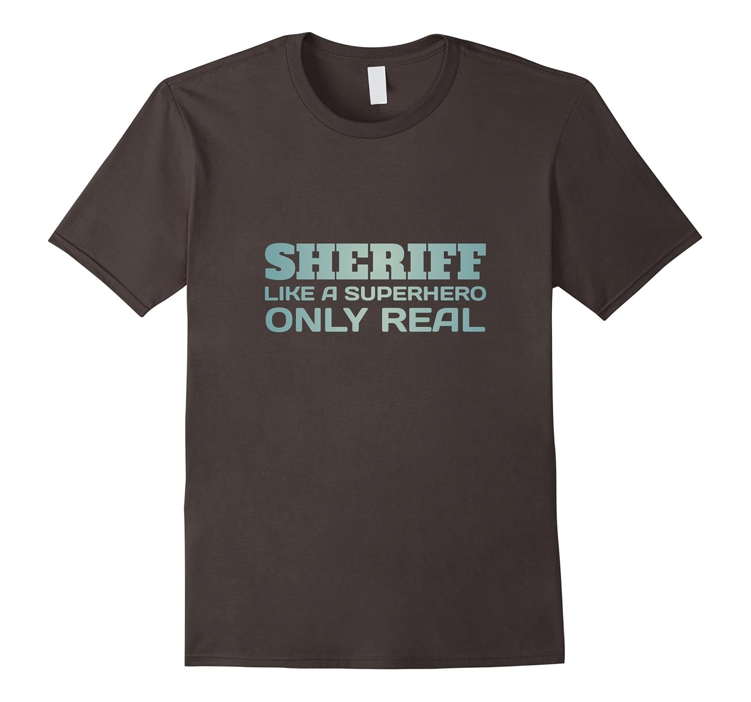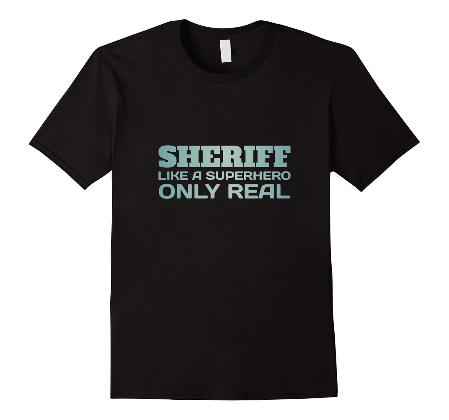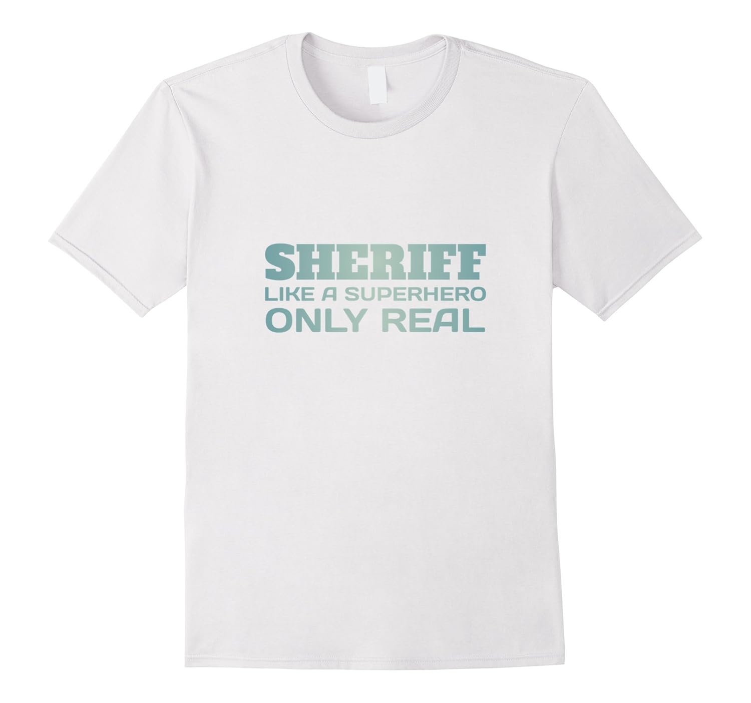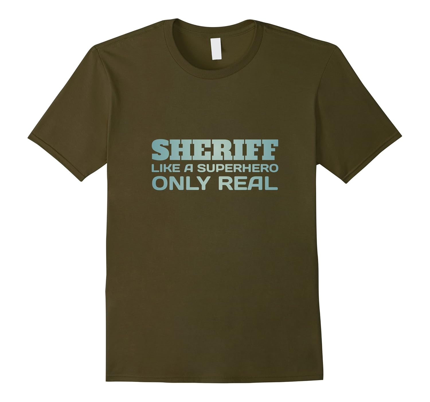 Solid colors: 100% Cotton; Heather Grey: 90% Cotton, 10% Polyester; All Other Heathers: 50% Cotton, 50% Polyester; Imported; Machine wash cold with like colors, dry low heat; Great gift tshirt is ideal for men and women who serve as sheriffs. Sheriffs are like superheroes because they save lives, protect citizens and enforce the law. Wear this shirt if you are proud to serve and protect and have a great sense of humor; Perfect present for Christmas, Birthdays, Valentines Day, Fathers Day, Mothers Day, Anniversaries or Easter. Buy it for your dad, mom, brother, sister, husband, wife, best friend, cousin, uncle, boyfriend or girlfriend. ORDER A SIZE UP FOR LOOSER FIT; Lightweight, Classic fit, Double-needle sleeve and bottom hem