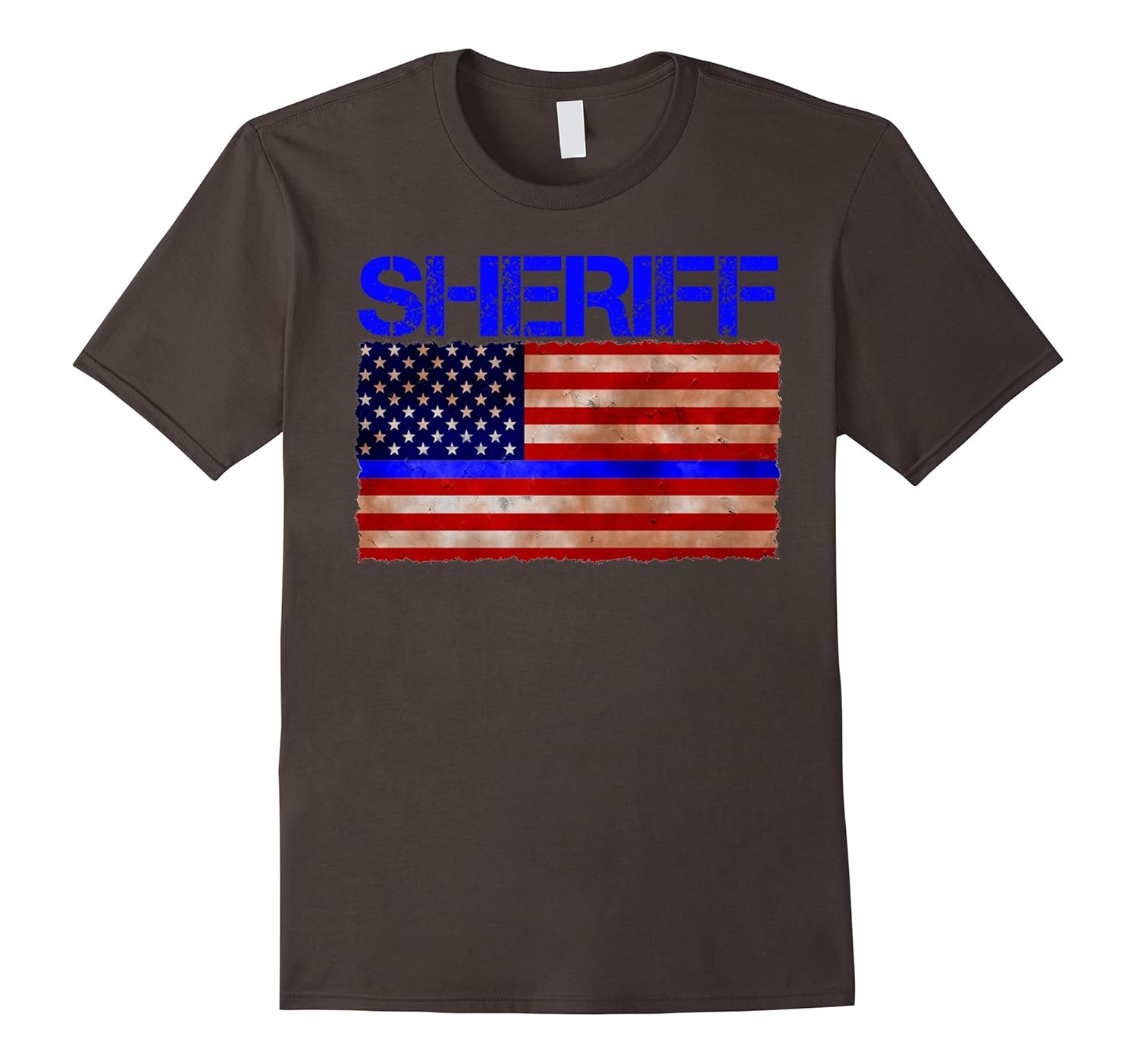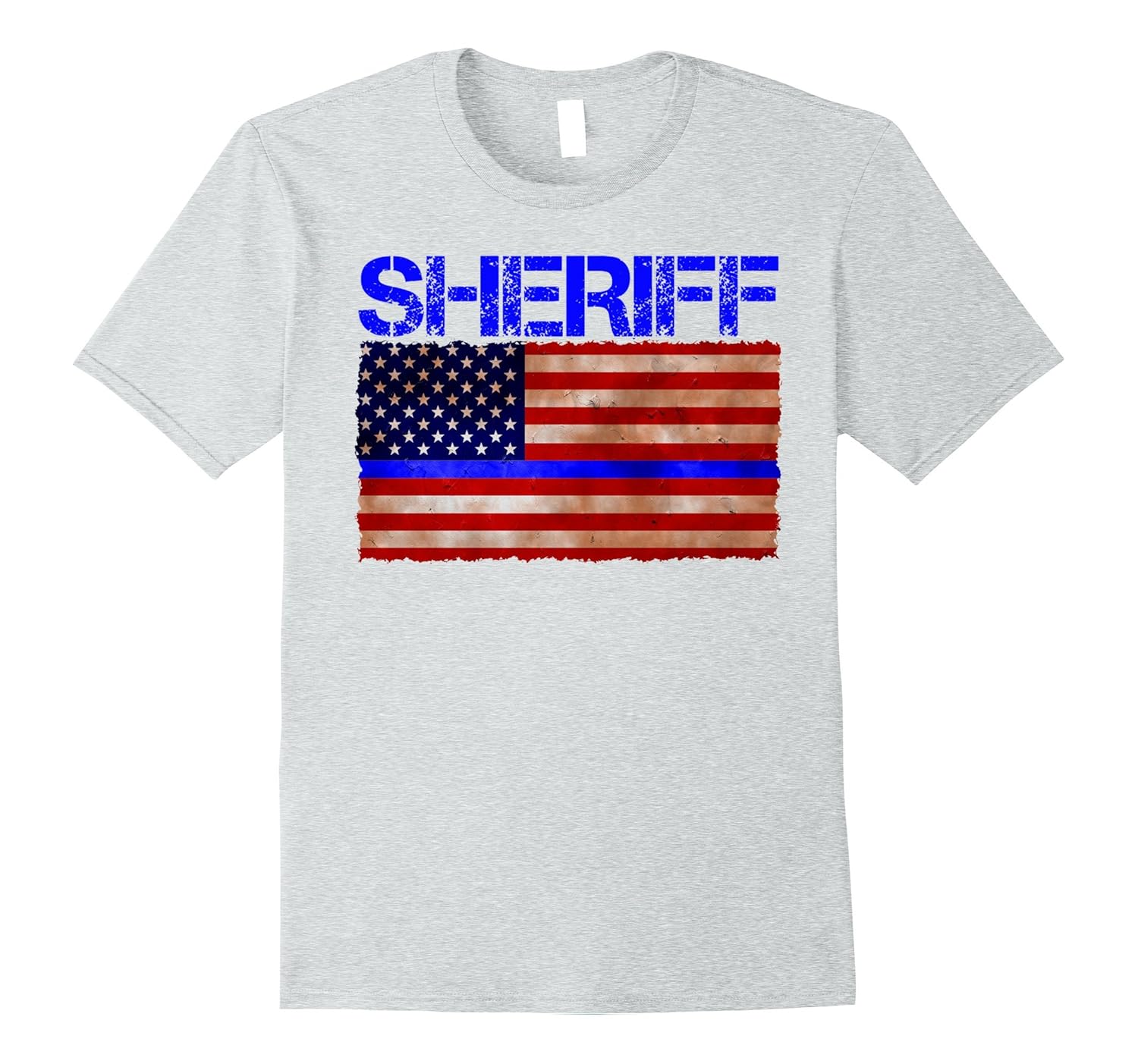 Solid colors: 100% Cotton; Heather Grey: 90% Cotton, 10% Polyester; All Other Heathers: 65% Cotton, 35% Polyester, Imported, Machine wash cold with like colors, dry low heat, If you or someone you know works as a Sheriff, then this Sheriff Thin Blue Line United States Flag shirt is perfect. This awesome Sheriff Thin Blue Line tshirt is the perfect gift idea for our brave Law Enforcement Officer personnel. Lightweight, Classic fit, Double-needle sleeve and bottom hem