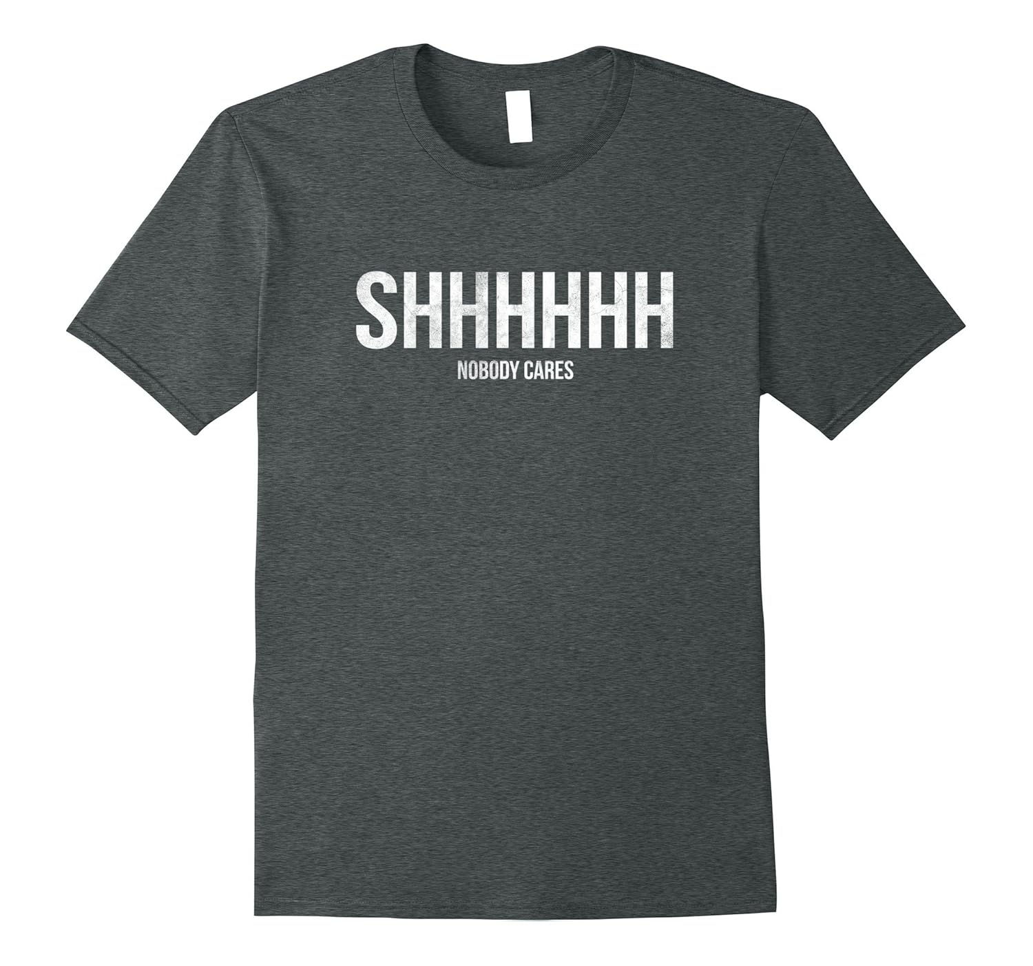 Solid colors: 100% Cotton; Heather Grey: 90% Cotton, 10% Polyester; All Other Heathers: 65% Cotton, 35% Polyester, Imported, Machine wash cold with like colors, dry low heat, Sh Shh Shhh Shhhh Shhhhh No One / Nobody Cares, Sarcastic Tee Shirt Design with Vintage Look, Lightweight, Classic fit, Double-needle sleeve and bottom hem