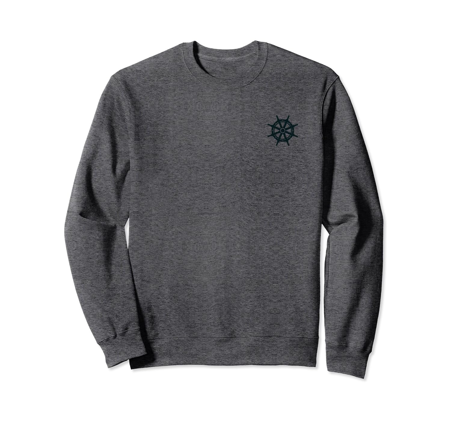 Ship Boat Wheel Nautical Pocket Print Pullover Sweatshirt-anz