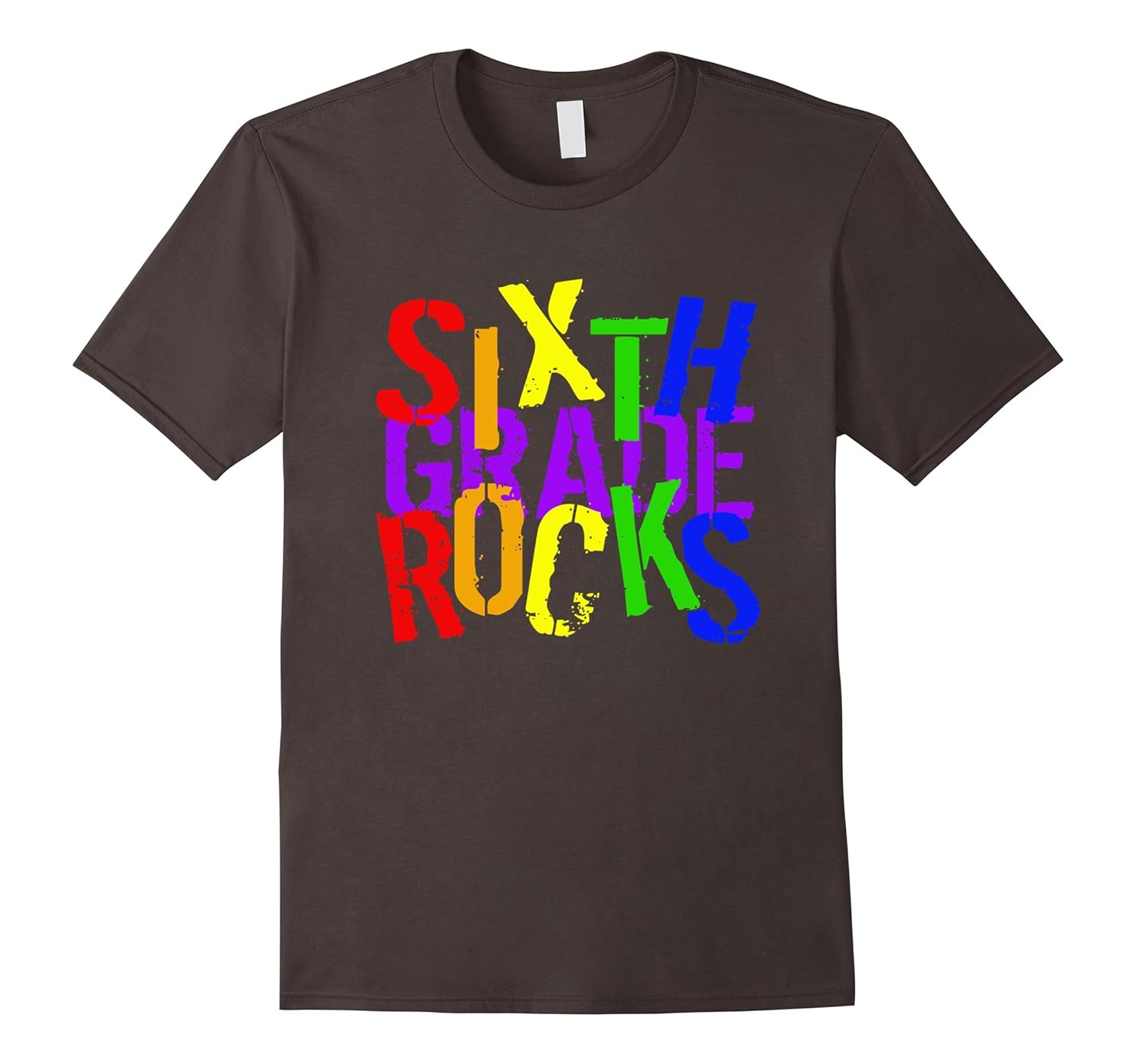 100% Cotton; Imported; Machine wash cold with like colors, dry low heat; Sixth Grade Rocks primary rainbow colors distressed text is printed on a high quality short sleeve regular fit unisex tee shirt. Plus sized ladies can order mens sizes for a comfortable fit. Fun for students to wear year round, on field trips, and on field day!; Original, official custom graphic and text tee shirt design for teachers by ETS Press. Cool teachers gift for Back to School, Christmas, Valentines, and Teacher Appreciation Week. Perfect for men and women professional educators to wear to school, workshops, and teaching conferences.; Lightweight, Classic fit, Double-needle sleeve and bottom hem