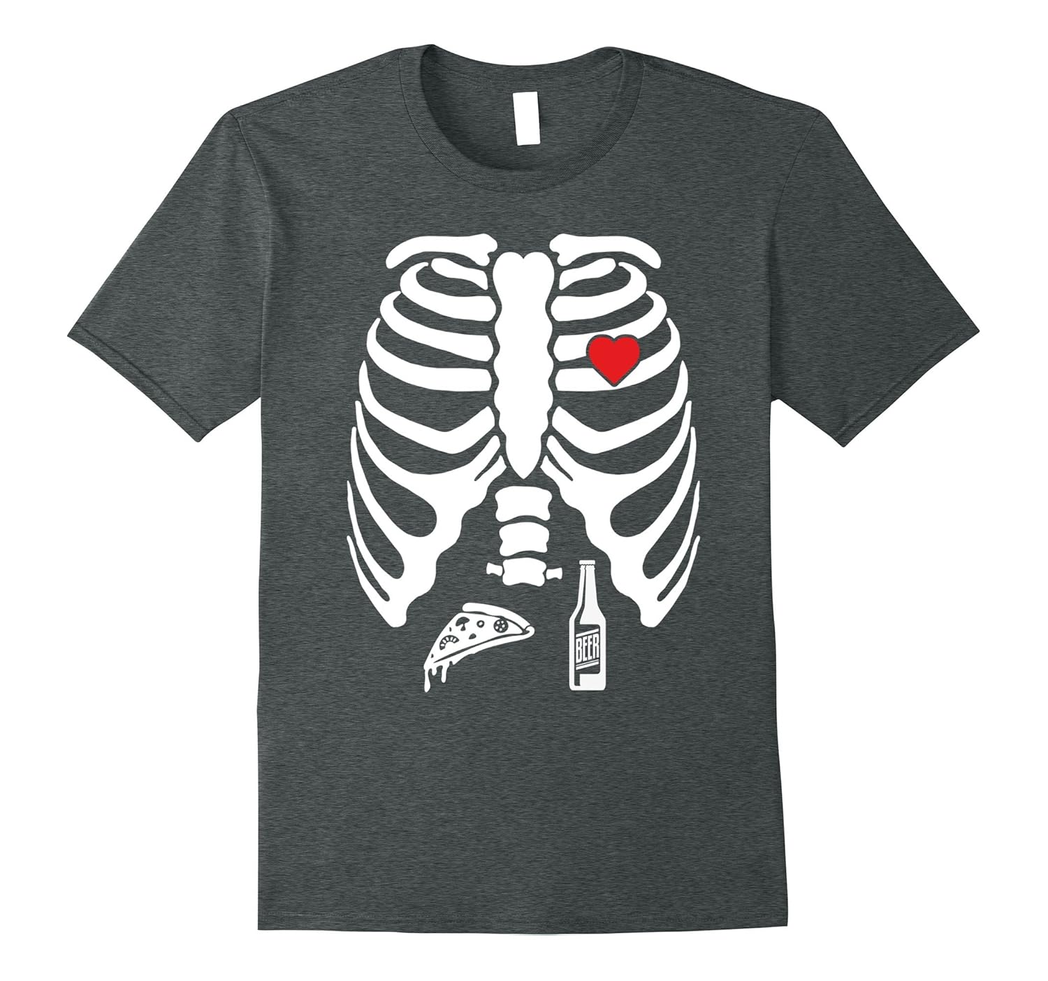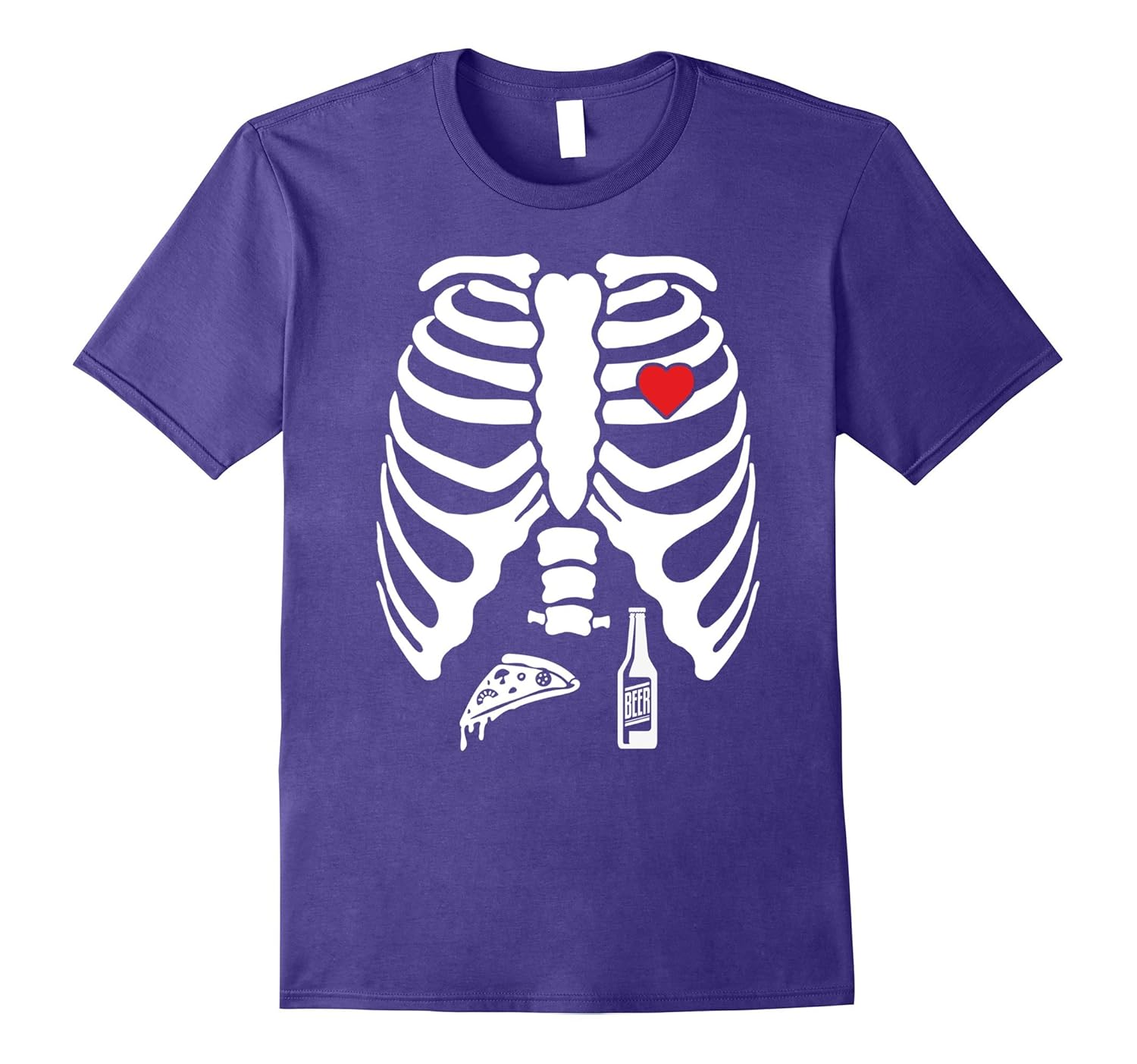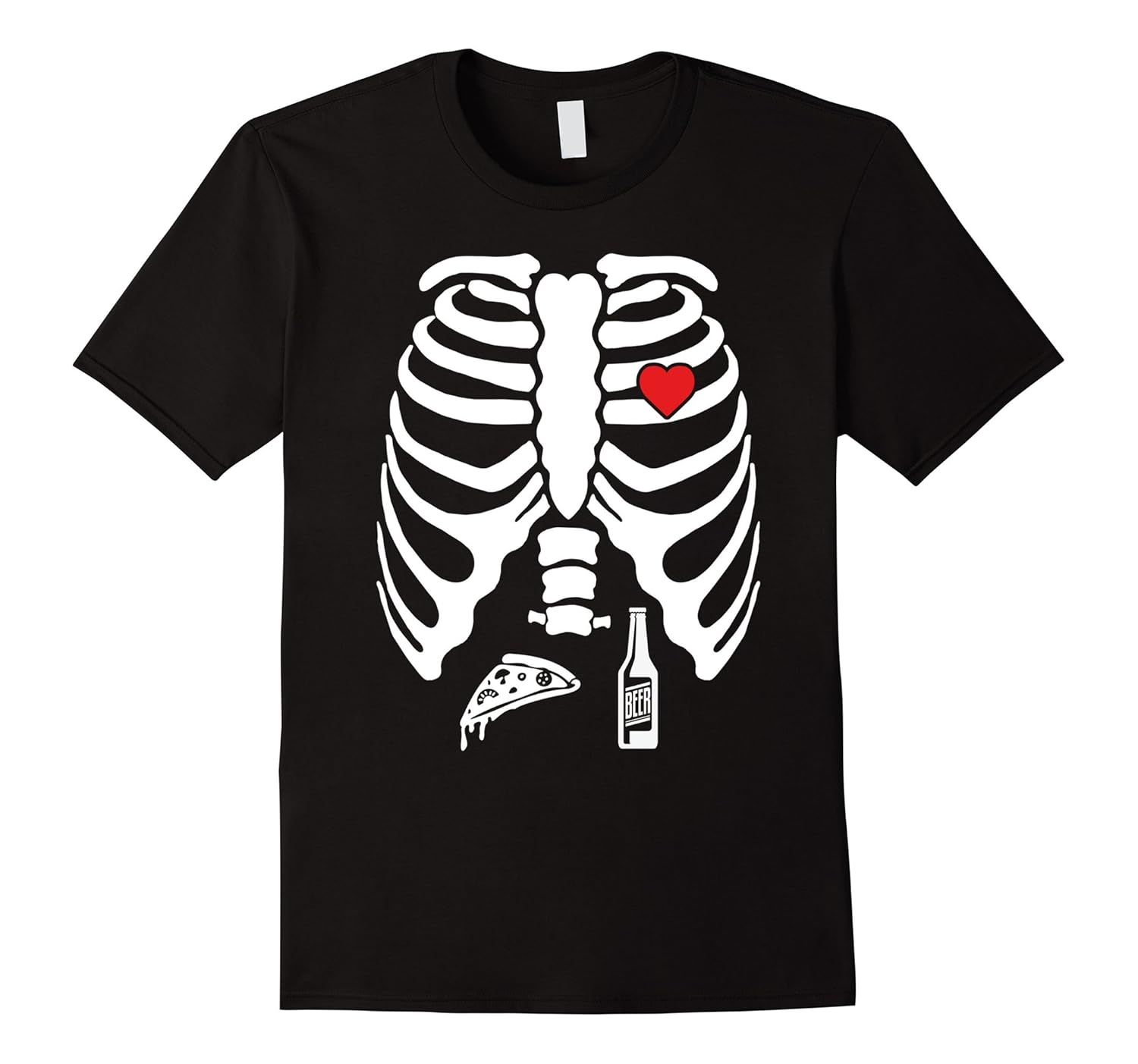 Solid colors: 100% Cotton; Heather Grey: 90% Cotton, 10% Polyester; All Other Heathers: 50% Cotton, 50% Polyester; Imported; Machine wash cold with like colors, dry low heat; Purchase this funny halloween beer drinking t-shirt for men and women adults. Hilarious image of a belly full of a pizza and beer. Excellent halloween party costume or outfit for school or work.; Red heart bottle. Great gift for dad, mom, brother or sister for a birthday or christmas lover.; Lightweight, Classic fit, Double-needle sleeve and bottom hem