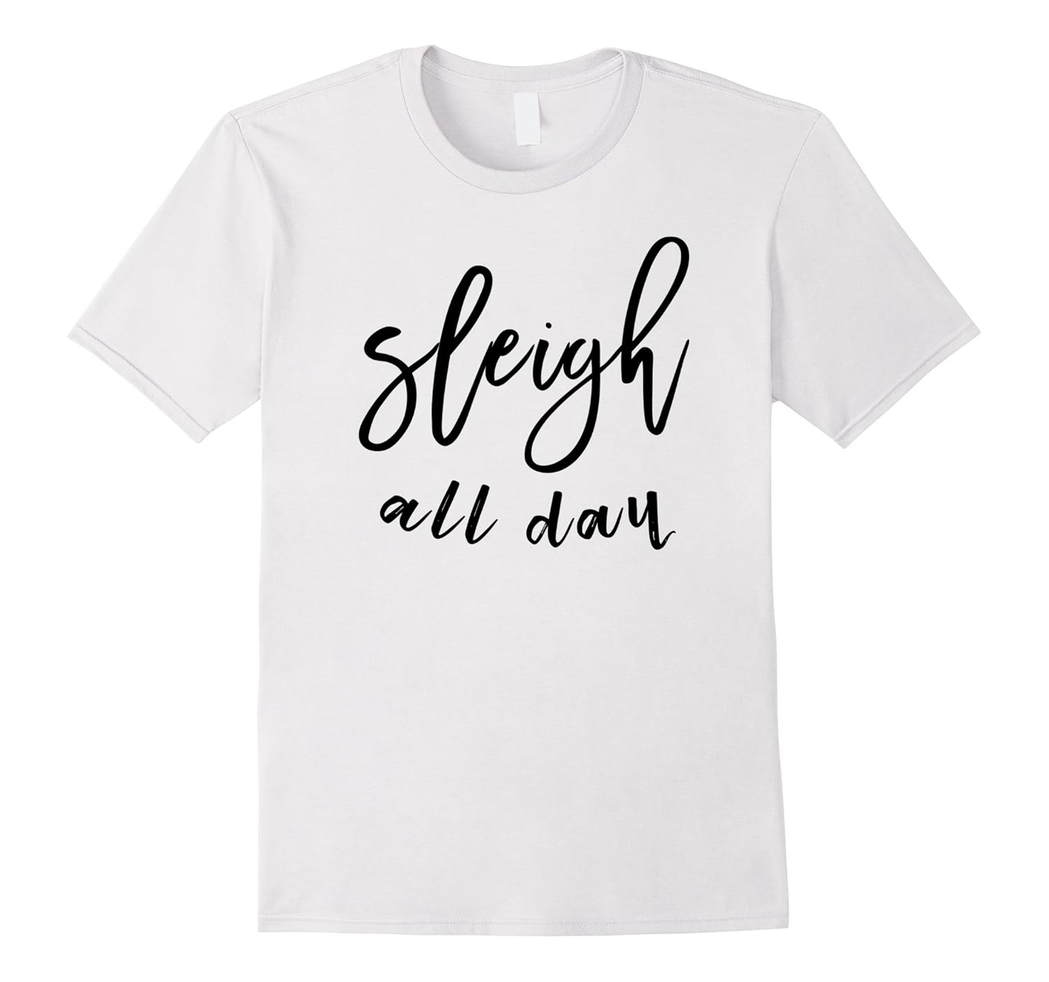 Solid colors: 100% Cotton; Heather Grey: 90% Cotton, 10% Polyester; All Other Heathers: 65% Cotton, 35% Polyester, Imported, Machine wash cold with like colors, dry low heat, Do you love the Christmas season. It”s our favorite holiday too! If you love the Christmas lights, presents, gifts, x-mas trees, Santa, his elves in the workshop, then this is the perfect xmas gift shirt!, This is our Sleigh All Day Funny Christmas Xmas T-Shirt. Perfect Christmas shirt for mom!, Lightweight, Classic fit, Double-needle sleeve and bottom hem