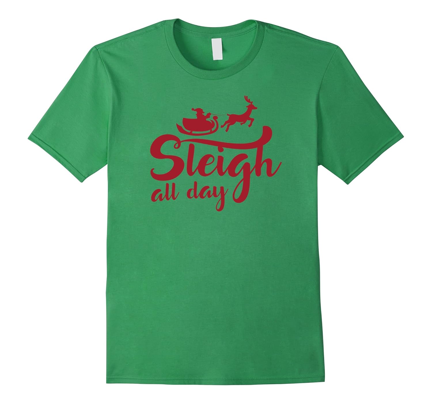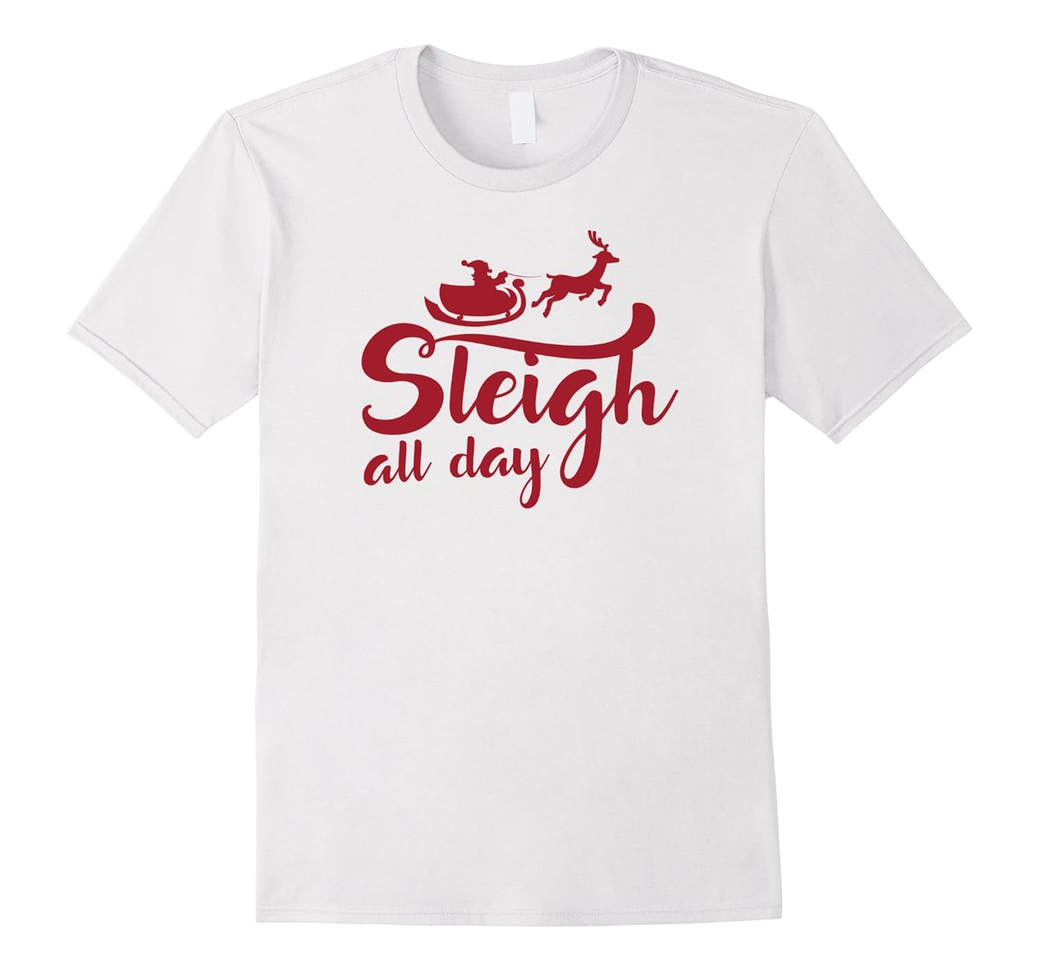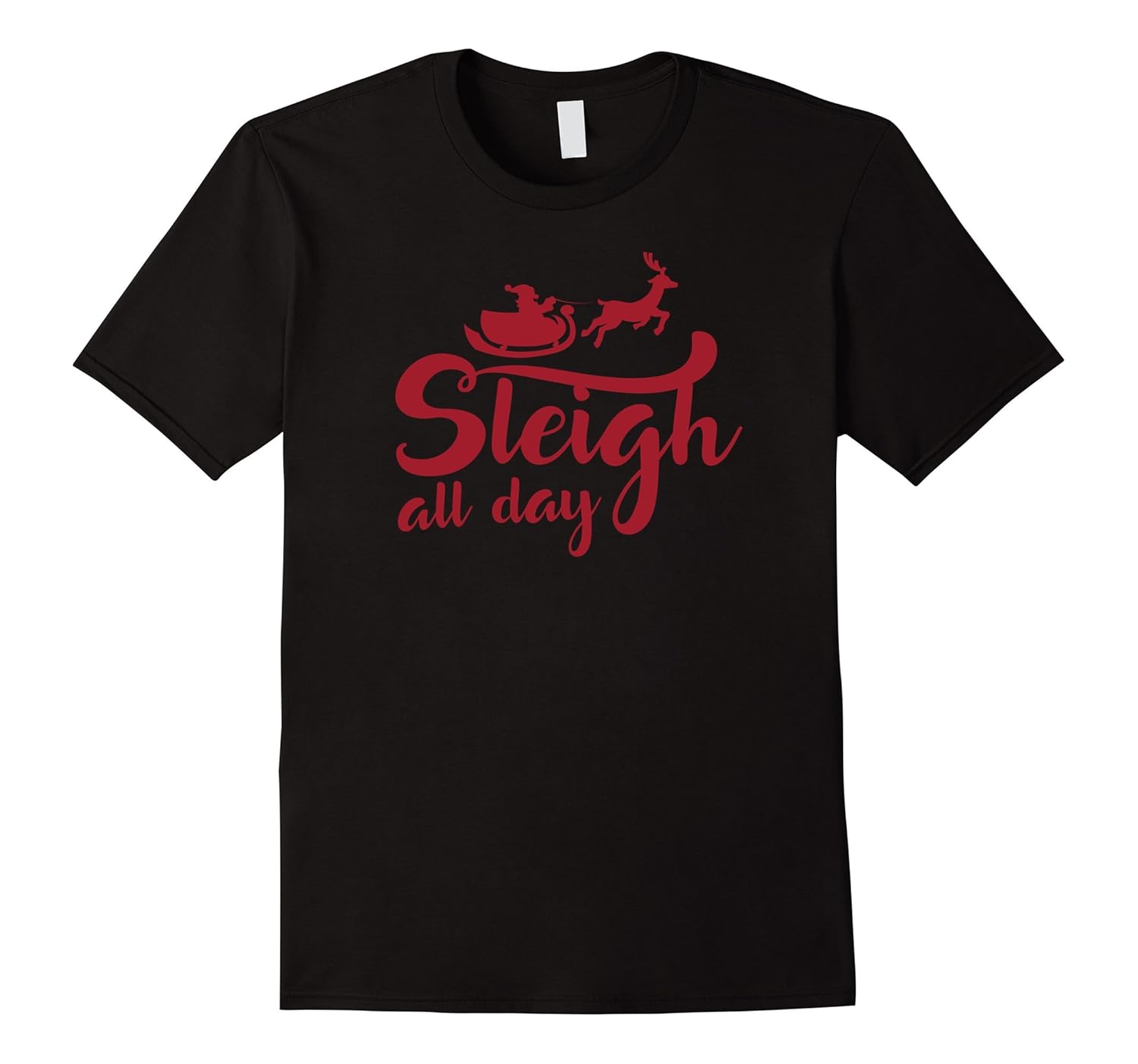 Solid colors: 100% Cotton; Heather Grey: 90% Cotton, 10% Polyester; All Other Heathers: 65% Cotton, 35% Polyester, Imported, Machine wash cold with like colors, dry low heat, Funny Sleigh All Day graphic t-shirt with Santa and a Reindeer in a flying sleigh. Cute Christmas and birthday present for adults and kids, boys and girls. Awesome matching family Christmas costume or outfit idea. Ideal gift idea for a teachers and school. Great couples matching costume idea for man and wife, boyfriend and girlfriend. Perfect Christmas present for your brother and sister or children. Great gift for people who work hard, mom and dad. Gift for teenagers and teens who love to sleigh in the snow, Lightweight, Classic fit, Double-needle sleeve and bottom hem