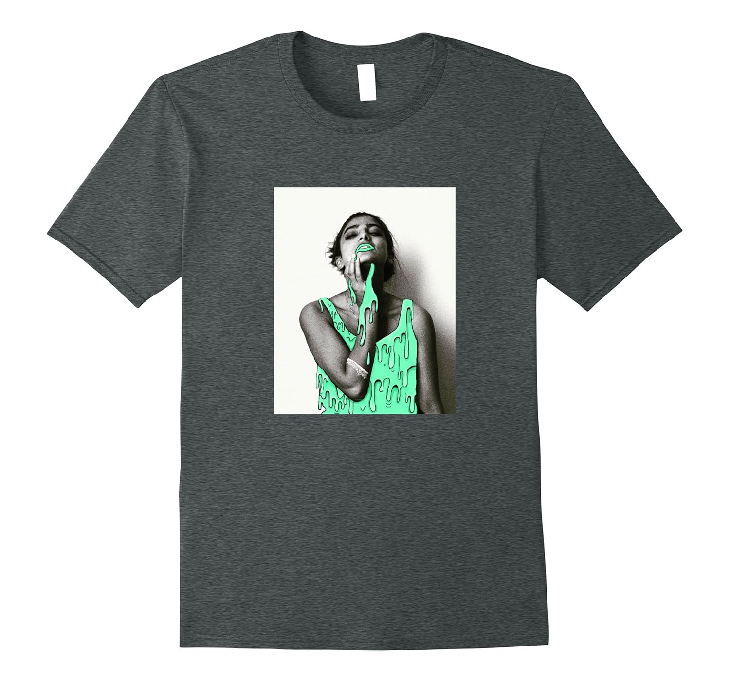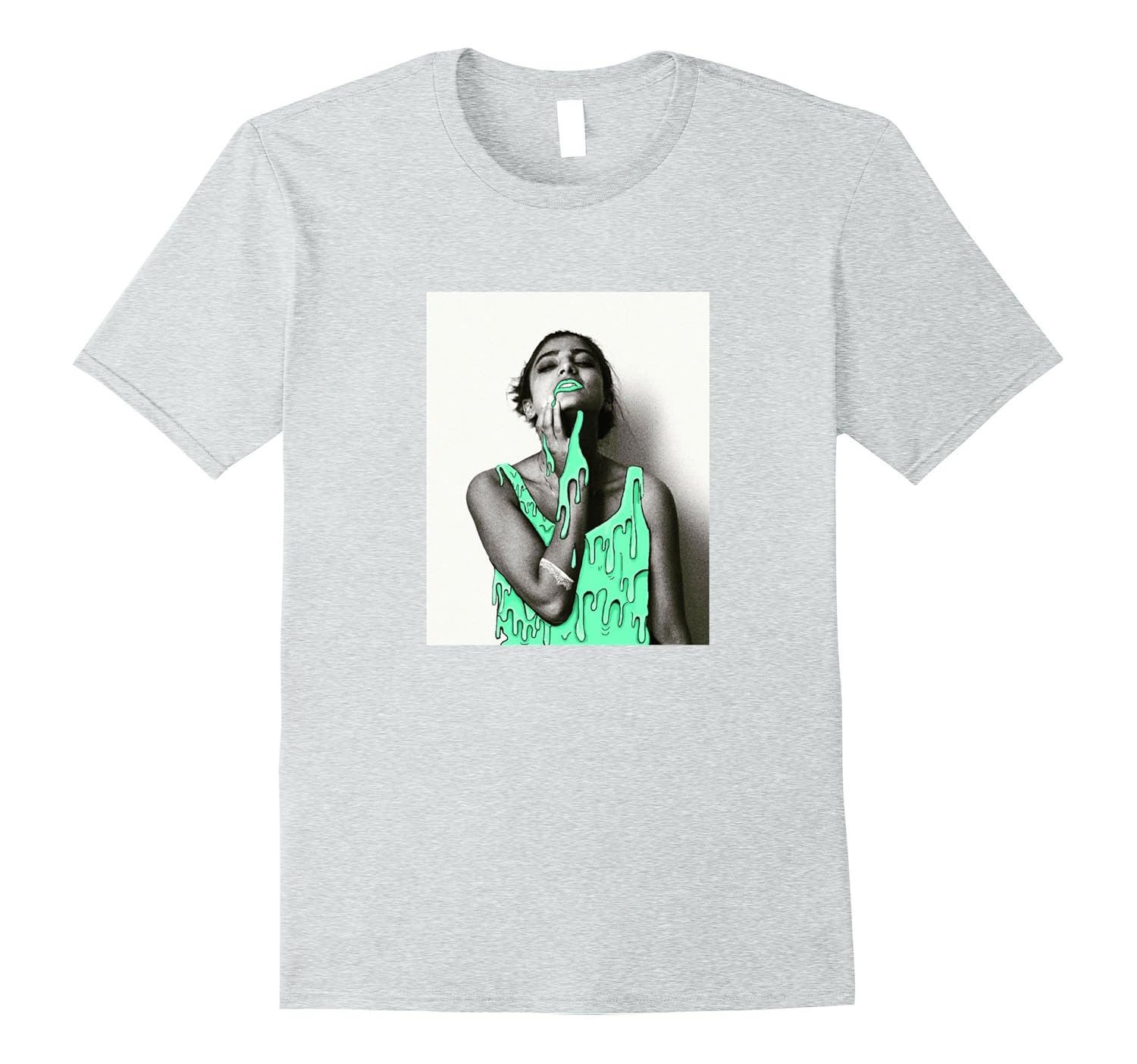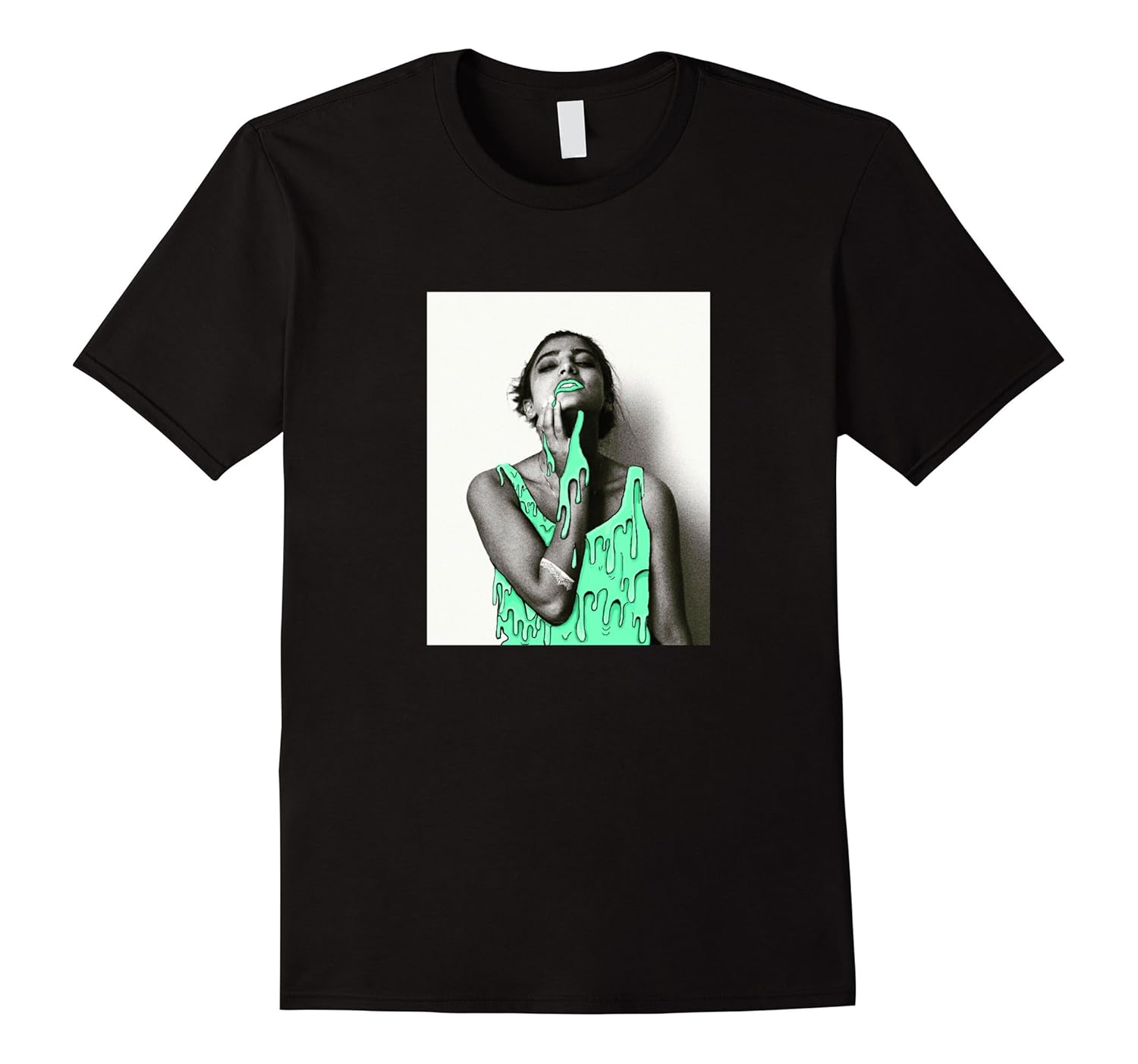 Solid colors: 100% Cotton; Heather Grey: 90% Cotton, 10% Polyester; All Other Heathers: 65% Cotton, 35% Polyester, Imported, Machine wash cold with like colors, dry low heat, Cool slime graphic tee for men and women, unique design graphic t-shirt, One-of-a-kind slime graphic tee. with cool black and white design of girl with green slime, Lightweight, Classic fit, Double-needle sleeve and bottom hem