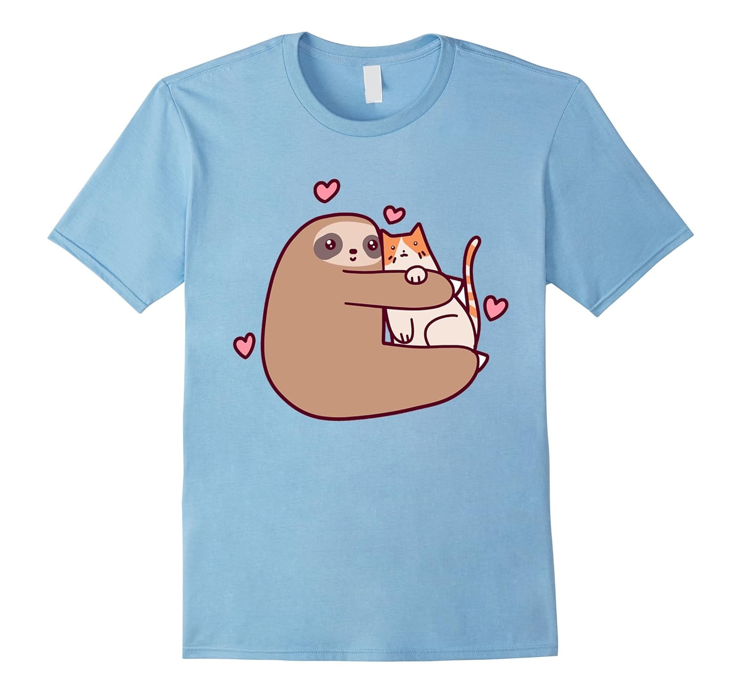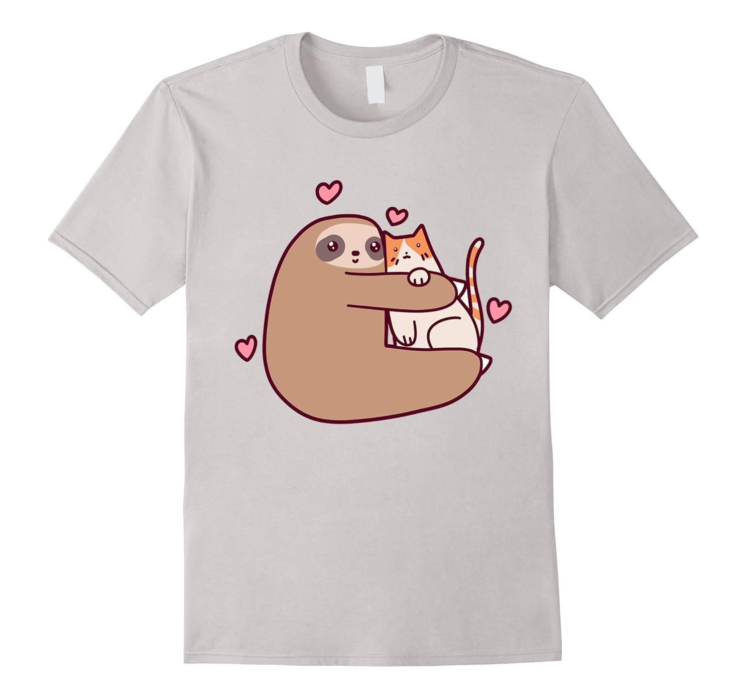 Solid colors: 100% Cotton; Heather Grey: 90% Cotton, 10% Polyester; All Other Heathers: 65% Cotton, 35% Polyester, Imported, Machine wash cold with like colors, dry low heat, Sloth love Cat T-shirt, Lightweight, Classic fit, Double-needle sleeve and bottom hem
