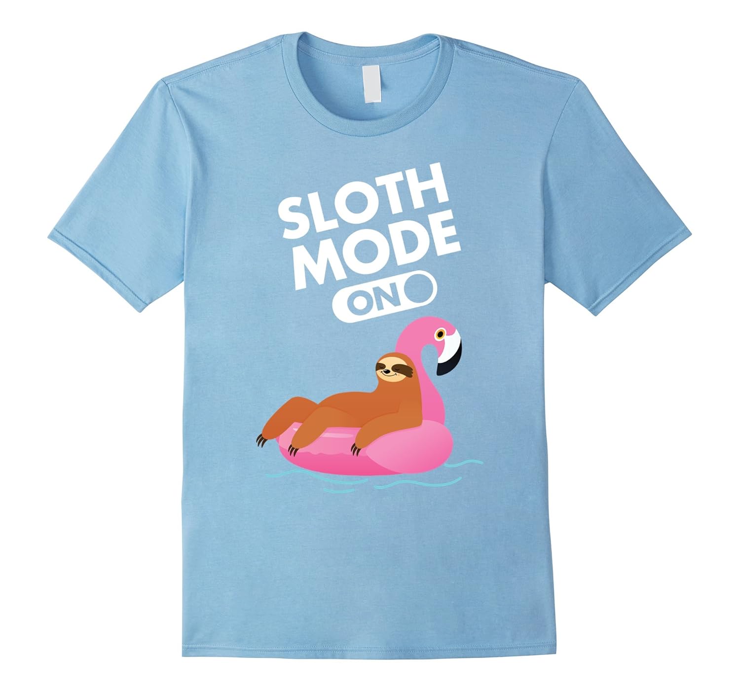 Solid colors: 100% Cotton; Heather Grey: 90% Cotton, 10% Polyester; All Other Heathers: 65% Cotton, 35% Polyester, Imported, Machine wash cold with like colors, dry low heat, Sloth mode permanently set to on, when you”re ready to be lazy and get some relaxation. Adorable hand drawn illustration of a sloth laying on a hot pink flamingo pool inflatable. Fun vacation or weekend t-shirt for family or friends. Family friendly shirt. Trendy sloth character design with off kilter text. Funny novelty shirt for birthday or Christmas gifts. Order one size up for a more relaxed fit. Slow moving sloths are a hero to the lazy and those who love to take long naps throughout the day. Lightweight, Classic fit, Double-needle sleeve and bottom hem