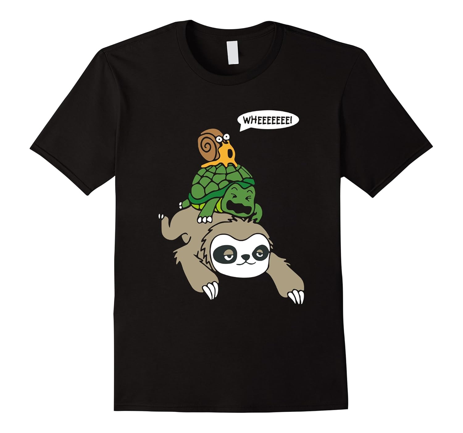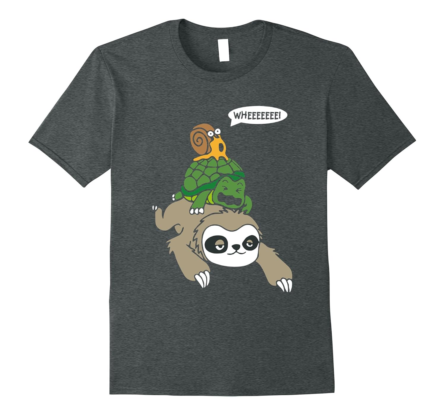 Sloth, Turtle and Snail Piggyback Funny Running Wild T-Shirt-ANZ