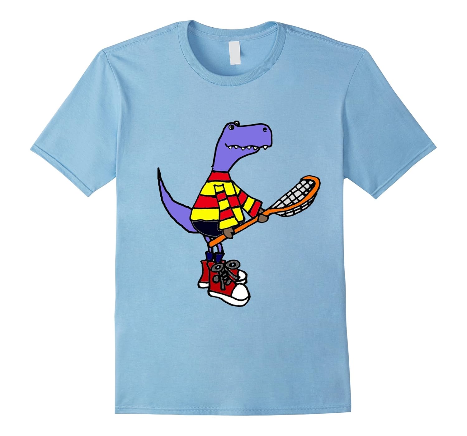 Solid colors: 100% Cotton; Heather Grey: 90% Cotton, 10% Polyester; All Other Heathers: 65% Cotton, 35% Polyester, Imported, Machine wash cold with like colors, dry low heat, Cute cool blue T-rex dinosaur playing LaCrosse tee shirt is popular with dinosaur lovers and LaCrosse players. Humorous T-rex dinosaur playing LaCrosse tshirt is also incredible for LaCrosse sports fans and animal lovers. Lightweight, Classic fit, Double-needle sleeve and bottom hem