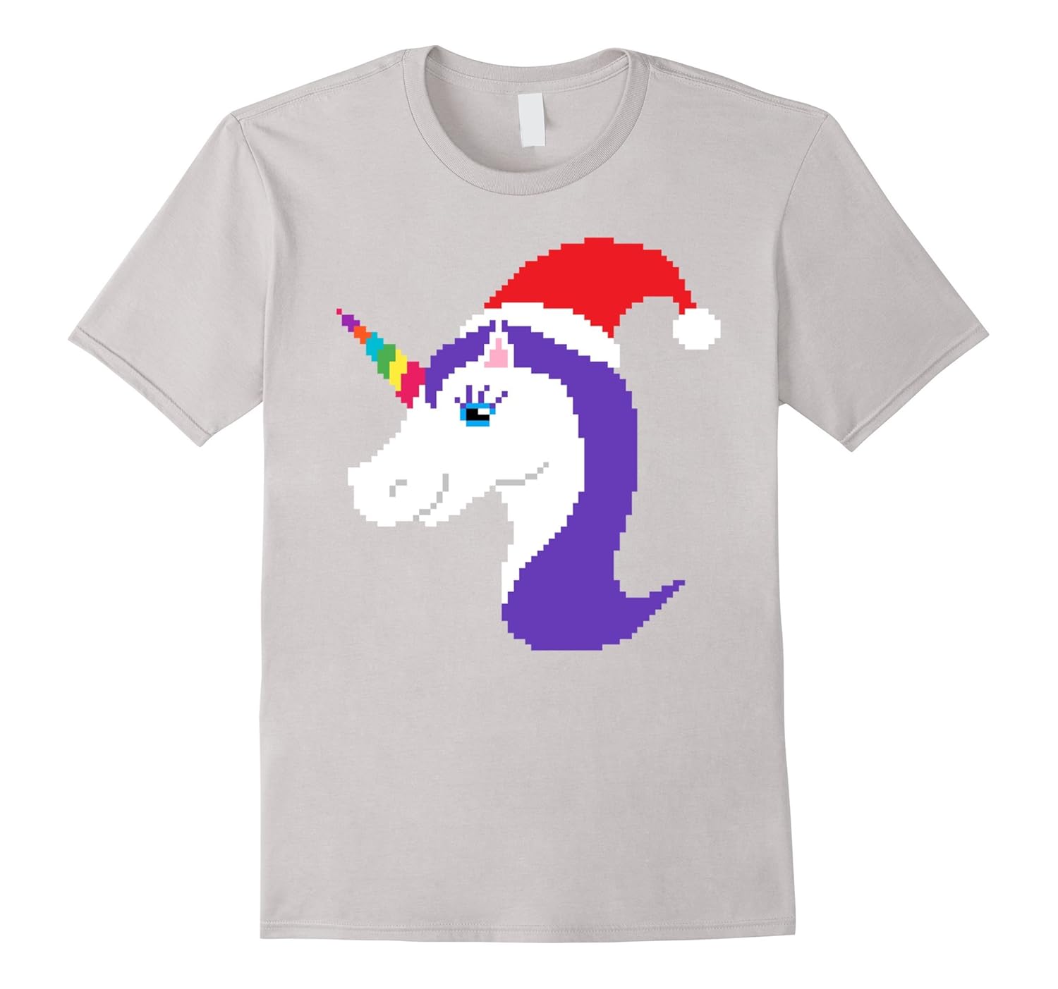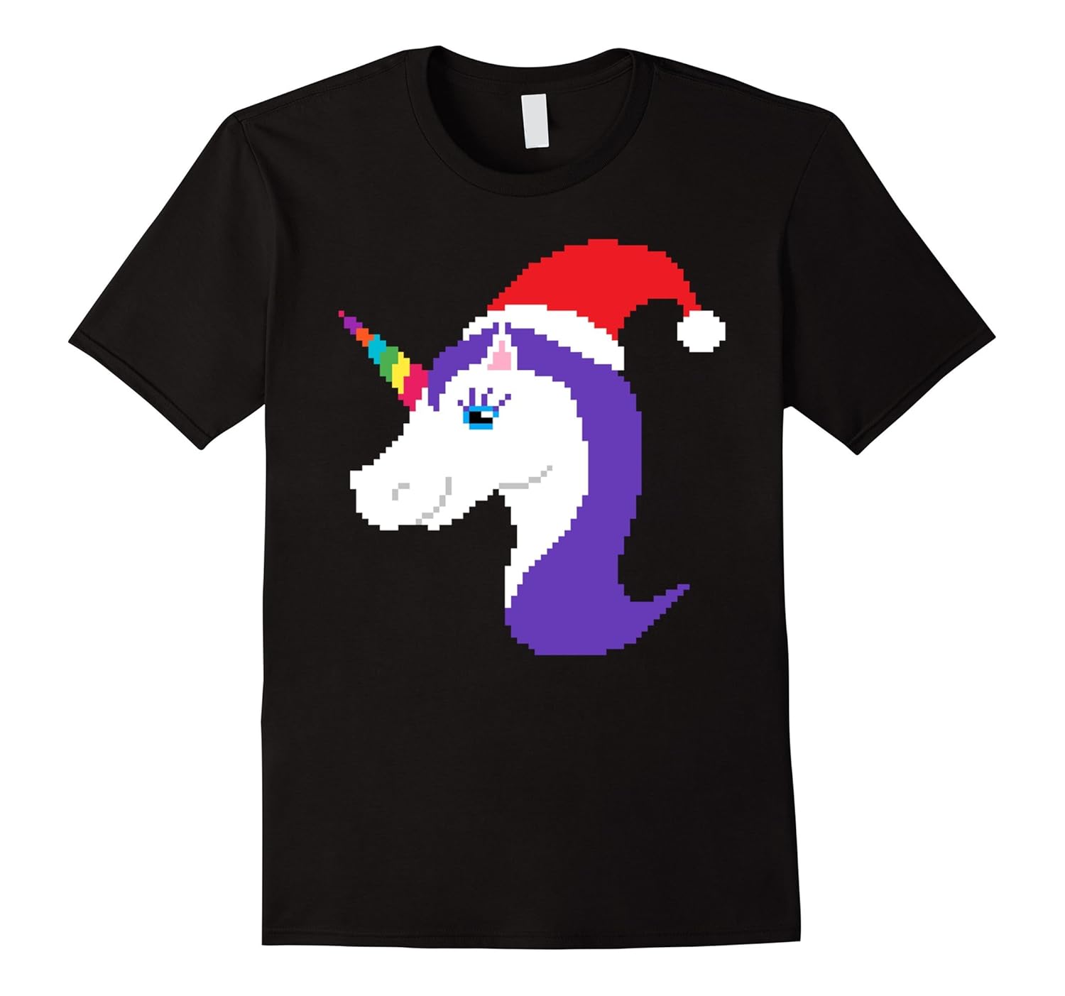 Solid colors: 100% Cotton; Heather Grey: 90% Cotton, 10% Polyester; All Other Heathers: 65% Cotton, 35% Polyester; Imported; Machine wash cold with like colors, dry low heat; Cute and adorable digital print tee shirt with unicorn rainbow horn Santa Claus hat for women, men or kids. Wear this funny ugly Xmas sweater style t-shirt to a holiday party. One of the best Xmas last minute gift ideas for mom, dad, son or daughter.; Vintage retro video game tshirt adult outfit or kids costume. 8 bit gaming pixelated tshirt. Great birthday gift idea or Christmas present novelty themed humor item. Printed to be fitted, for a looser fit please order a size up.; Lightweight, Classic fit, Double-needle sleeve and bottom hem