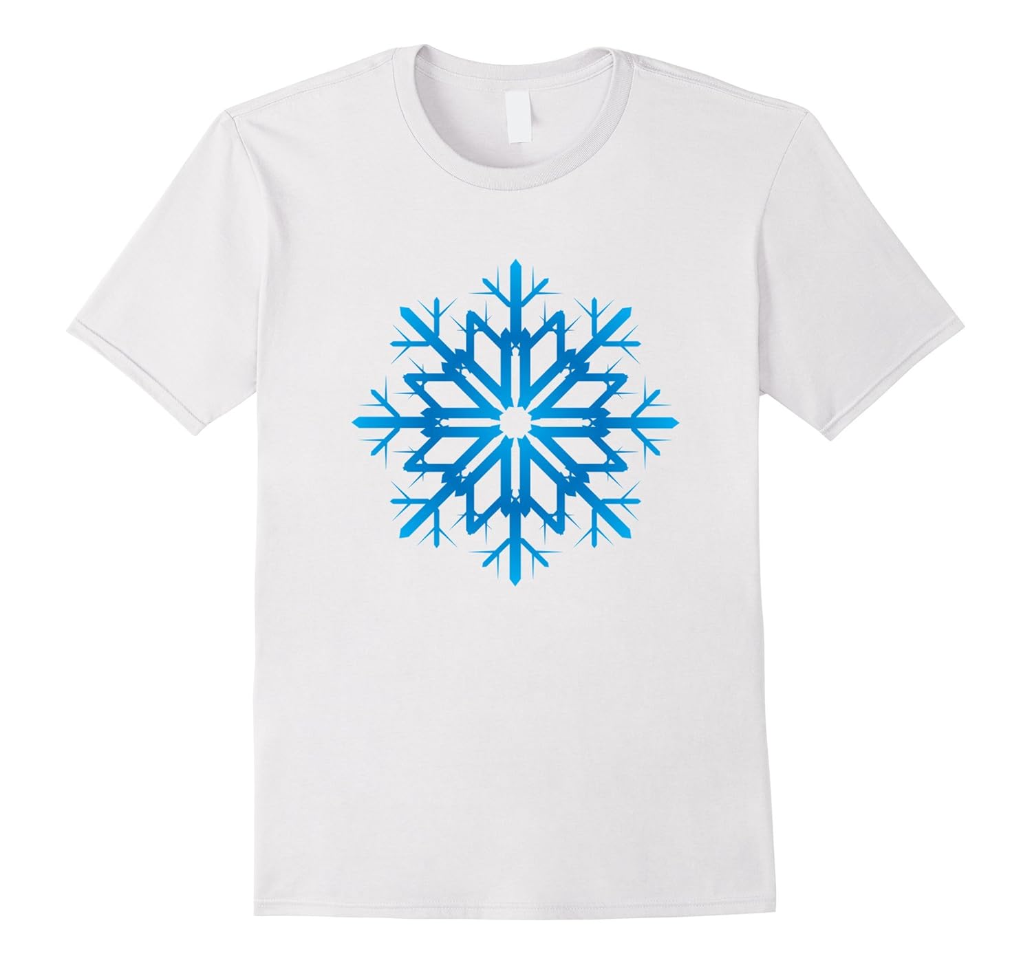 Solid colors: 100% Cotton; Heather Grey: 90% Cotton, 10% Polyester; All Other Heathers: 65% Cotton, 35% Polyester; Imported; Machine wash cold with like colors, dry low heat; Snowflake t-shirt for winter holiday, seasons greetings, happy holidays, Christmas, Hanukkah, winter solstice. Pretty, delicate crystal blue frozen snowflake tshirt.; Lightweight, Classic fit, Double-needle sleeve and bottom hem