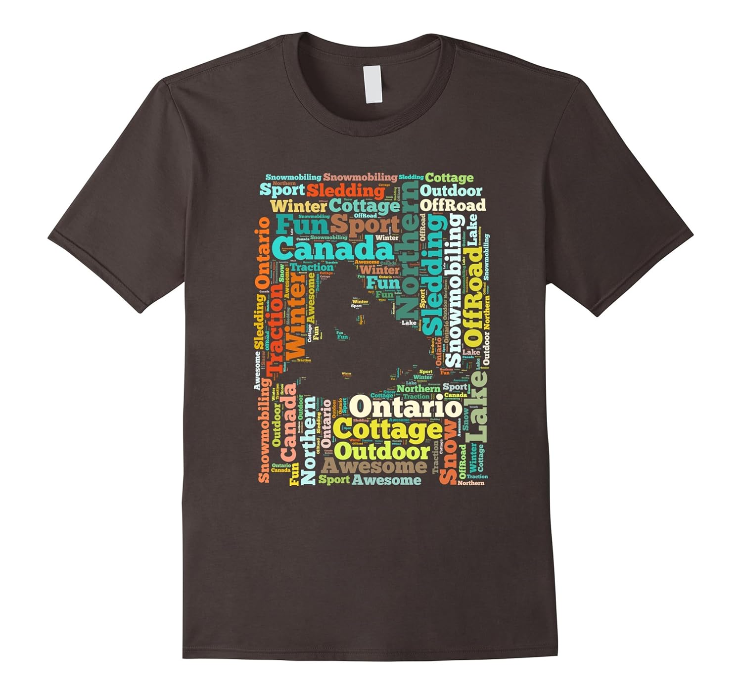Solid colors: 100% Cotton; Heather Grey: 90% Cotton, 10% Polyester; All Other Heathers: 65% Cotton, 35% Polyester, Imported, Machine wash cold with like colors, dry low heat, This Snowmobile Shirt features bold Ontario Canada related text art arrangement around silhouette of a man riding a snowmobile. Snowmobiling gift for Canadian Sledding outdoor winter sport enthusiast. Lightweight, Classic fit, Double-needle sleeve and bottom hem