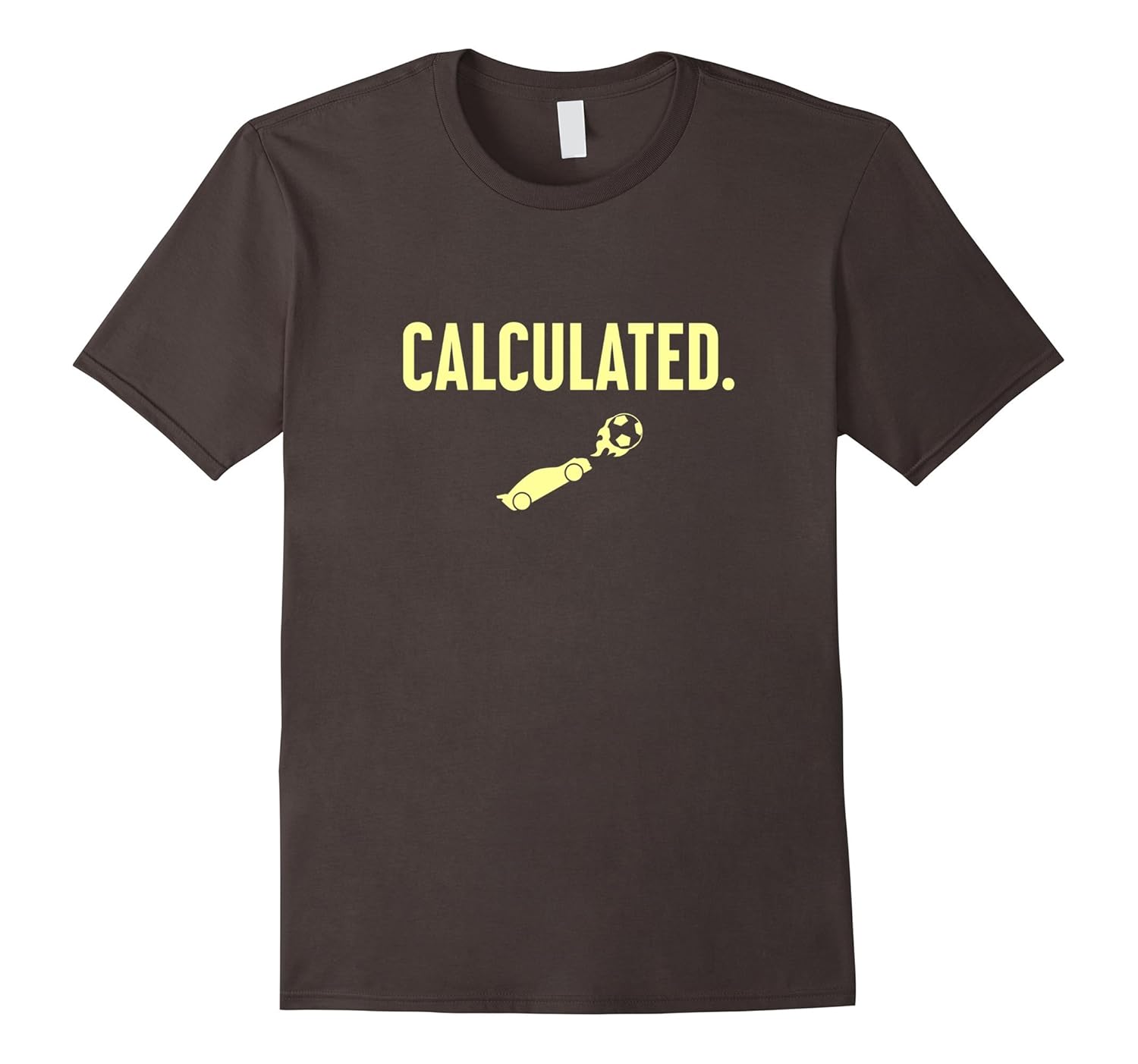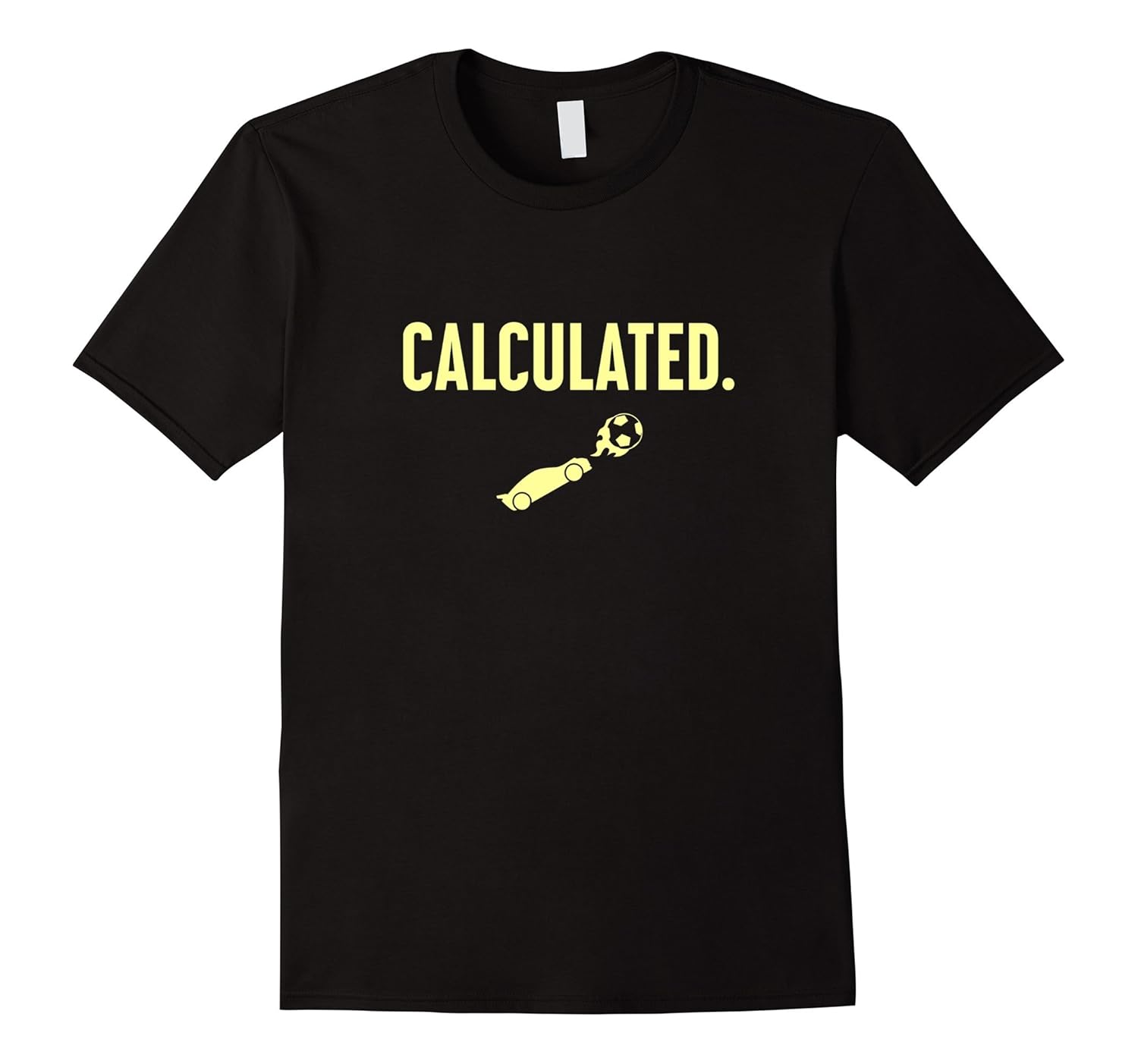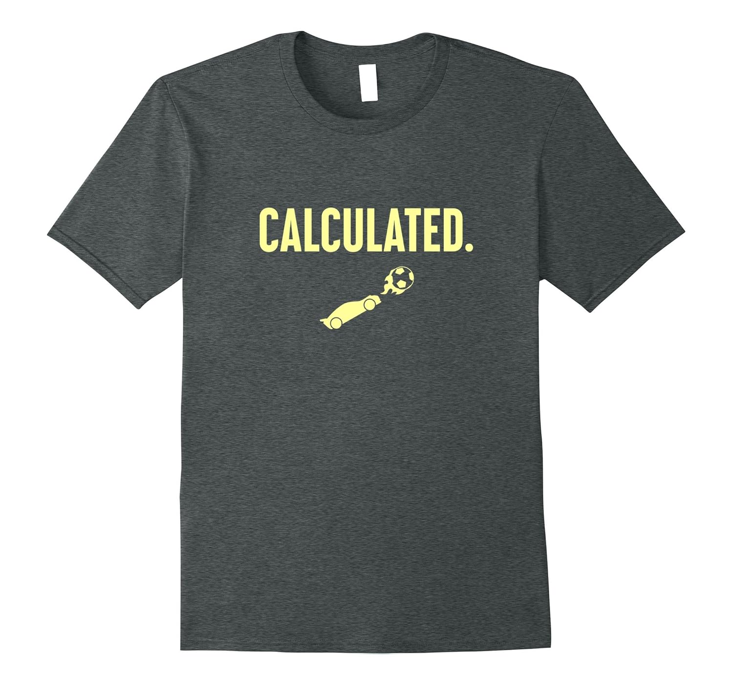 Solid colors: 100% Cotton; Heather Grey: 90% Cotton, 10% Polyester; All Other Heathers: 65% Cotton, 35% Polyester, Imported, Machine wash cold with like colors, dry low heat, There”s nothing like being in the right place at the right time to score a game-winning, physics-defying goal as the clock hits zero. And there”s no better way to tell your opponents how it was done than with this t-shirt. It was calculated. This Soccer League Rocket Car Ball Video Game Calculated T-Shirt is designed and printed to be fitted. For a more loose fit, please order a size up. Lightweight, Classic fit, Double-needle sleeve and bottom hem