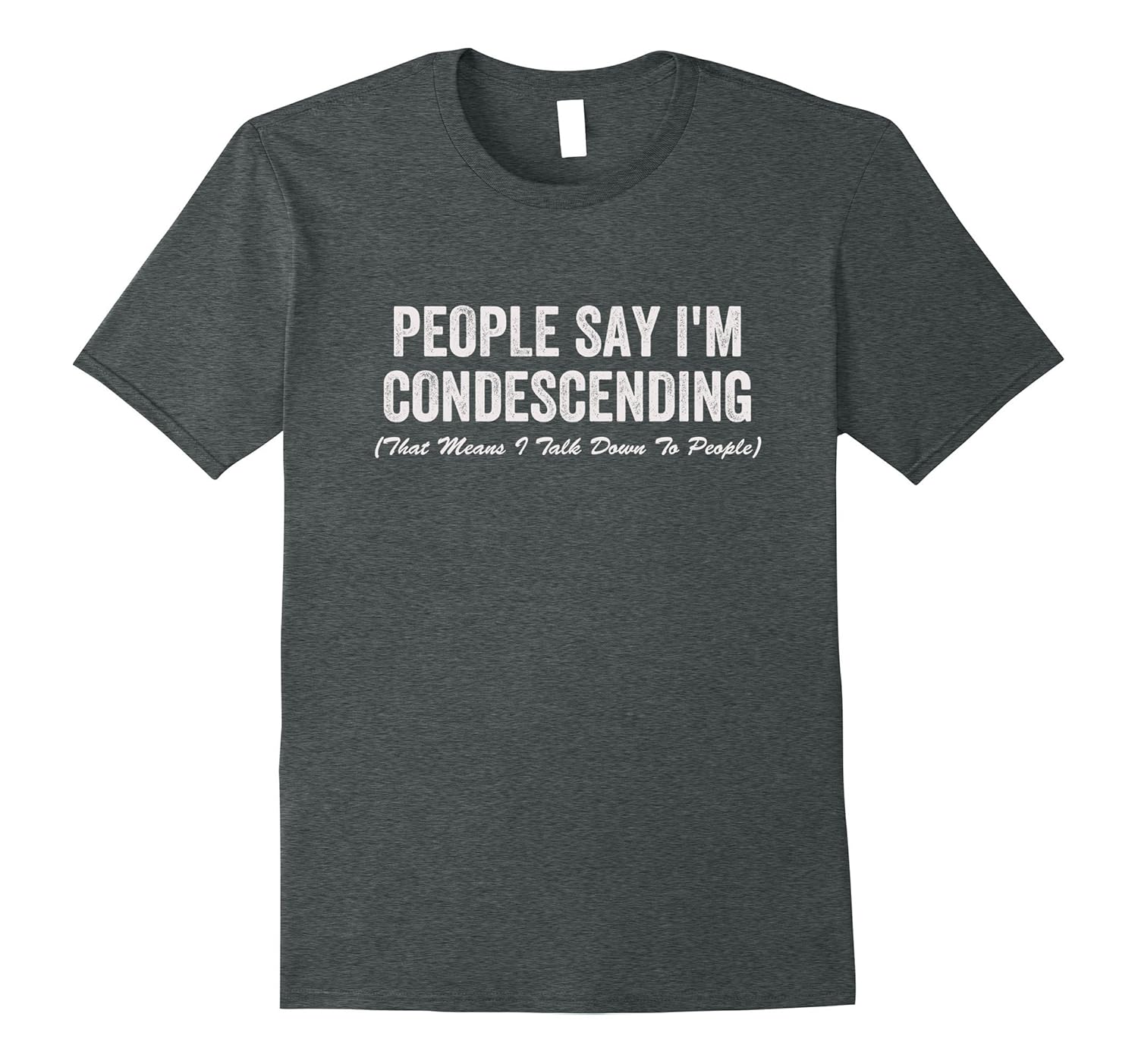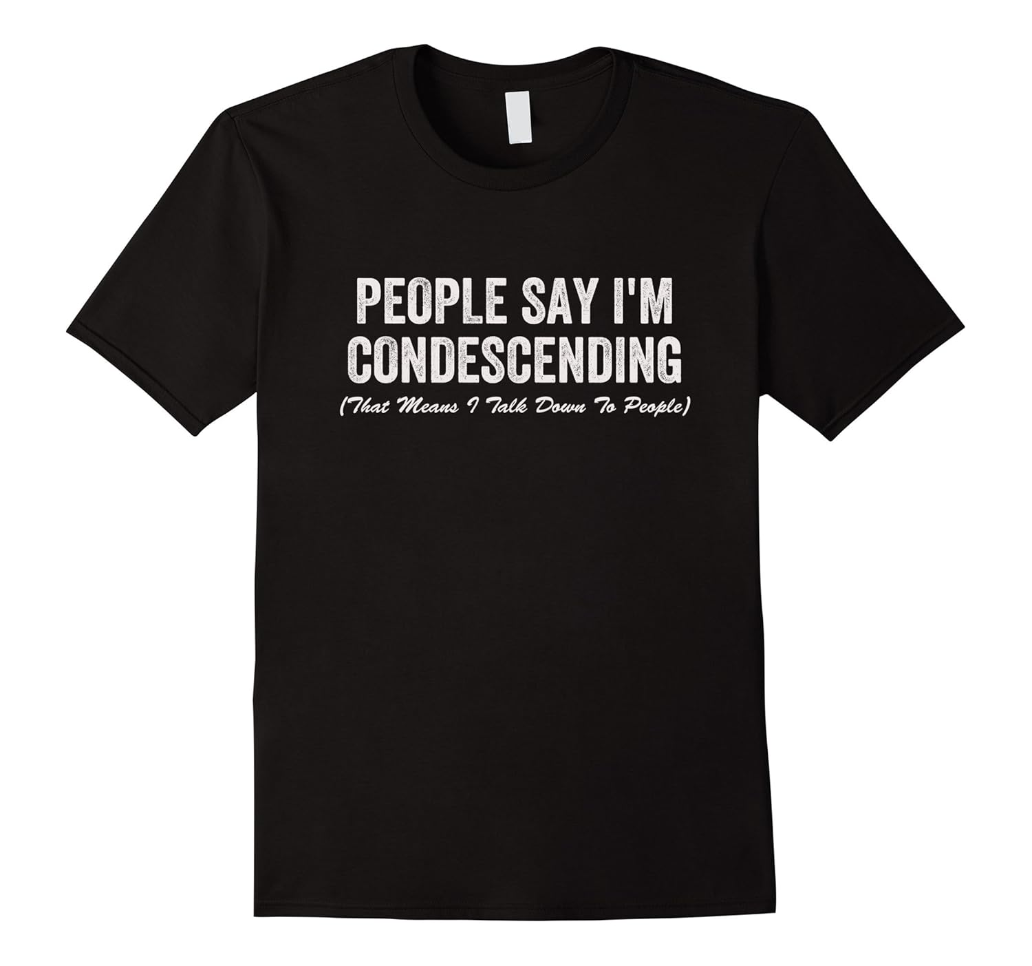 Solid colors: 100% Cotton; Heather Grey: 90% Cotton, 10% Polyester; All Other Heathers: 50% Cotton, 50% Polyester; Imported; Machine wash cold with like colors, dry low heat; Check out this Funny Saying T-Shirt – People Say Im Condescending (That Means I Talk Down To People) that is perfect for the snobby Andamp; snooty. Great for anyone who appreciates a good laugh. If you always know better than anyone, this fun shirt is for you.; The T shirt would make a great addition to your wardrobe, or buy it as a gift for friends and family; Lightweight, Classic fit, Double-needle sleeve and bottom hem