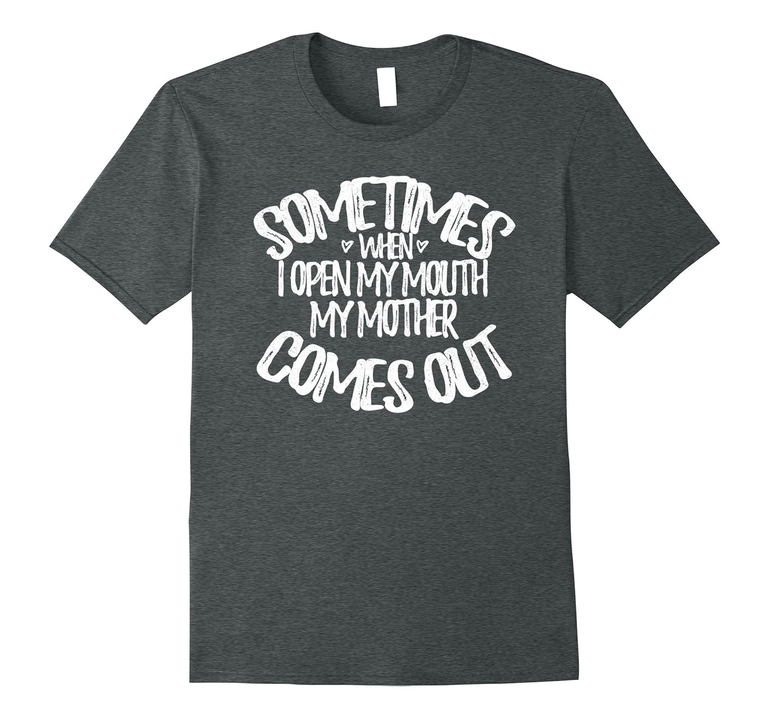 Solid colors: 100% Cotton; Heather Grey: 90% Cotton, 10% Polyester; All Other Heathers: 65% Cotton, 35% Polyester, Imported, Machine wash cold with like colors, dry low heat, Sometimes When I Open My Mouth My Mother Comes Out T-Shirt by Below Normal Tees is a great gift for a son or daughter that sounds just like their mother sometimes!, Perfect gift for your daughter if she sounds just like you sometimes – especially when argueing with you. Fun father to son or daughter Christmas present for a child that sounds like their mother. Also great for niece or nephew or any family at all!, Lightweight, Classic fit, Double-needle sleeve and bottom hem