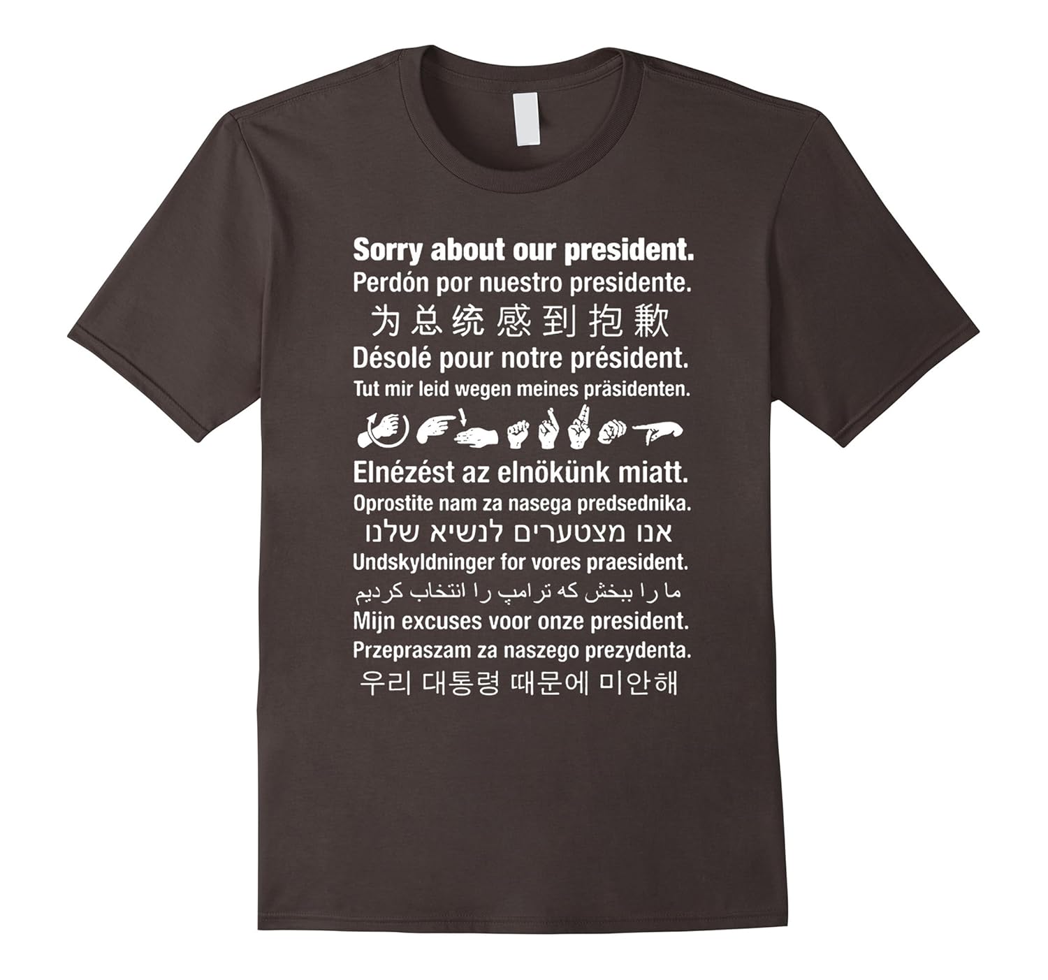Solid colors: 100% Cotton; Heather Grey: 90% Cotton, 10% Polyester; All Other Heathers: 65% Cotton, 35% Polyester, Imported, Machine wash cold with like colors, dry low heat, sorry about our president shirt, I”m sorry about our president Anti Trump Tees, Lightweight, Classic fit, Double-needle sleeve and bottom hem