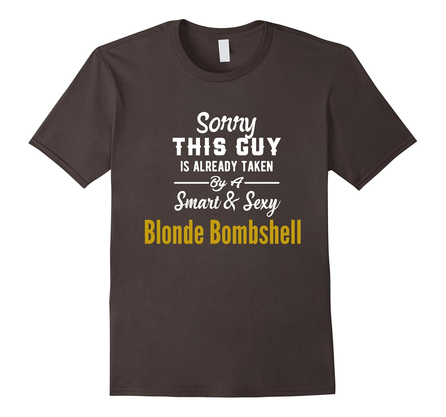 Solid colors: 100% Cotton; Heather Grey: 90% Cotton, 10% Polyester; All Other Heathers: 65% Cotton, 35% Polyester, Imported, Machine wash cold with like colors, dry low heat, Get this funny T-Shirt for your husband, boyfriend or fiance to show how much they love that your their blonde wife or girlfriend. Great to celebrate weddings, engagements, bachelor party or maybe a birthday or christmas gift. Lightweight, Classic fit, Double-needle sleeve and bottom hem
