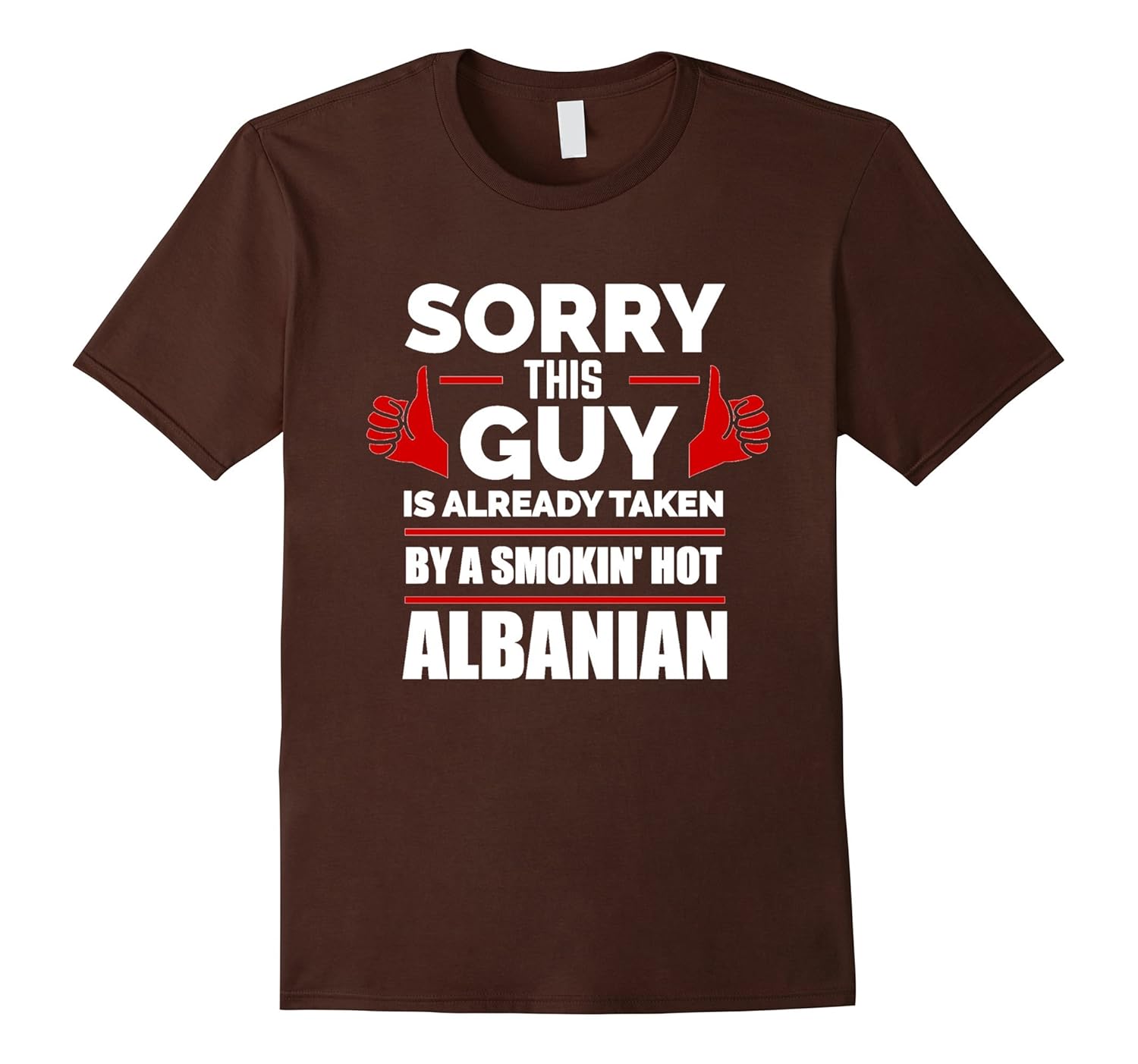 Solid colors: 100% Cotton; Heather Grey: 90% Cotton, 10% Polyester; All Other Heathers: 65% Cotton, 35% Polyester, Imported, Machine wash cold with like colors, dry low heat, Funny t-shirt for husbands, boyfriends, fiances who love being with their hot Albanian wives, spouses, girlfriends, fiancees and love having partners from Albania, Great couples t-shirt for those who recently got Engaged, Engagement Parties, Wedding Anniversaries, Valentine”s Day, wedding vow renewals, Mother”s days, Father”s day, Birthdays, Christmas and more, Lightweight, Classic fit, Double-needle sleeve and bottom hem