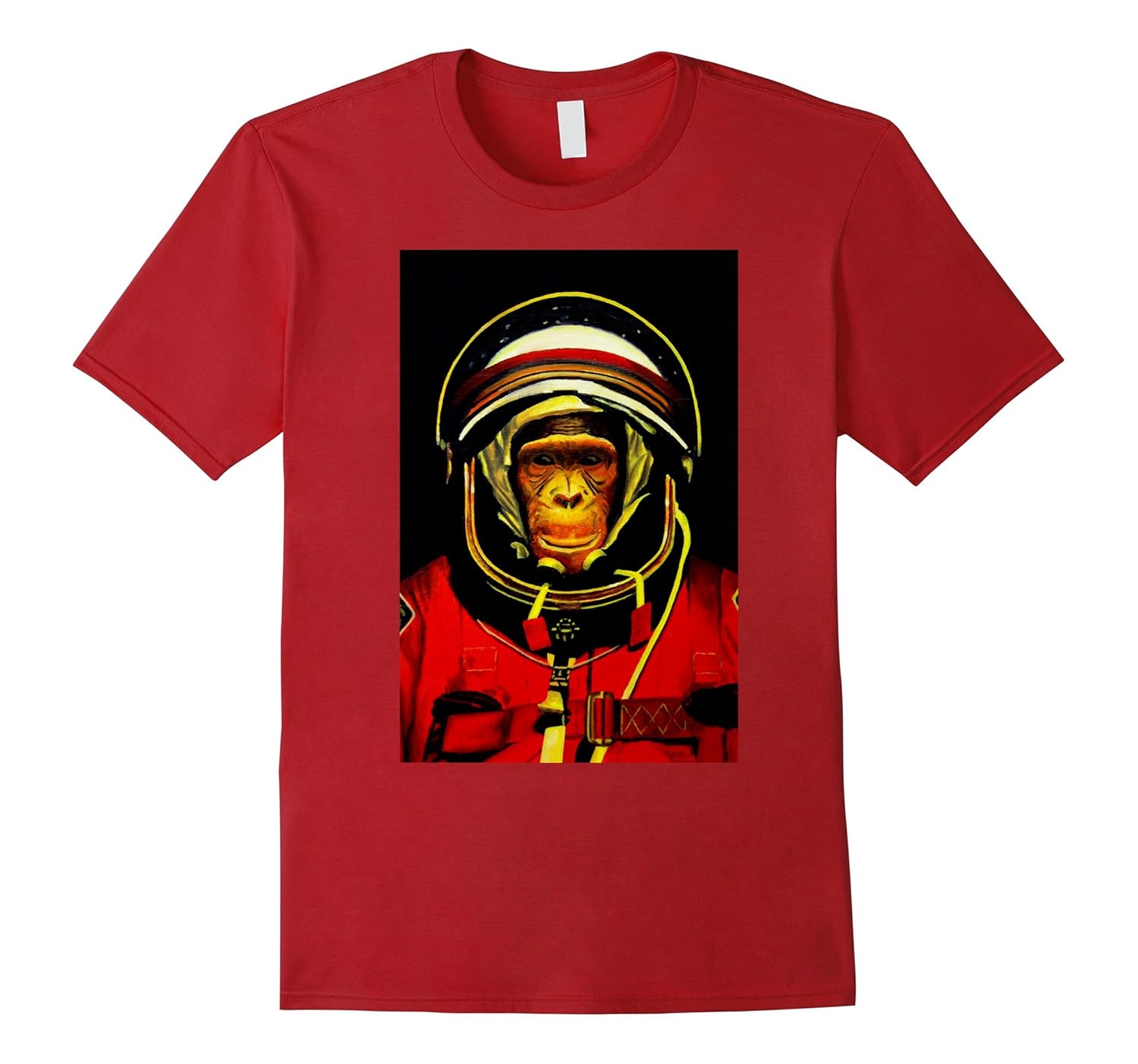 Solid colors: 100% Cotton; Heather Grey: 90% Cotton, 10% Polyester; All Other Heathers: 65% Cotton, 35% Polyester; Imported; Machine wash cold with like colors, dry low heat; Whatever you would call him, a space monkey or space ape or a space chimp. This original painting is from a photo of one that was an astronaut and was sent into space!; These often run a little small, so if not sure order a size up. thx; Lightweight, Classic fit, Double-needle sleeve and bottom hem