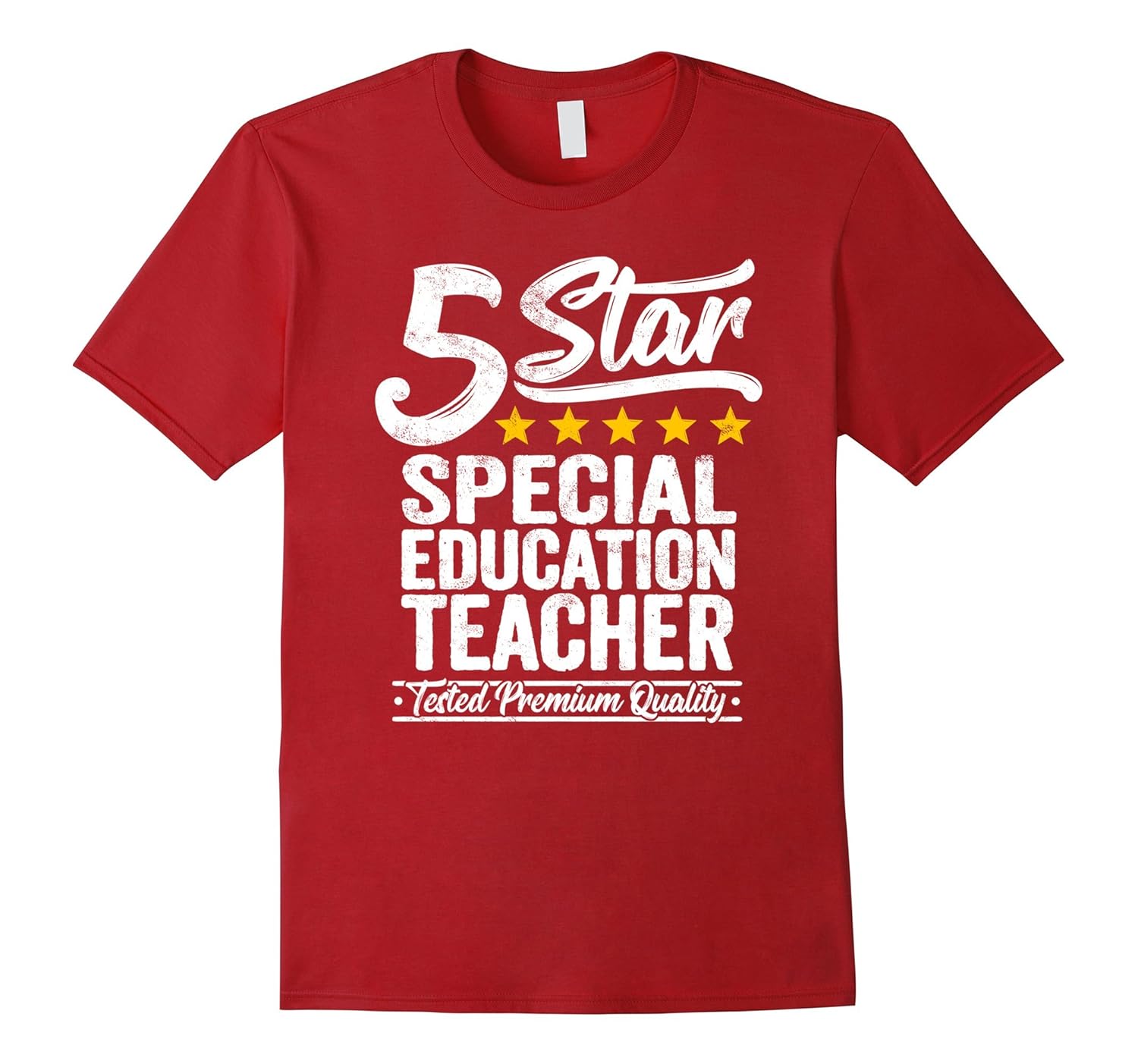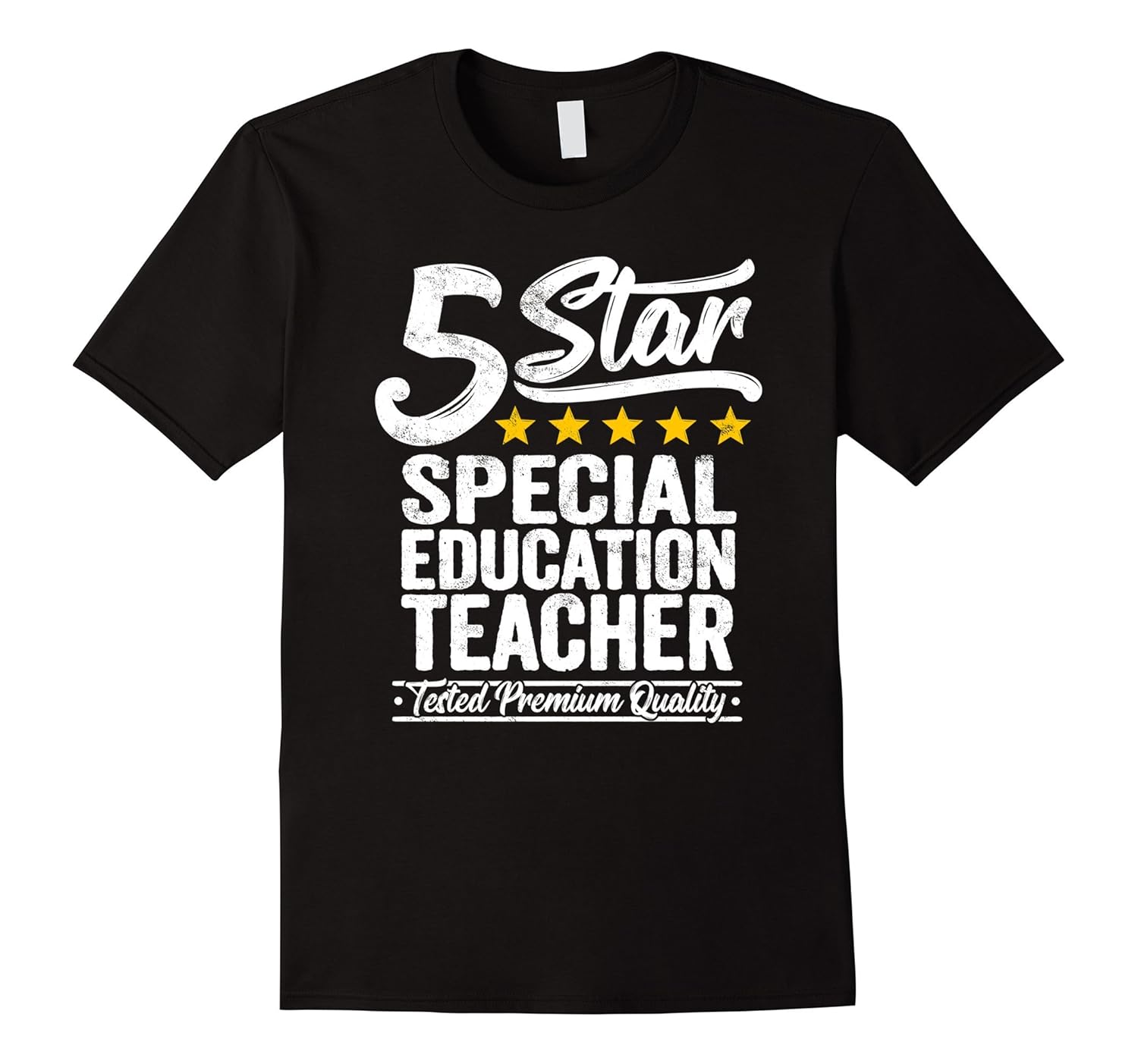 Solid colors: 100% Cotton; Heather Grey: 90% Cotton, 10% Polyester; All Other Heathers: 65% Cotton, 35% Polyester; Imported; Machine wash cold with like colors, dry low heat; This funny gift t shirt is perfect to wear for a passionate 5 star special education teacher with tested skills who does a great job. Get your profession tee now!; This job, occupation or profession tshirt makes a great funny gift for an awesome special education teacher who is five star rated by a colleague, co-worker, buddy, friend, workmate, cohort, by the company, enterprise, the boss, chief or employer.; Lightweight, Classic fit, Double-needle sleeve and bottom hem