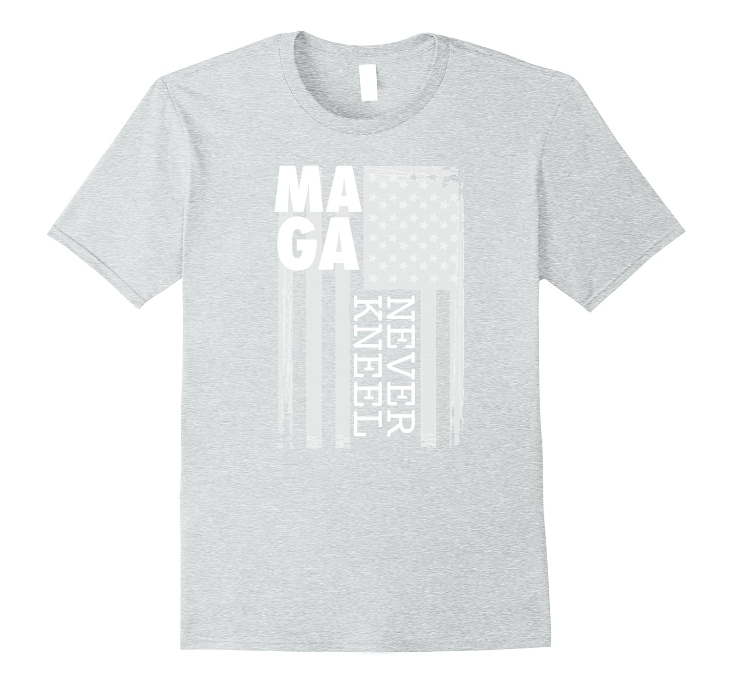 Solid colors: 100% Cotton; Heather Grey: 90% Cotton, 10% Polyester; All Other Heathers: 65% Cotton, 35% Polyester, Imported, Machine wash cold with like colors, dry low heat, Show your love for country and stand for the anthem. MAGA Never kneel Tee Shirt, Lightweight, Classic fit, Double-needle sleeve and bottom hem