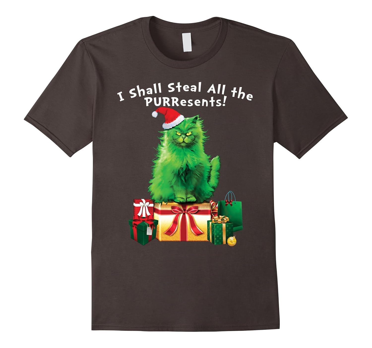 Solid colors: 100% Cotton; Heather Grey: 90% Cotton, 10% Polyester; All Other Heathers: 65% Cotton, 35% Polyester, Imported, Machine wash cold with like colors, dry low heat, This funny green cat is sure to bring laughs this holiday with his goal to steal Christmas and all of the presents! Makes a great gift for mom, dad, son, kids, daughter, sister, brother, or anyone who loves humor! cartoon, jolly, santa claws, paws, cute, cat mom, presents, resting grinch face, xmas, santa, kitty, meowy, kitten, persian cat, pets, adopt, rescue animal, naughty or nice, friend, fur baby, ugly, catmas, Meeowee, jingle, elf, graphic tee, humor, feline, playful, purr, stole xmas, spirit animal, Lightweight, Classic fit, Double-needle sleeve and bottom hem