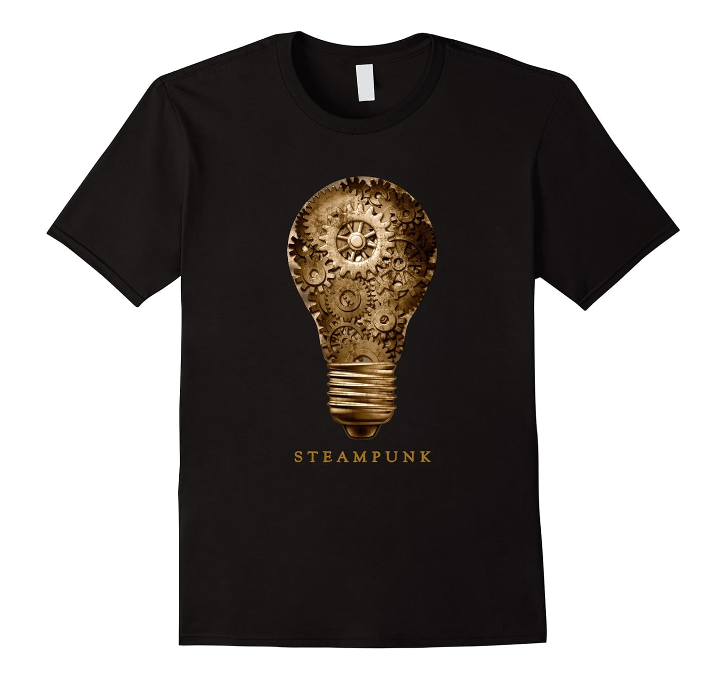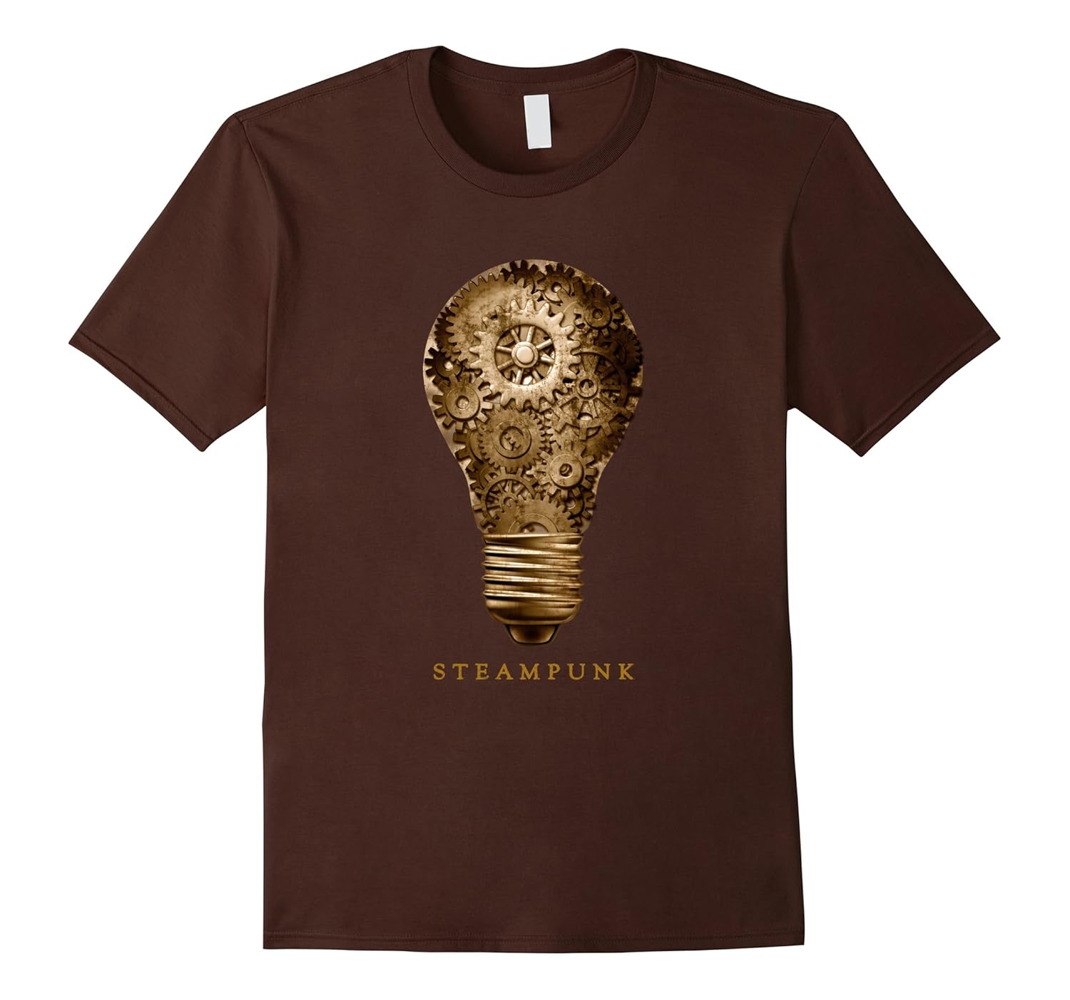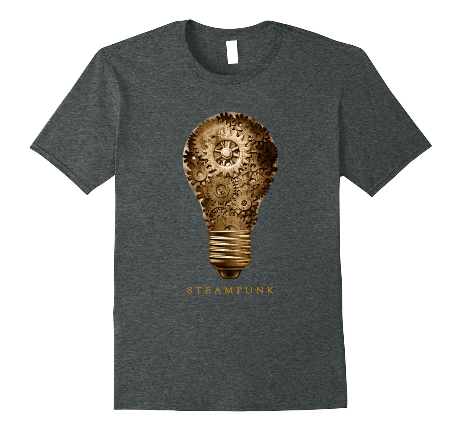 Solid colors: 100% Cotton; Heather Grey: 90% Cotton, 10% Polyester; All Other Heathers: 65% Cotton, 35% Polyester, Imported, Machine wash cold with like colors, dry low heat, steam punk light bulb T-shirt, steampunk sci fi fantasy idea mechanical gears shirt, Lightweight, Classic fit, Double-needle sleeve and bottom hem