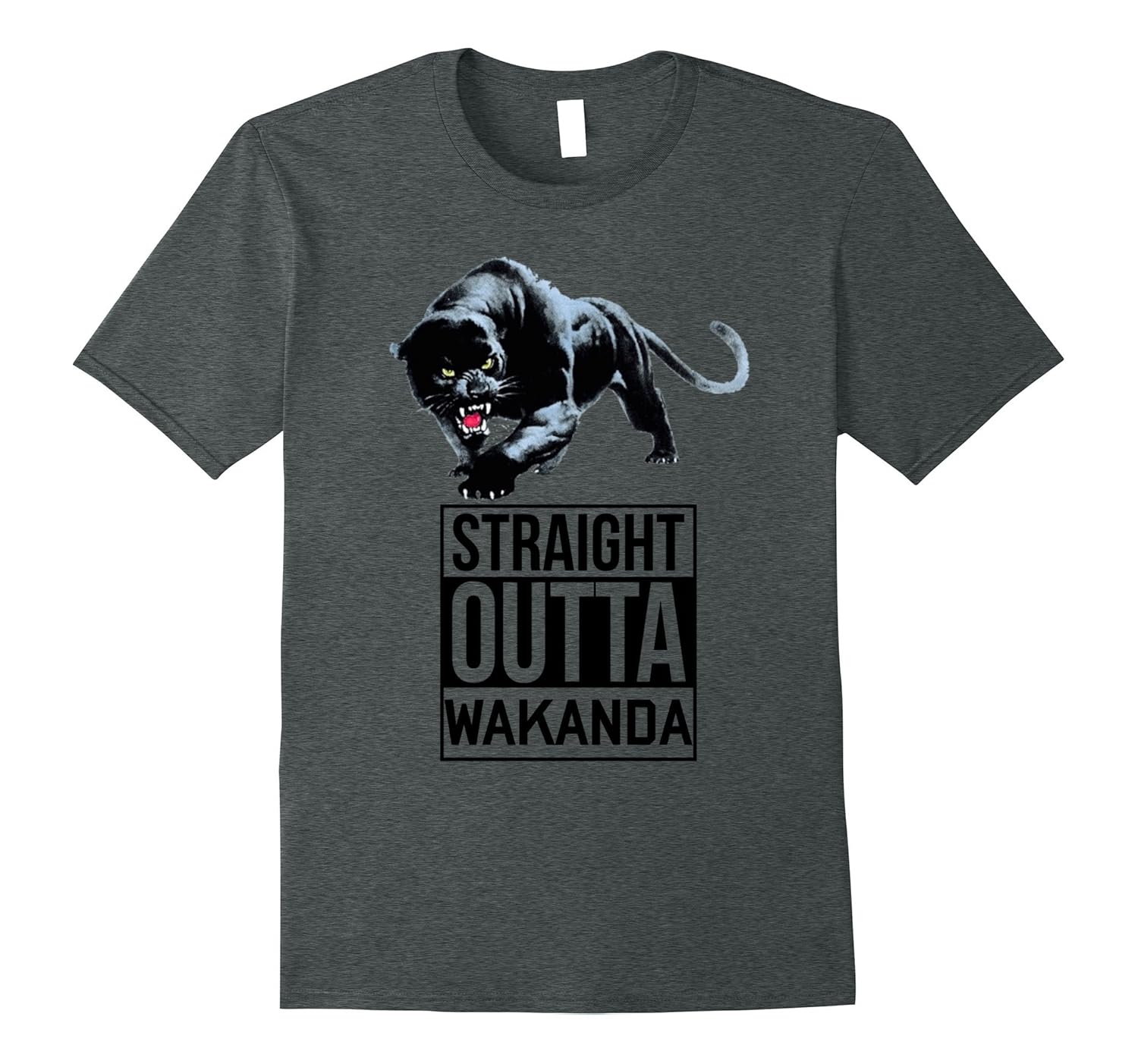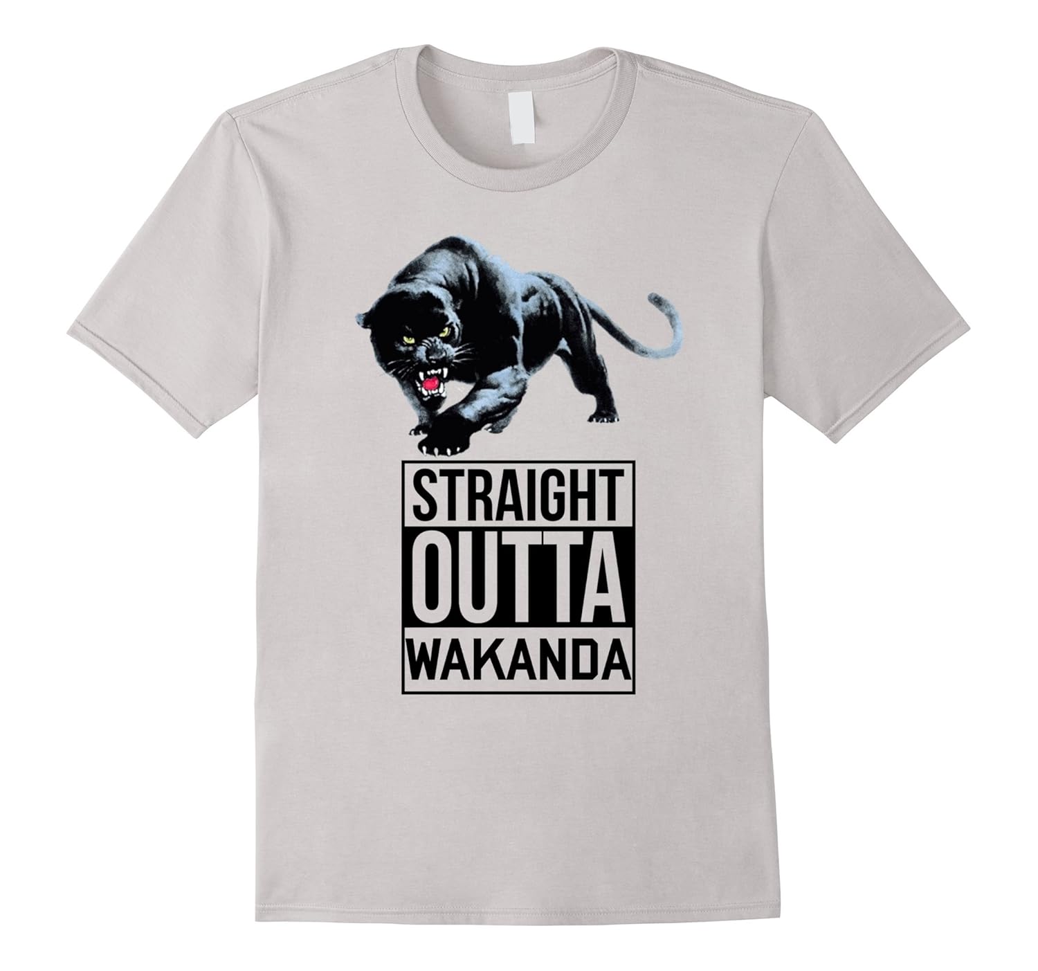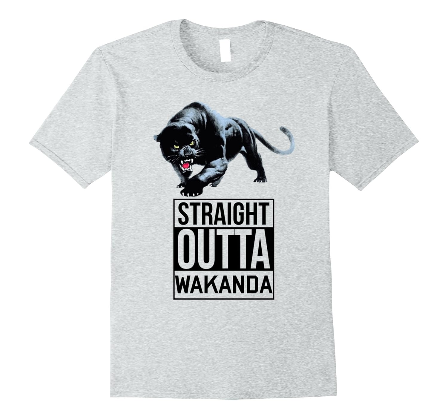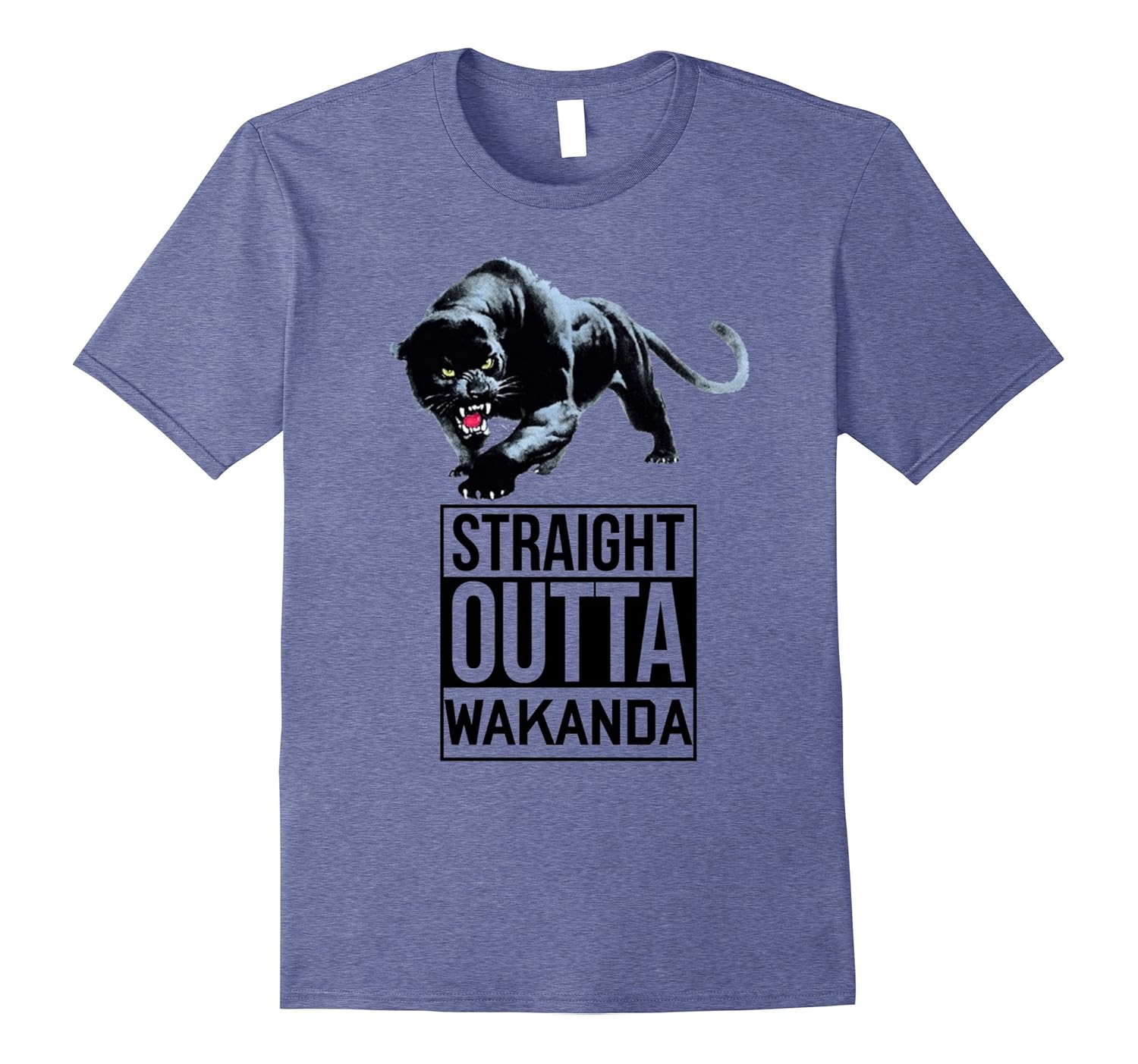 Solid colors: 100% Cotton; Heather Grey: 90% Cotton, 10% Polyester; All Other Heathers: 65% Cotton, 35% Polyester; Imported; Machine wash cold with like colors, dry low heat; This is the perfect Tee for movie goers and coming books fans . As we are getting ready for the adventures of the. Wakanda king get this tshirt for. The whole family and friends; Design showing a panther with black fur and words saying straight outa wakanda; Lightweight, Classic fit, Double-needle sleeve and bottom hem