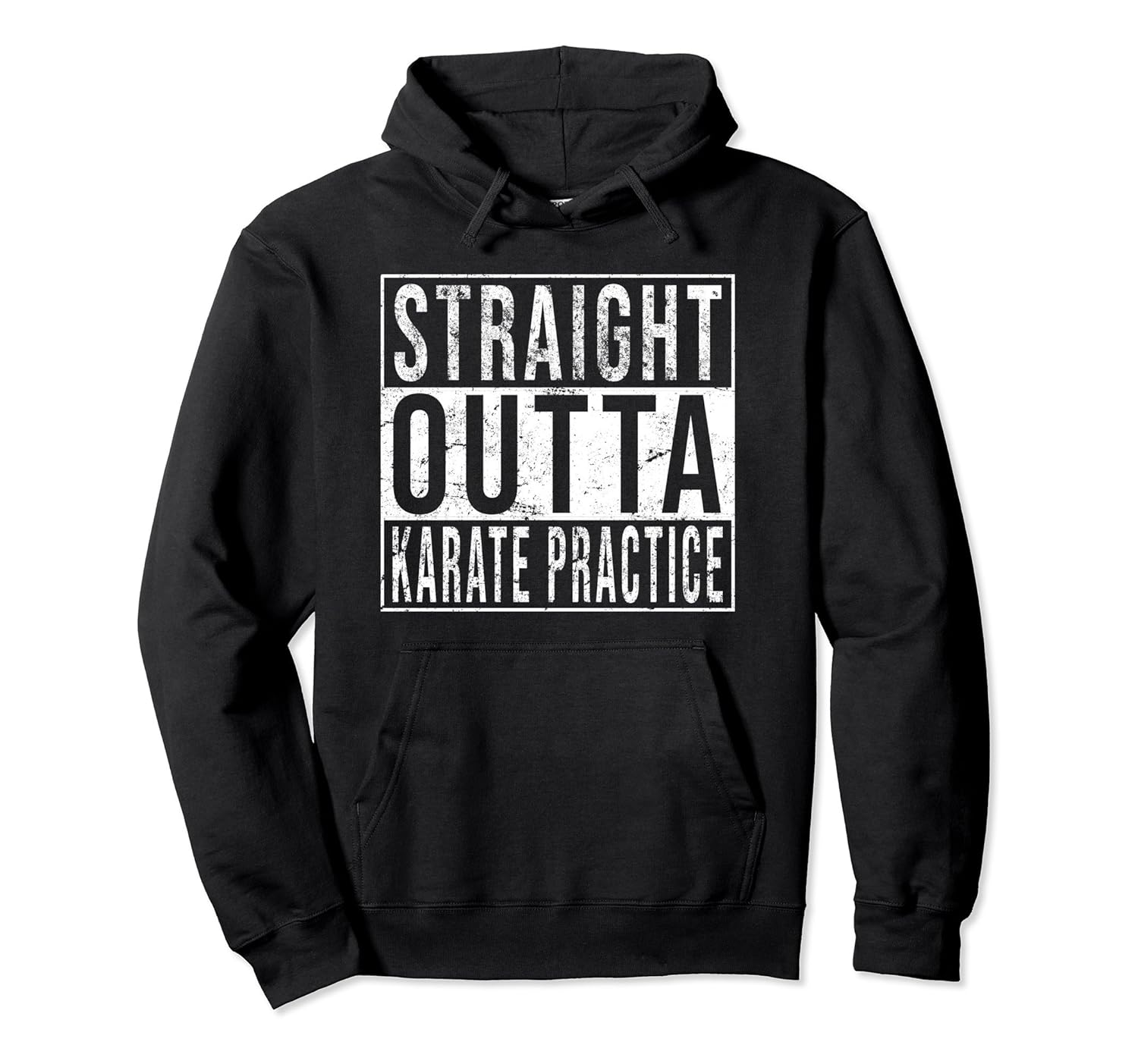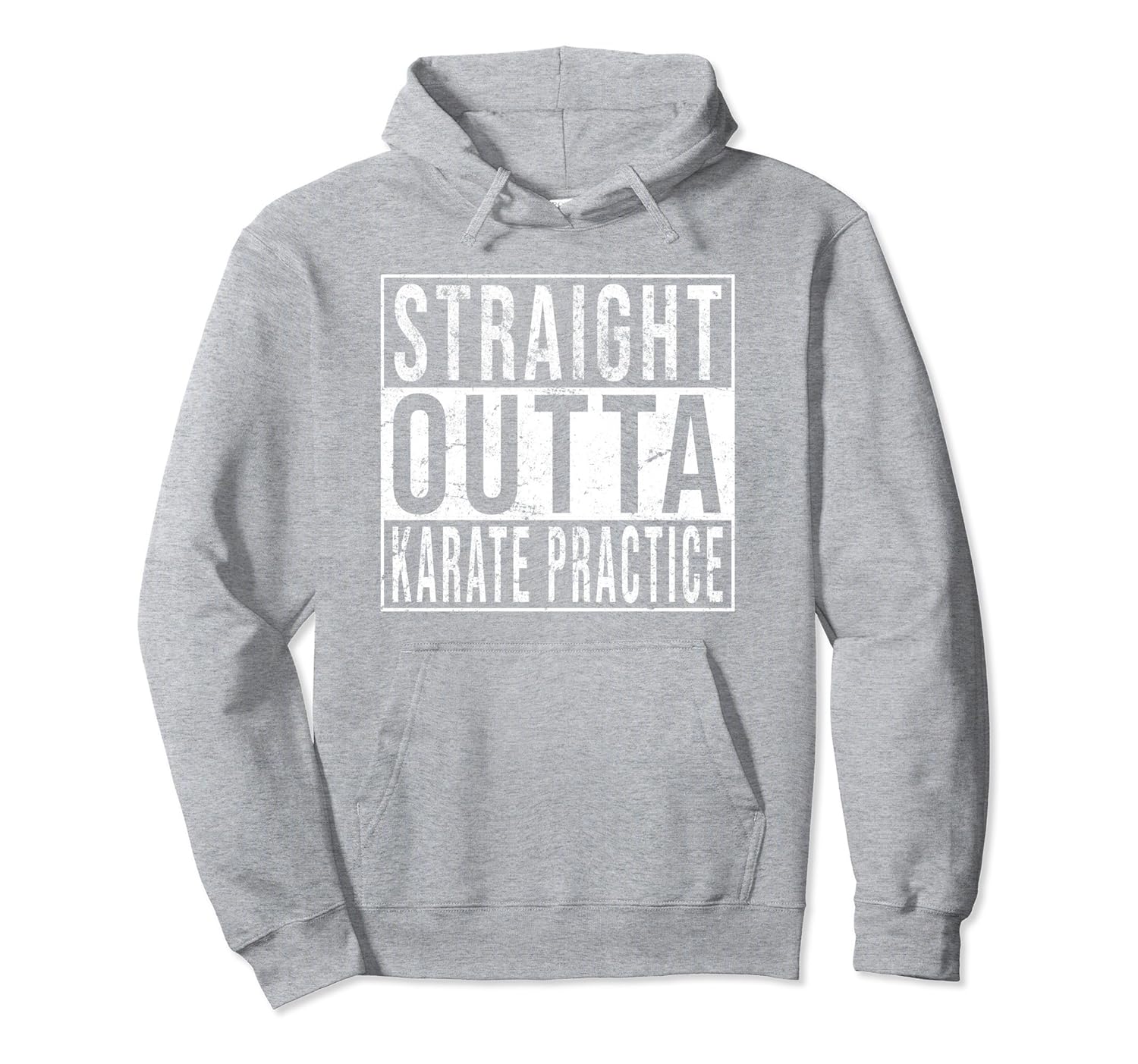 Solid colors: 80% Cotton, 20% Polyester; Heather Grey: 78% Cotton, 22% Poly; Dark Heather: 50% Cotton, 50% Polyester; Imported; Machine wash cold with like colors, dry low heat; This funny straight outta karate practice graphic hoodie is perfect for the high school or college athlete in your family!; Makes a great gift for your son, daughter, or grand kids who love karate!; 8.5 oz, Classic fit, Twill-taped neck