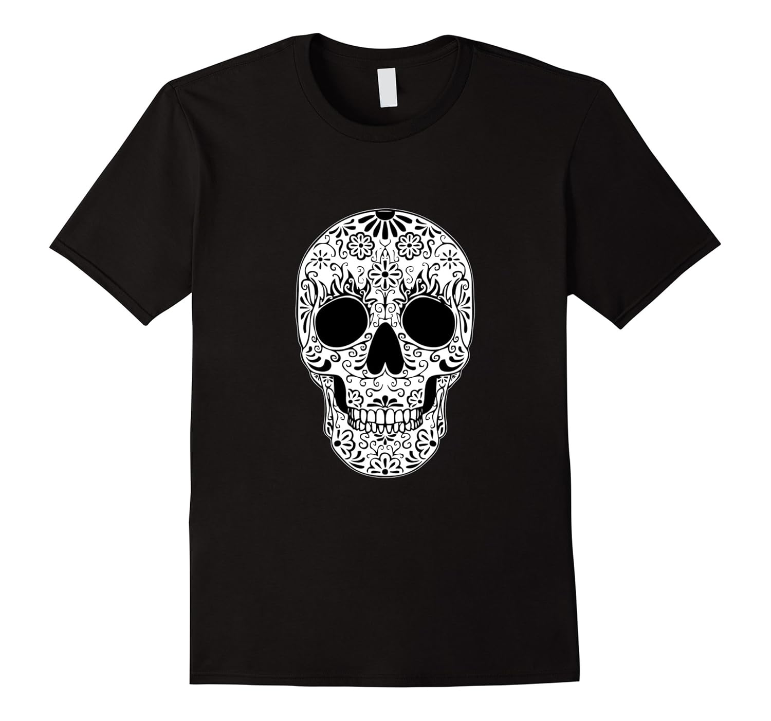 Solid colors: 100% Cotton; Heather Grey: 90% Cotton, 10% Polyester; All Other Heathers: 65% Cotton, 35% Polyester, Imported, Machine wash cold with like colors, dry low heat, Sugar Skull Calavera by Shelley Leonard, an official RGebbiePhoto design. Sugar skull Calavera Dia de los Muertos Day of the Dead November 1 All Souls Day or All Saints Day in Mexico. Halloween Holiday Decoration. Lightweight, Classic fit, Double-needle sleeve and bottom hem