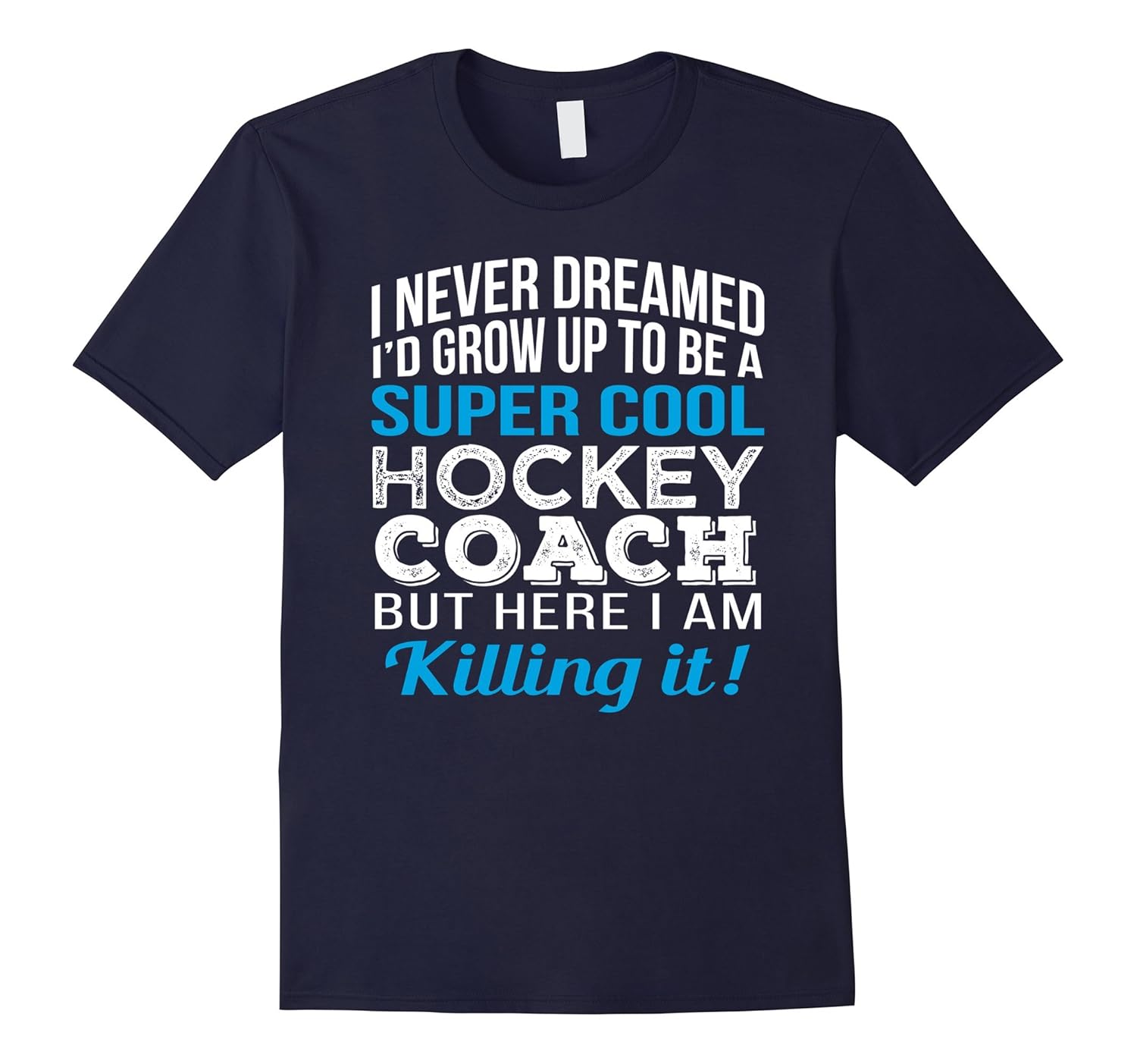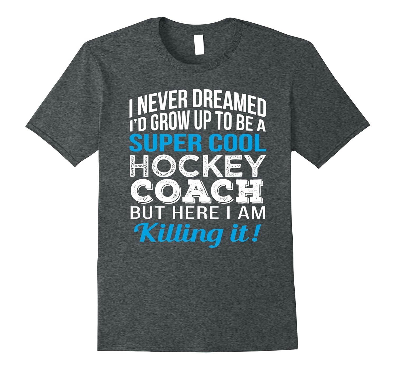 Solid colors: 100% Cotton; Heather Grey: 90% Cotton, 10% Polyester; All Other Heathers: 50% Cotton, 50% Polyester; Imported; Machine wash cold with like colors, dry low heat; Funny Hockey Coach T Shirt Gift; I never dreamed Id grow up to be super cool Hockey Coach but here I am killing it is a perfect gift t shirt for your Hockey Coach colleagues and friends. A funny Hockey Coach shirt for husband, wife, dad or mom on their birthday, anniversary present tee.; Lightweight, Classic fit, Double-needle sleeve and bottom hem