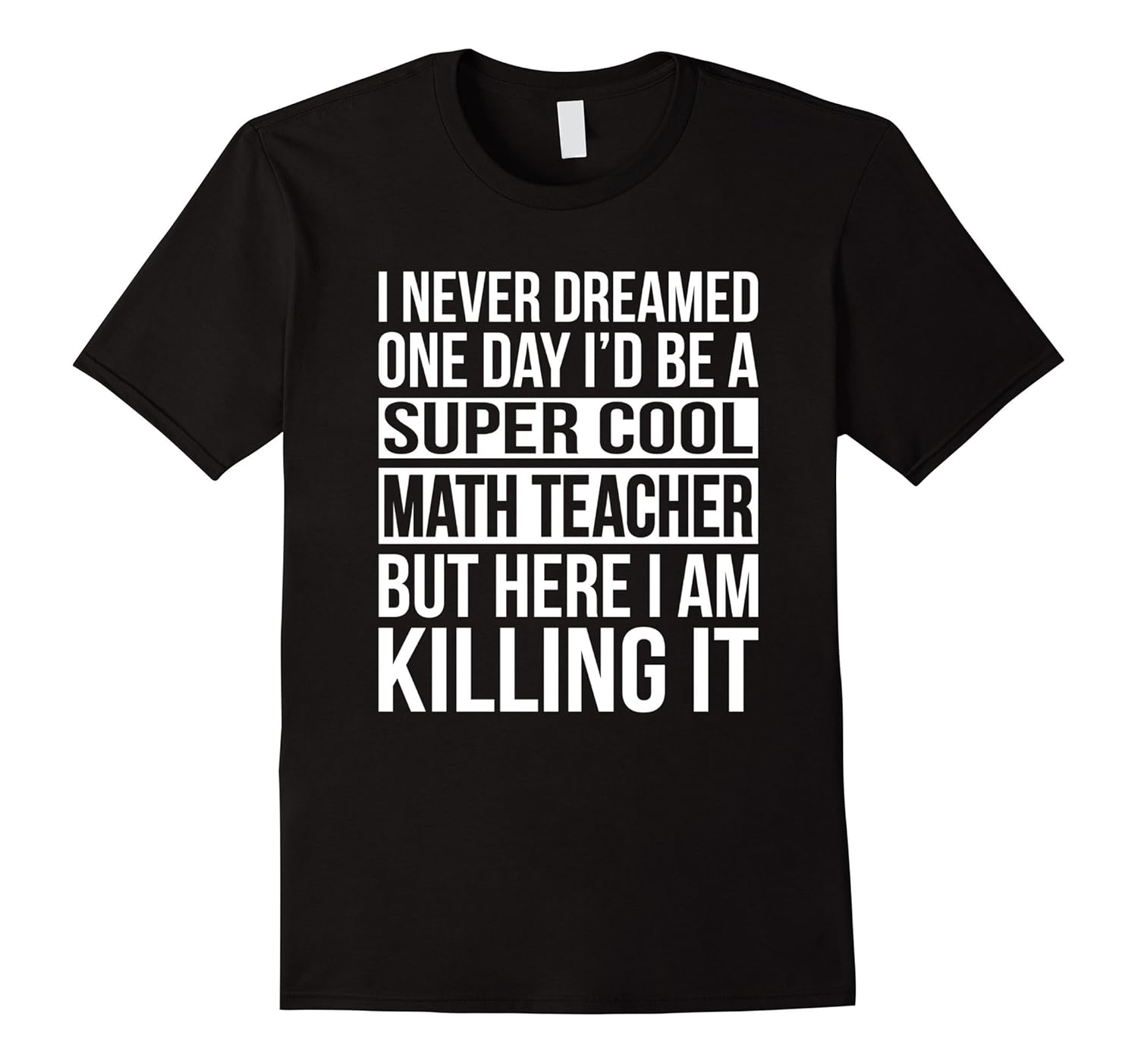 Solid colors: 100% Cotton; Heather Grey: 90% Cotton, 10% Polyester; All Other Heathers: 65% Cotton, 35% Polyester; Imported; Machine wash cold with like colors, dry low heat; I never dreamed one day Id be a super cool math Teacher but here I am killing it. Gift for algebra, Geometry Calculus school education teachers.; Adult sizes for men and women. Please see color options. Great Christmas present, birthday, Mothers day, or Fathers day gift.; Lightweight, Classic fit, Double-needle sleeve and bottom hem